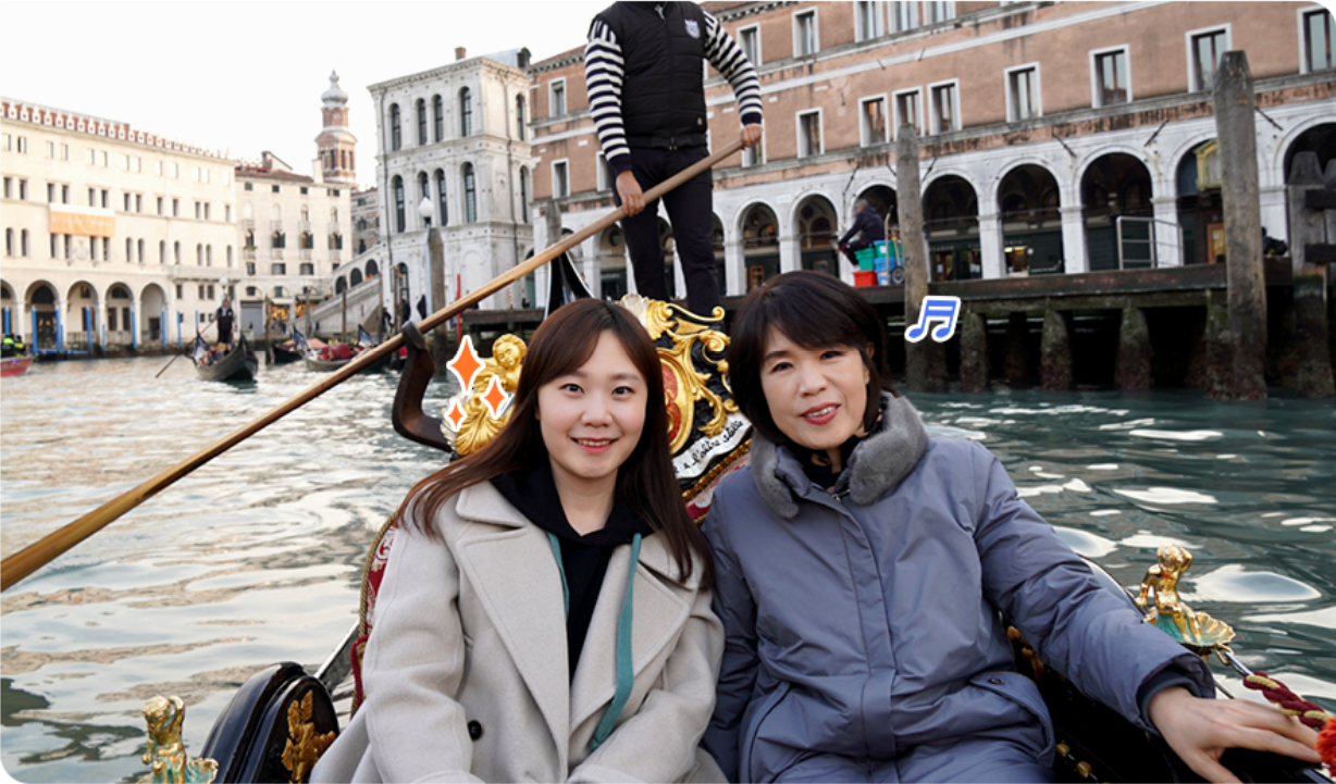 베네치아까지 왔으니 곤돌라를 안 타볼 수 없겠다. 곤돌리에의 화려한 노 젓기 솜씨로 좁은 수로 곳곳을 천천히 구경할 수 있었다. 부모님 역시 곤돌라 체험의 만족도가 매우 높았다. 언젠가 베네치아를 여행하시게 된다면 곤돌라는 한 번쯤 꼭 타보시길 강력 추천한다.