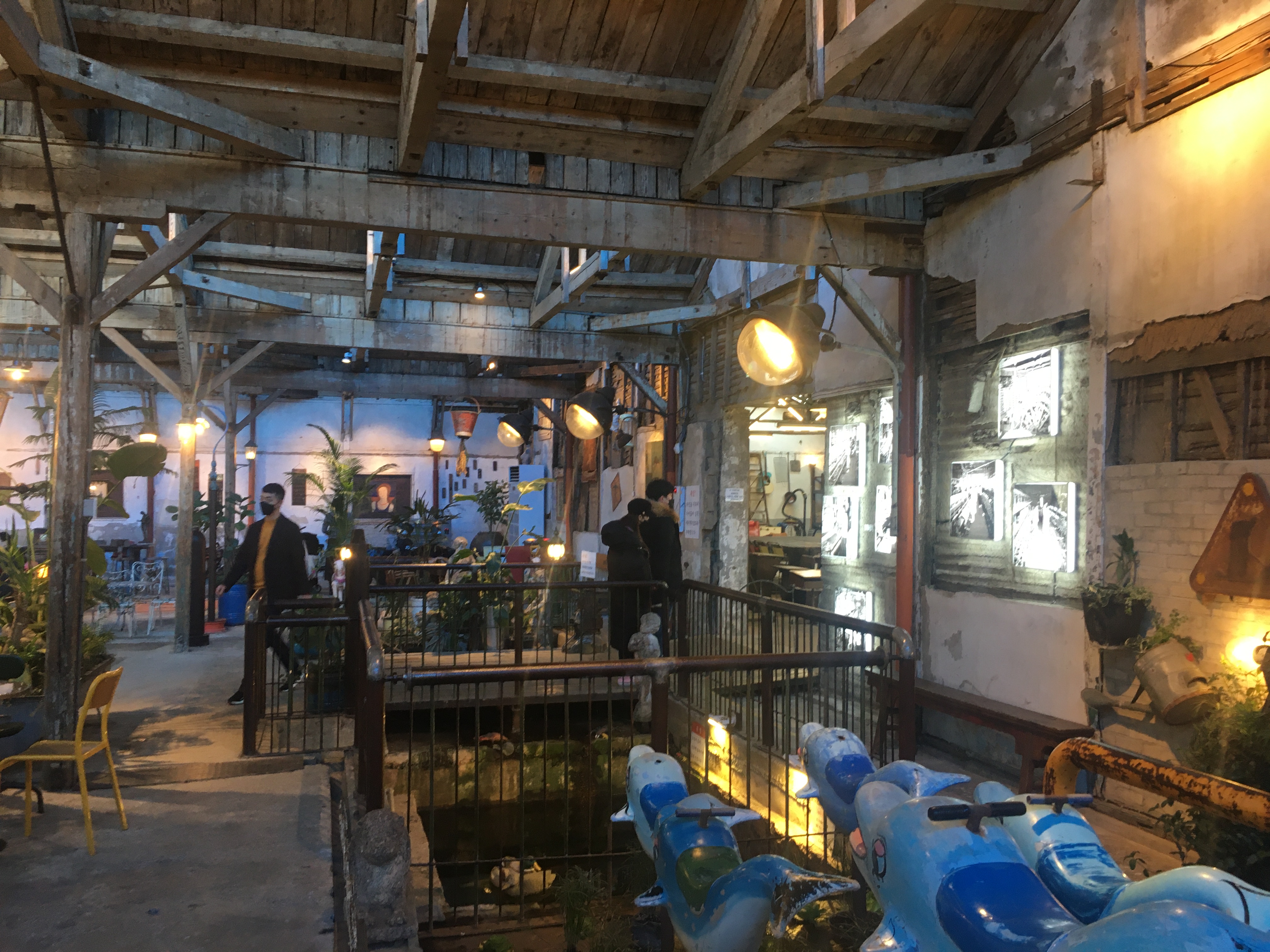 근엄하고 무거운 느낌의 창고형 건물들과 달리 조양방직 안쪽의 상신상회 구역은 빈티지한 가구와 소품들로 가볍고 재미있게 꾸몄어요. 아이들 장난감이나 놀이기구, 캐릭터 인형이 있고, 누군지 모를 인물의 아름다운 한때가 담긴 초상화와 풍경화 같은 그림이 걸려 있어요. 이용철 대표가 세계 곳곳을 누비며 수집한 골동품들이에요.