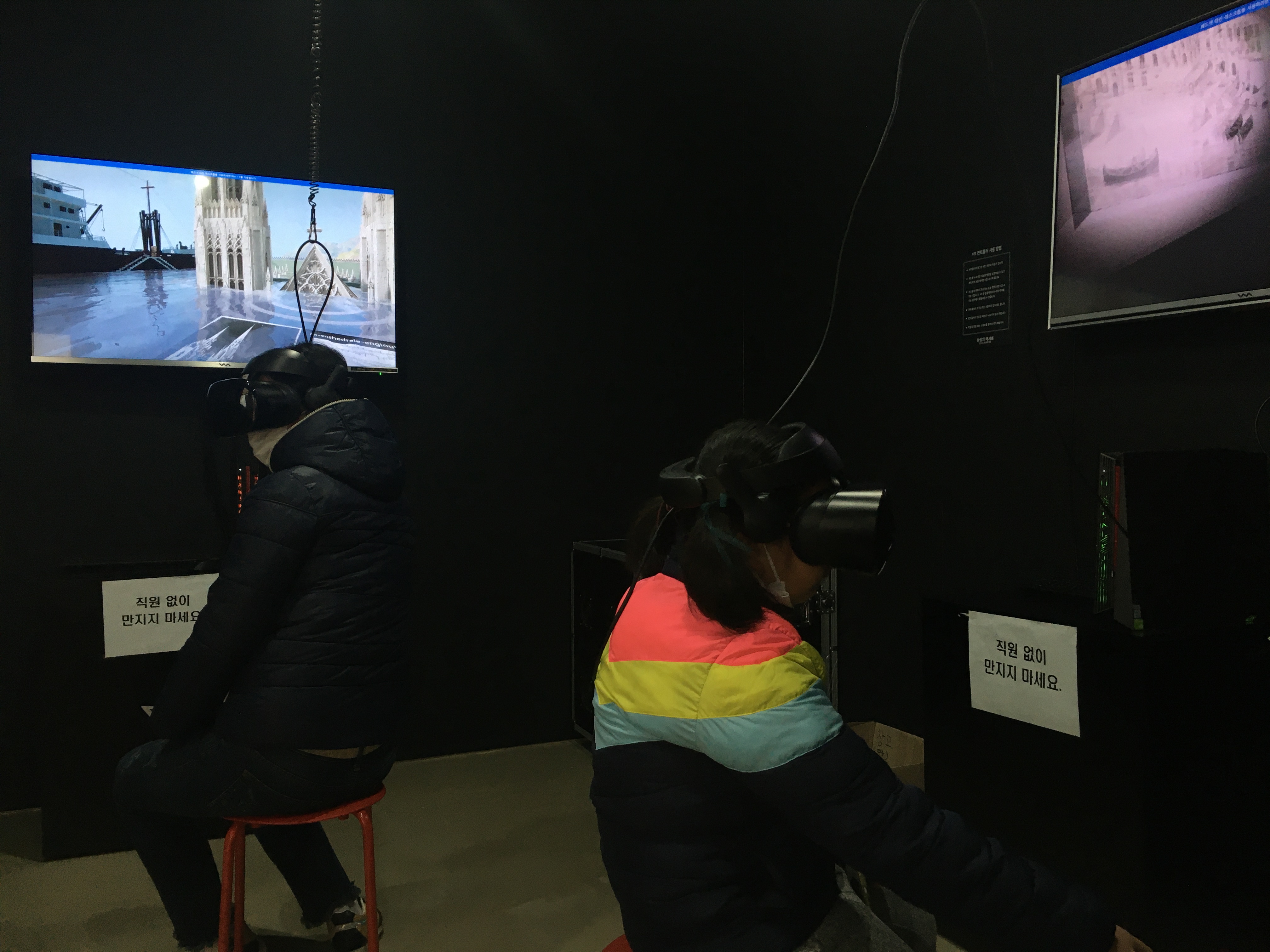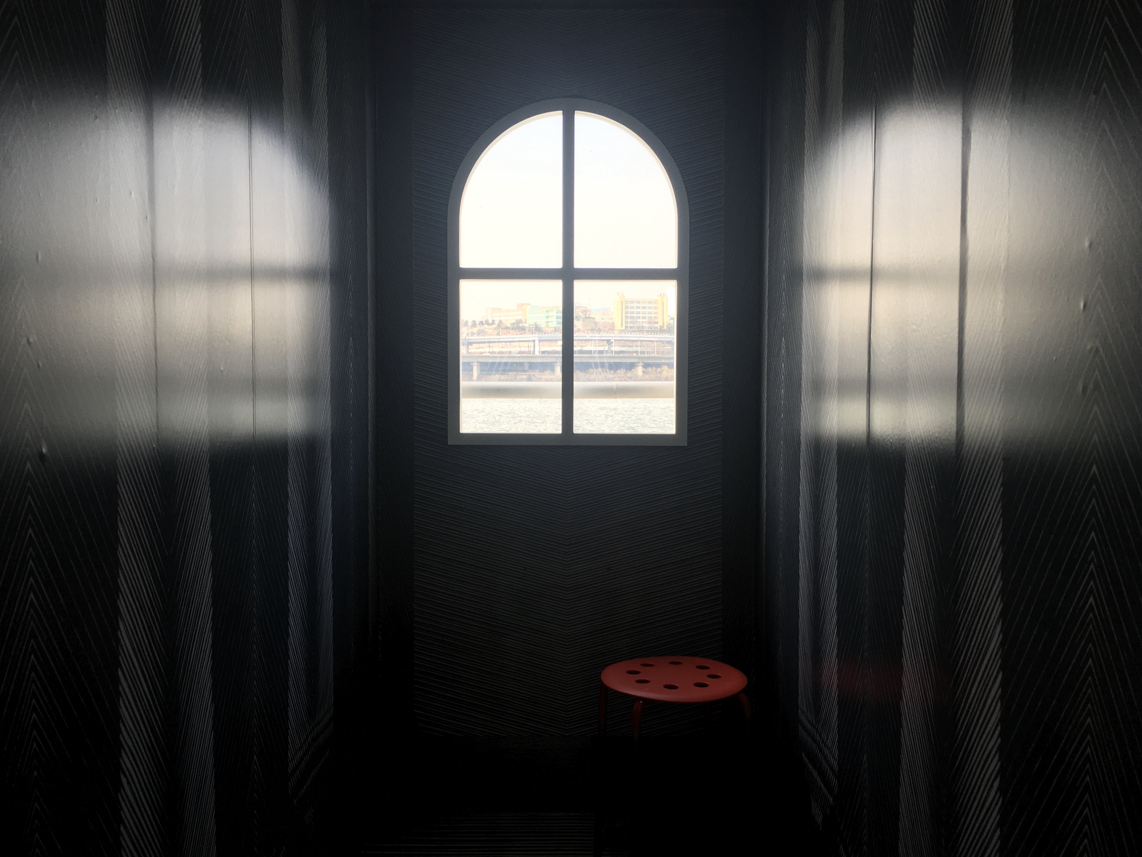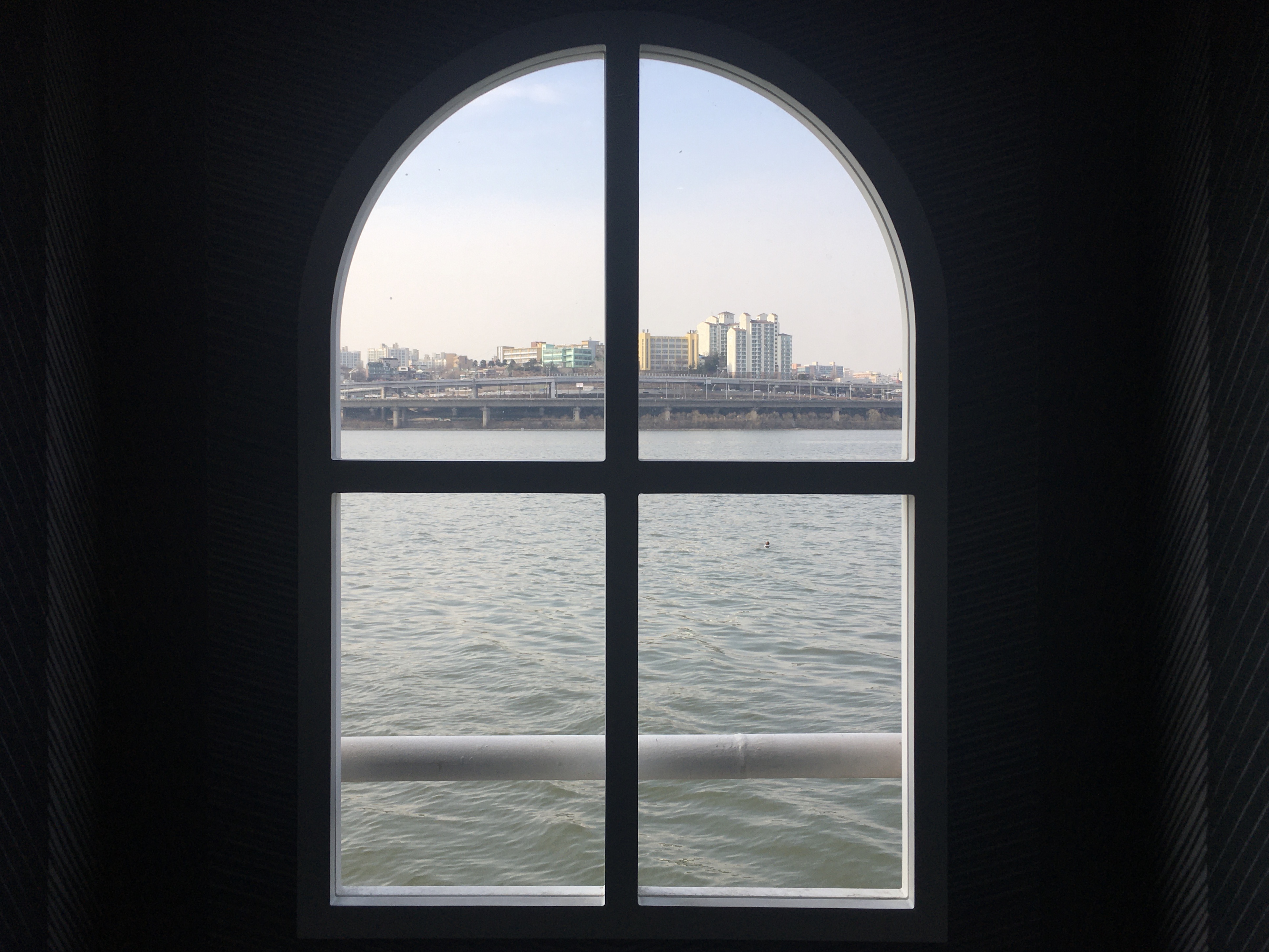‘VR룸 체험존’ 옆에는 선상에 자리 잡은 서울웨이브 아트센터의 공간적 특성을 살린 포토존이 있어요. 물결에 손이 닿을 듯이 한강 수면 가까이에서 강과 도시를 배경으로 멋진 인증샷을 남길 수 있답니다. 동동이가 관람한 날은 전시장이 한산해서 오랫동안 한강 풍경을 지켜볼 수 있었어요.