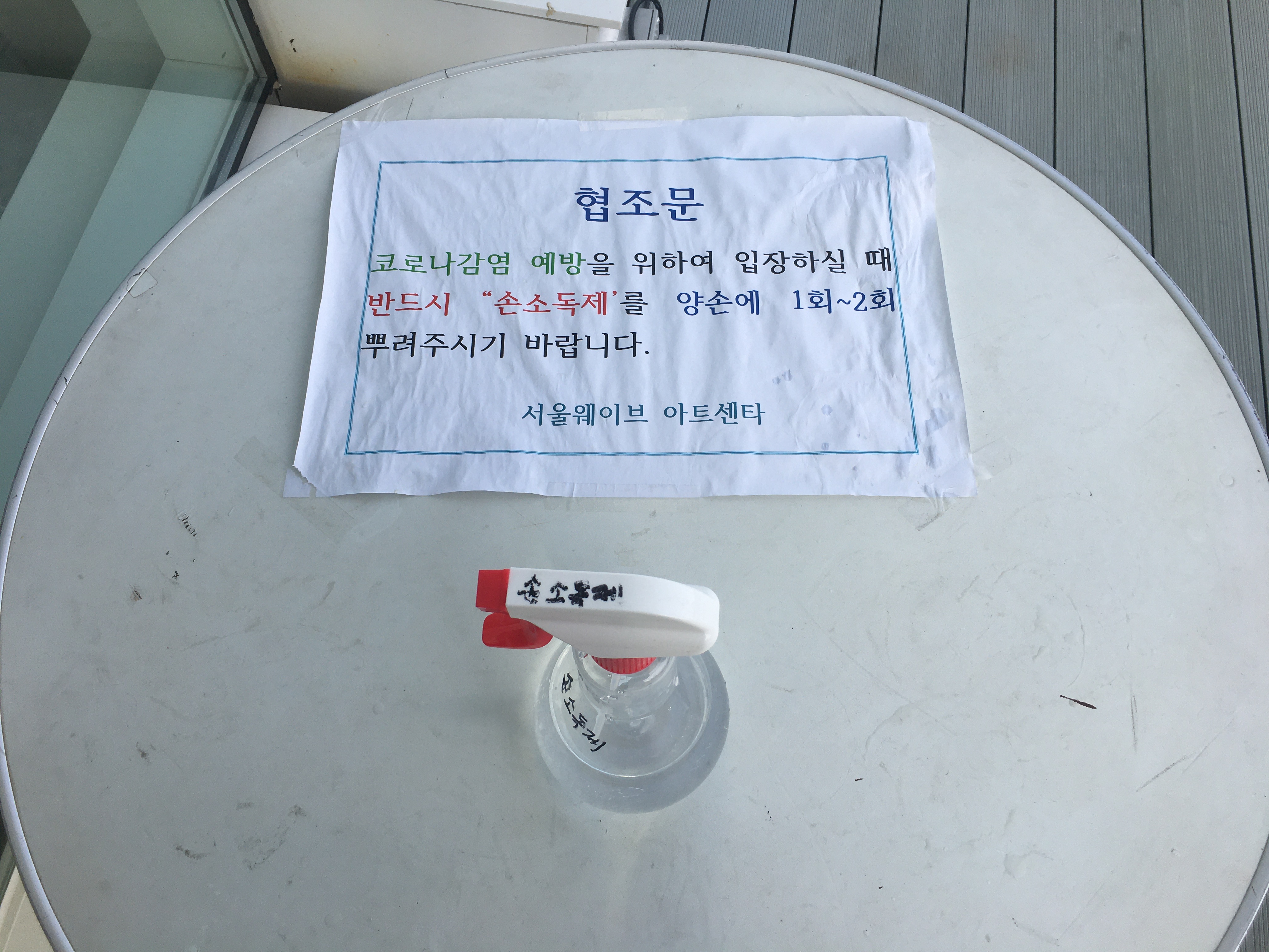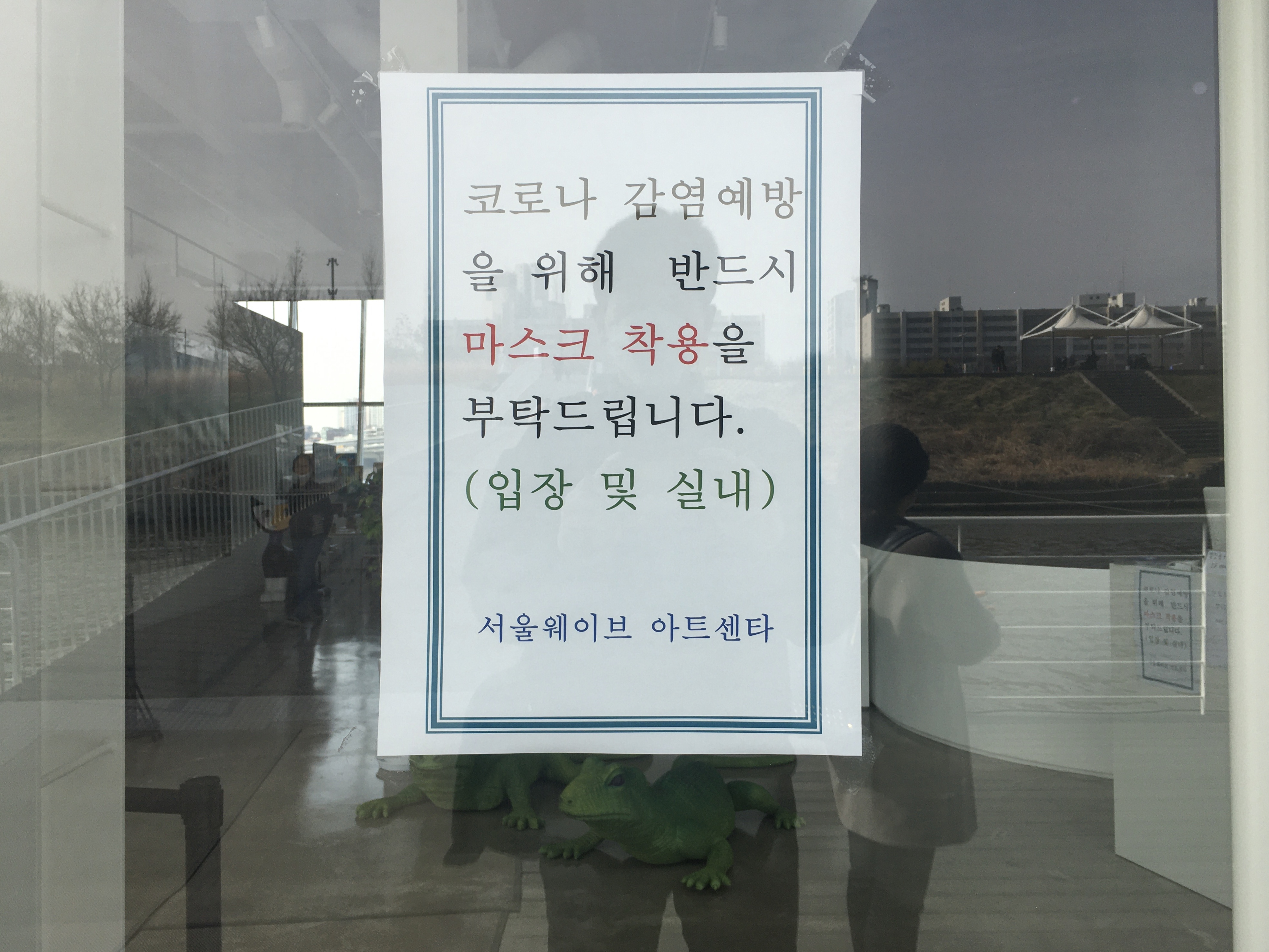 센터 입구에는 코로나 감염예방을 위해 반드시 마스크를 착용하도록 안내문이 붙어있어요. 동동이도 마스크를 쓰고 비치된 손소독제로 깨끗이 손을 소독한 다음 센터에 들어갔답니다!