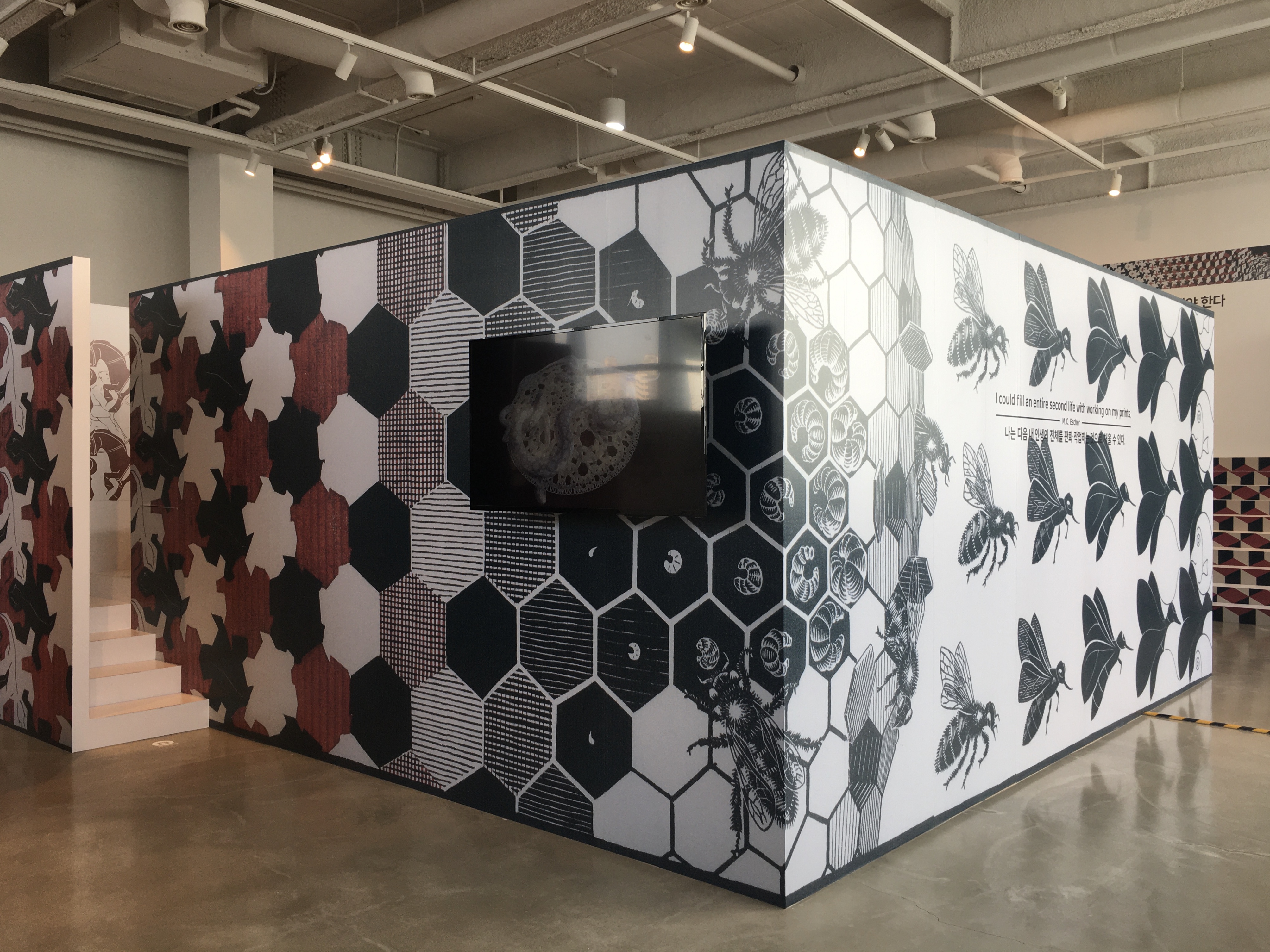 <환상의 에셔전, EXIT : 에셔의 방> 전시장은 작품 하나하나의 의미를 분명하게 전하고 있어서 관람객이 작품의 원리를 찾고, 작가의 세계를 탐구하며 동시에 자신의 내면을 마주할 수 있도록 잘 구성되어 있어요. 에셔의 의도처럼 머릿속에 떠오르는 새로운 발상에 집중할 수 있어서 더 재미있는 전시회가 된 것 같아요.