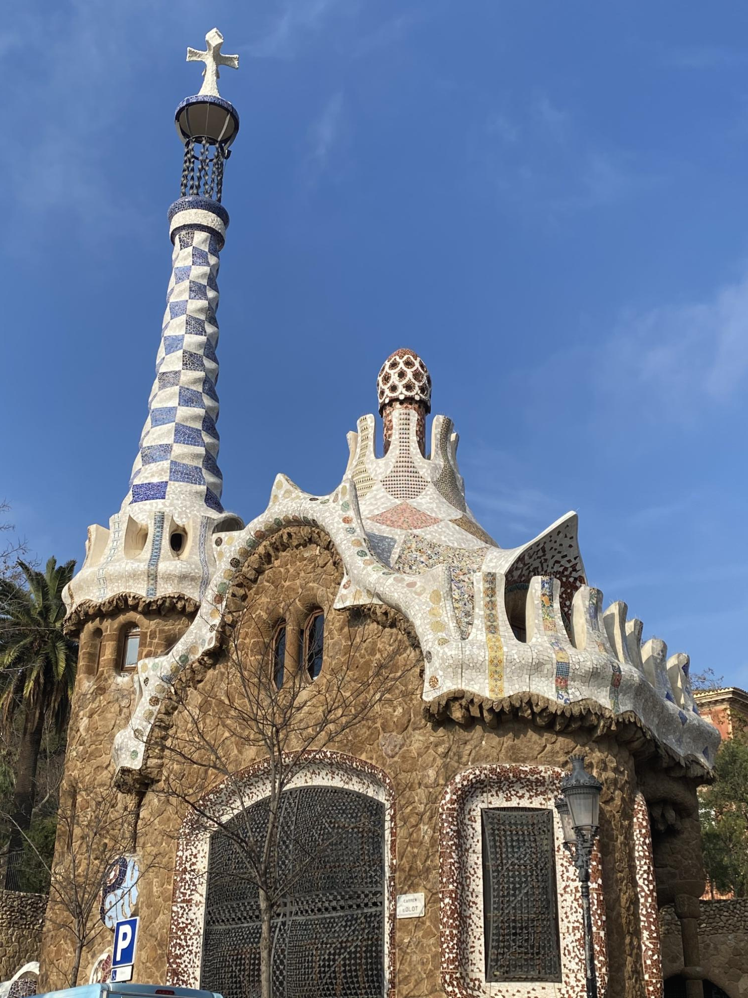구엘공원의 입구를 지키는 이곳은 당시 경비원이 근무하는 곳, 경비원의 사택이었어요. 지금은 기념품 상점으로 쓰이고 있어서 아기자기한 가우디의 색감을 볼 수 있는 액세서리들과 그림들을 구매할 수 있어요. 동동이도 가우디 반지와 만년필 그리고 엽서 몇 장을 구매했어요.