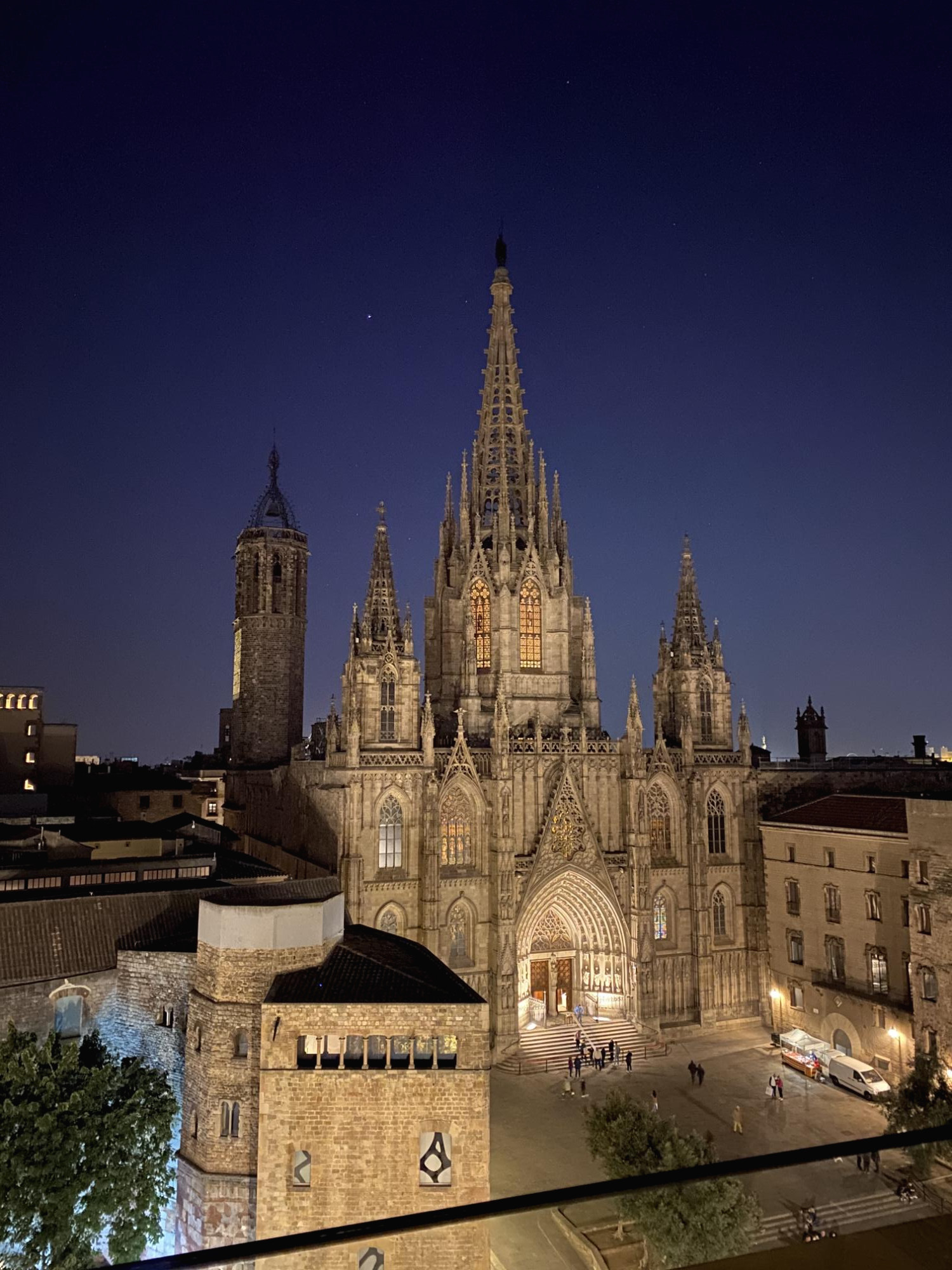 마지막으로 추천해드리고 싶은 또 하나의 명소! 바르셀로나 대성당을 바로 앞에 놓고 샹그리아를 즐겨보세요. 바르셀로나 대성당 맞은편의 ‘콜론 호텔’에는 루프탑이 있는데요. 호텔 투숙객이 아니더라도 루프탑을 이용할 수 있다고 해요. 로비에서 바로 엘리베이터를 타고 루프탑으로 올라오면 뛰어난 전망과 함께 인생샷을 남길 수 있답니다.^^ 낮에 가도 너무 예쁜 사진을 남길 수 있지만 저녁노을이 질 때에는 또 다른 느낌이 있어요. 동동이는 저녁 해가 지기 전 6시 ~ 7시 정도쯤에 가서 석양과 함께 즐기고, 석양이 지고 난 밤의 풍경을 함께 즐겼어요.