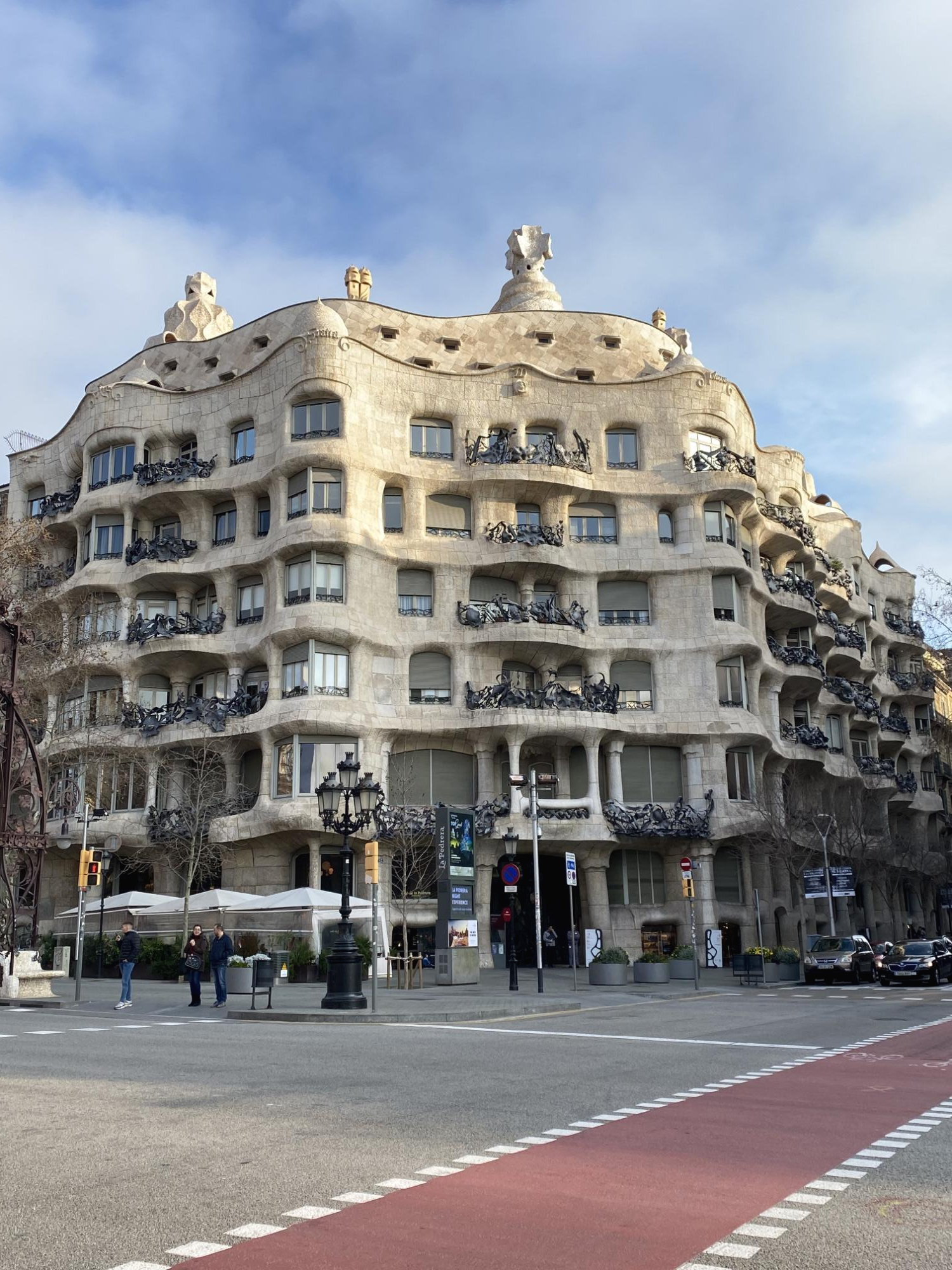 ‘까사바트요’에서 조금 더 걸어 올라가면 있는 ‘까사밀라’는 당시 호텔이었다고 해요. 그런데 뭔가 익숙한 이름이죠? ‘까사’는 스페인어로 ‘집’이란 뜻이에요. ‘까사밀라’는 밀라네 집, ‘까사바트요’는 바트요네 집이라고 볼 수 있어요. 바트요가 멋진 집을 지은 걸 보고 밀라가 가우디에게 멋진 집을 지어달라고 요청해서 지어진 곳이 바로 까사밀라라고 해요.
