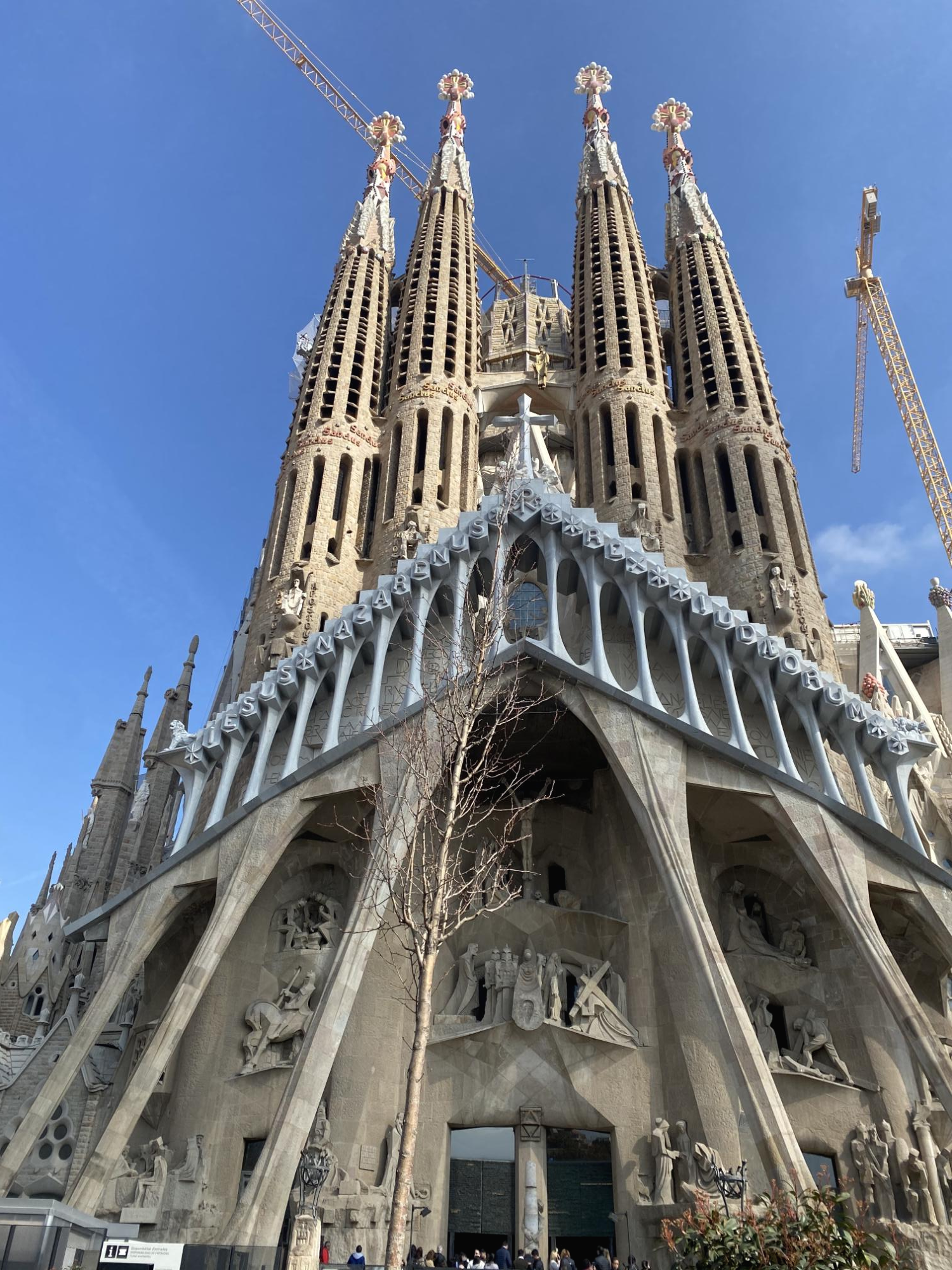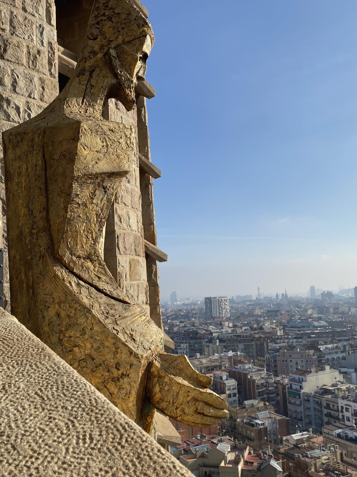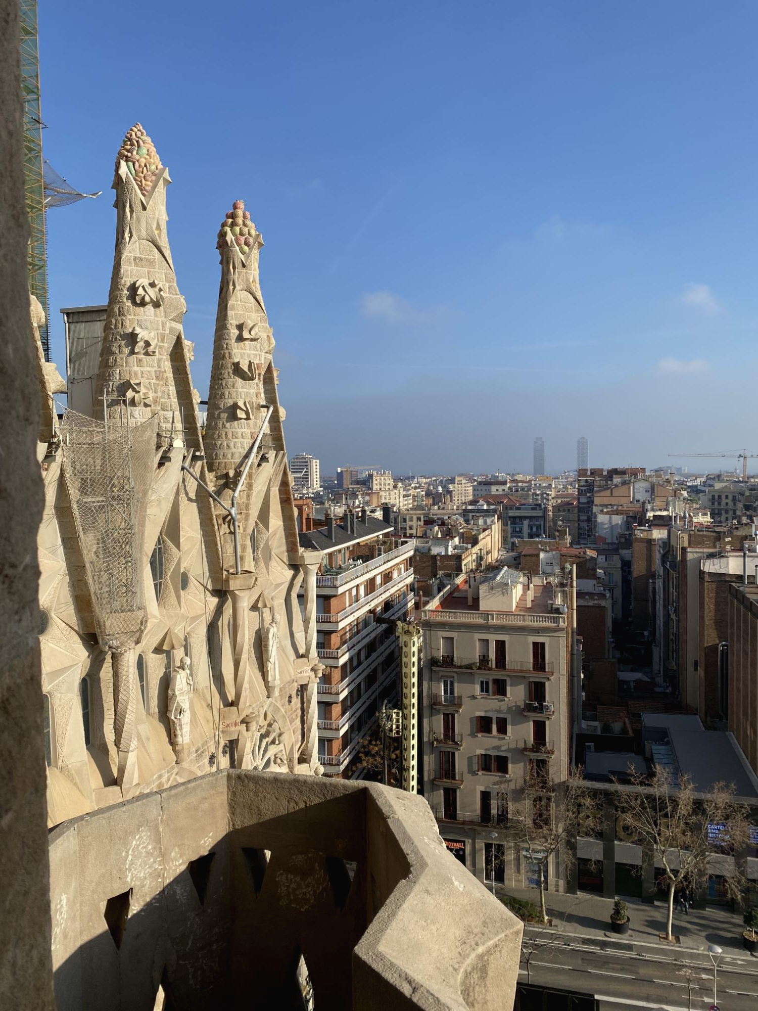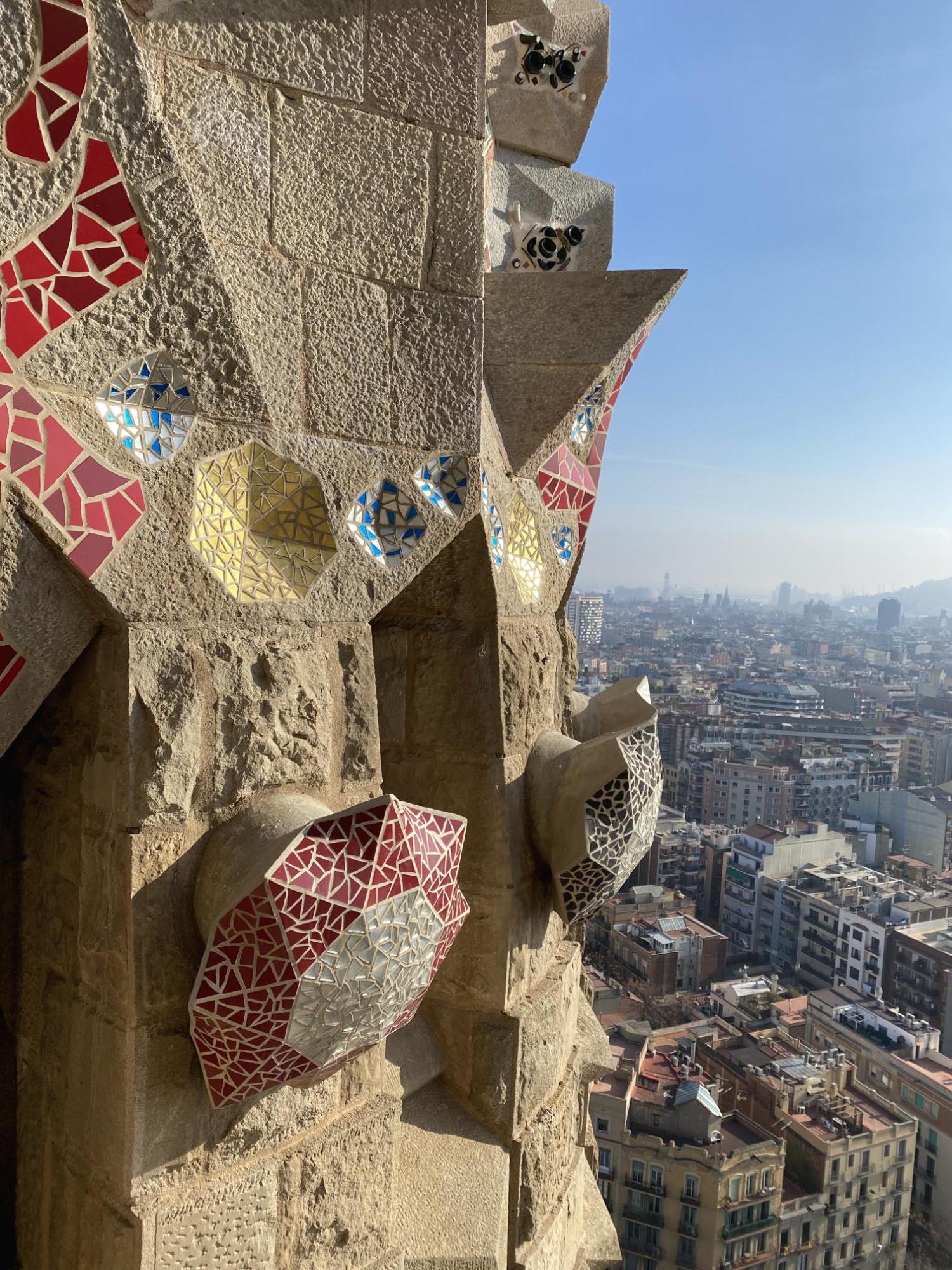 가우디가 완공한 탄생의 파사드가 단연 인기가 있어 동동이도 탄생의 파사드를 보려 했는데, 실수로 고난의 파사드를 티켓팅해버렸어요!! 올라가고 나서야 ‘아, 잘못 티케팅 했구나’하고 깨달았지만 이 역시도 너무 멋있었답니다. 이렇게 높은 곳에서 바르셀로나 시내를 내려다보니 무섭긴 했지만 재밌었어요. 사그라다 파밀리아 성당 입장권과 함께 내부를 투어하기로 결정하셨다면, 꼭 탑 관람이 포함된 티켓을 구매하시는 것을 추천드려요.