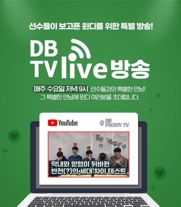 가장 눈에 띄는 건 최근 진행한 유튜브 라이브 방송이다. 지난 3월 11일 오후 9시 DB프로미 선수들은 코트 대신 카메라 앞에서 팬들을 만났다. DB프로미는 코로나19 사태로 리그가 중단된 동안 몇 차례의 유튜브 라이브 방송을 예고했다. 팬들의 아쉬움을 달래주기 위해 선수들이 직접 나선 것이다.