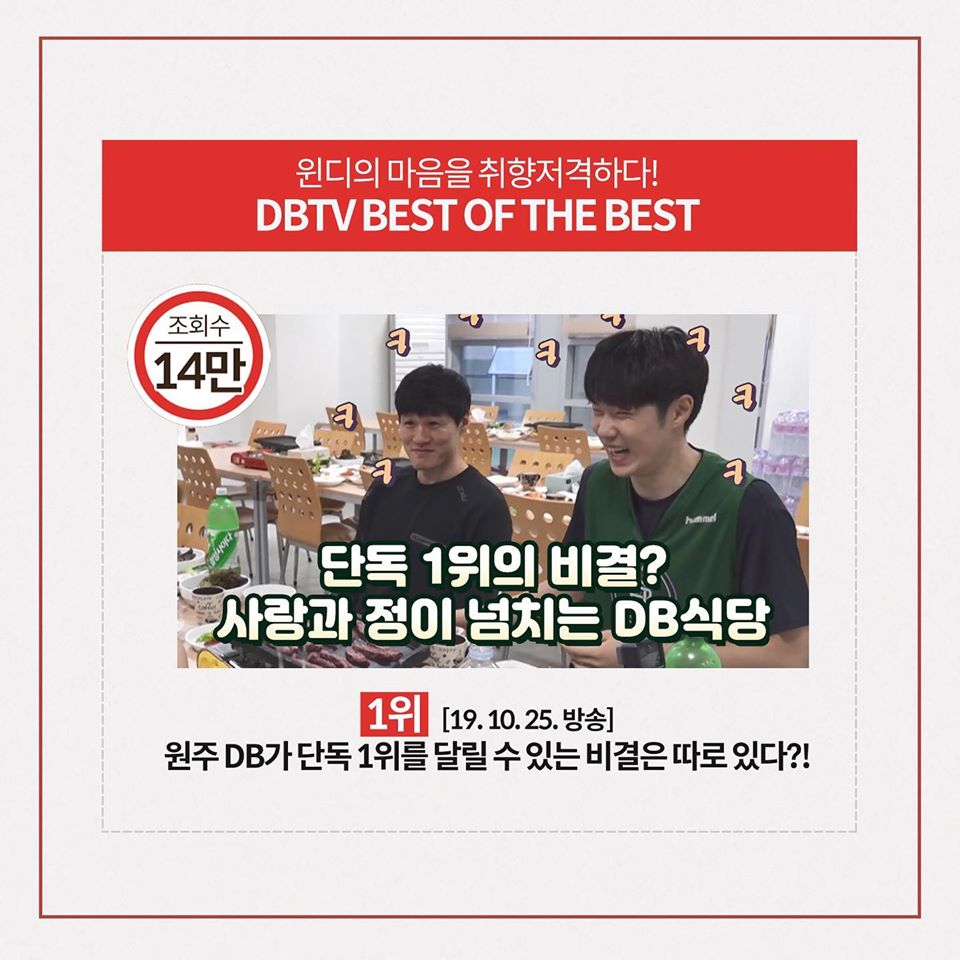 A. 가장 반응이 좋았던 콘텐츠는 구단의 식당을 소재로 한 영상인데요. 현재까지 약 14만 회의 조회수를 기록하고 있습니다. 팬들에게 선수단 식당이 최초로 공개된 것이기도 하고, 선수들이 식사하는 자연스러운 모습 덕분에 좋은 반응을 얻은 것 같습니다. 개인적으로 추천하는 영상은 ‘타 구단 선수들에게 DBTV를 홍보하라’입니다. 선수들 참여도 좋고 영상 편집도 재미있는 완성도 높은 콘텐츠에요. 아직 못 보신 분들이 있다면 꼭 봐 주셨으면 좋겠습니다.
