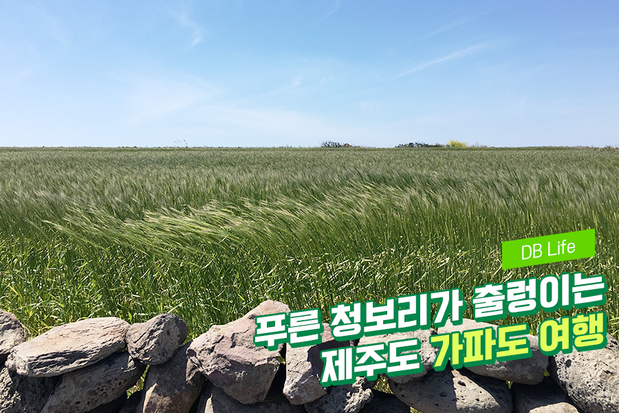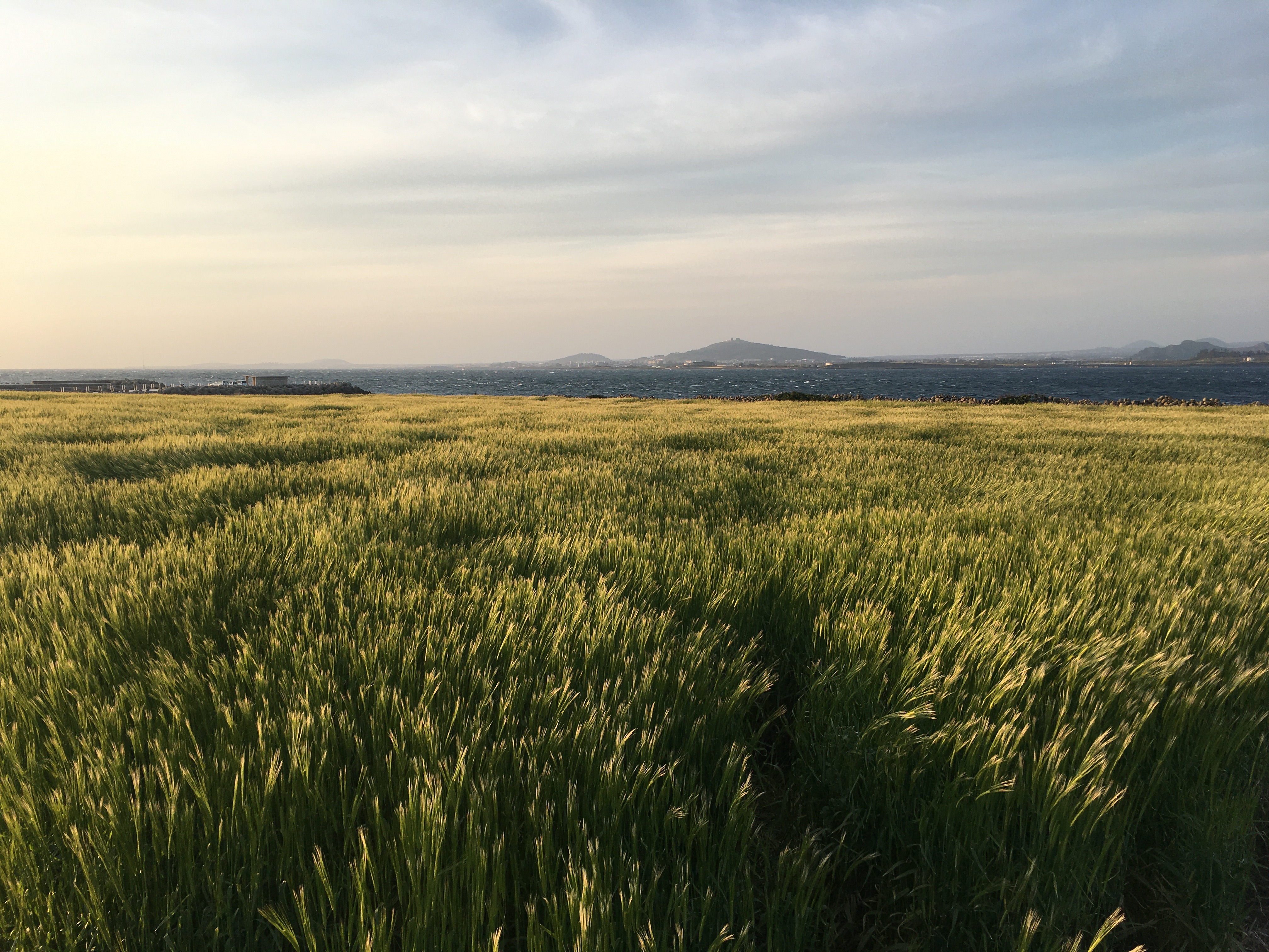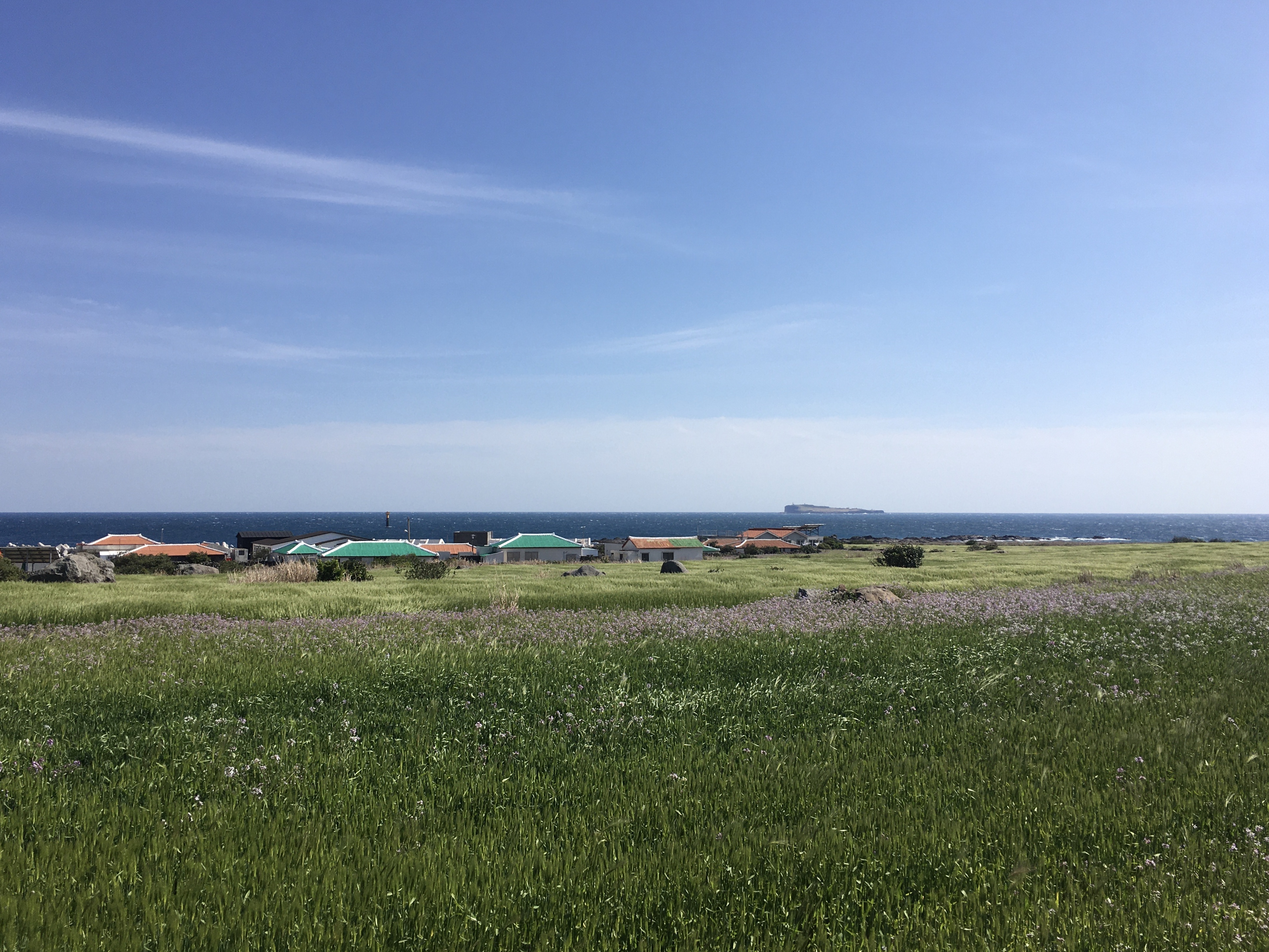 가파도의 봄은 청보리가 아름다워요. 동동이는 끝없이 펼쳐진 청보리밭을 옆에 두고 걸어서 마을과 섬 서편을 돌았어요. 바람이 끊임없이 불었는데, 출렁이는 초록 청보리가 파란 바다와 어울려 장관이었답니다.