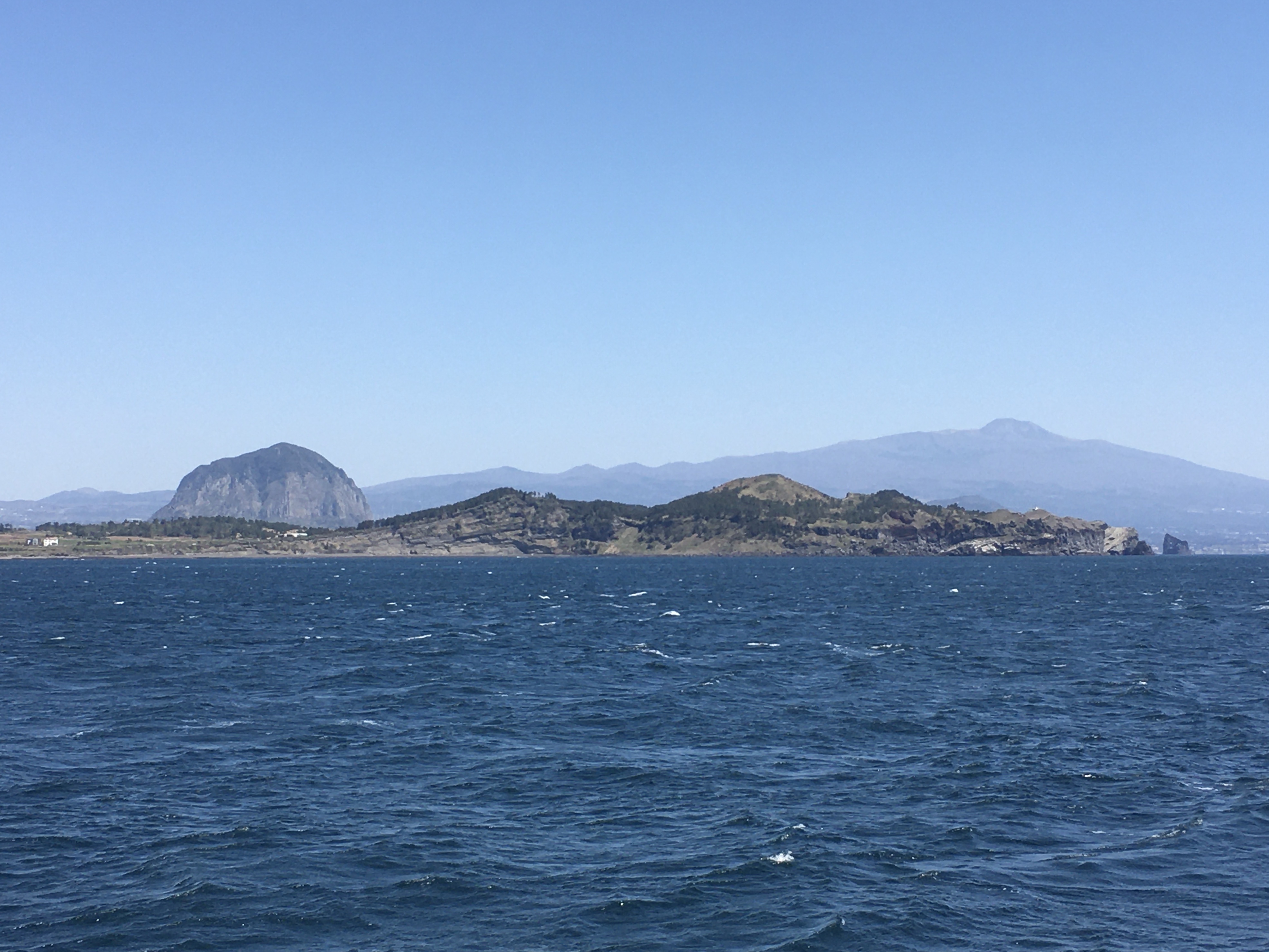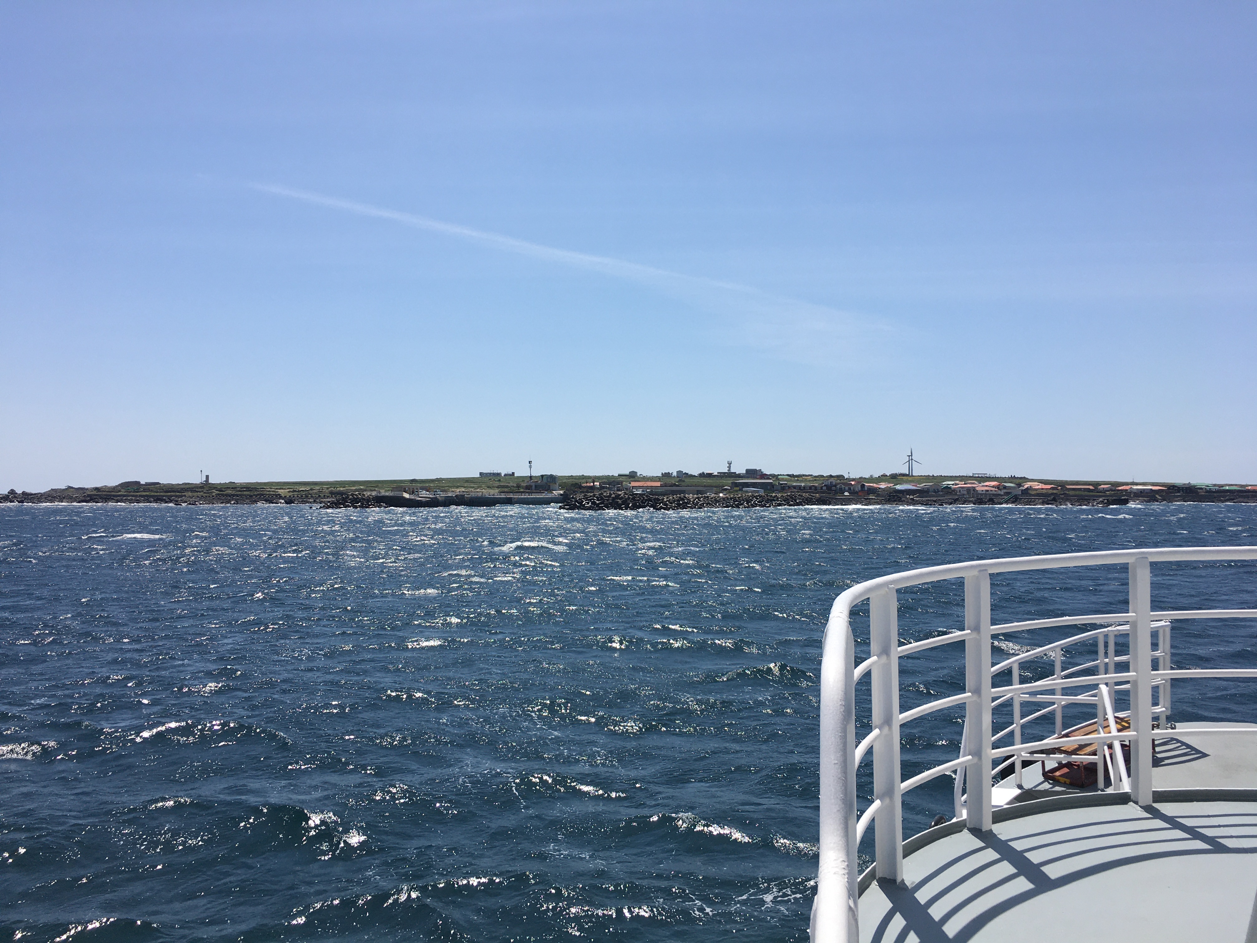 운진항에서 가파도 정기여객선을 타고 바다로 나가면 한라산과 산방산과 송악산 해안이 한 데 어우러진 제주도의 멋진 광경을 볼 수 있어요. 10분 정도 바다로 나가면 뱃머리 앞으로 섬이 눈에 들어오기 시작해요.