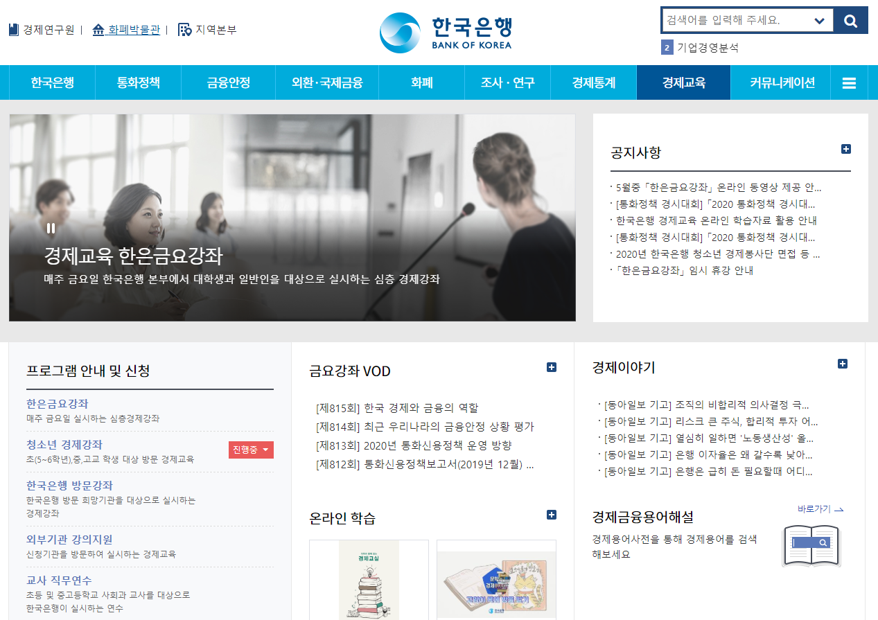 공지사항 | 새소식 | 경제교육 | 한국은행 홈페이지