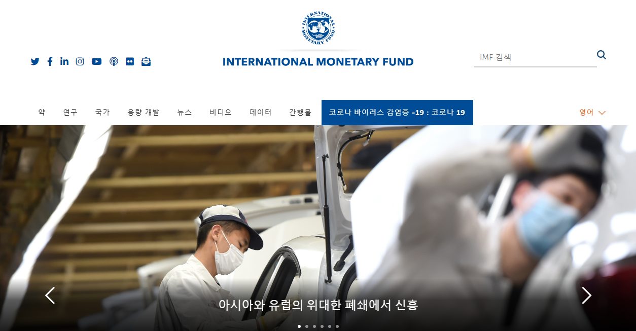 국제통화기금은 세계무역의 안정된 확대를 통해 가맹국들의 고용증대, 소득증가, 생산자원 개발 등에 기여하는 것을 궁극적인 목표로 하는 기관으로 우리에게는 IMF라는 말이 더 익숙하죠. 국제통화기금 홈페이지에서는 국가별 IMF보고서, 국가별 역량, 세계경제 전망 등의 보고서를 살펴볼 수 있어요. 주간 간행물로는 세계 현황 모니터, 글로벌 채무 전망성까지 조명하고 있어 거시적 경제 전망을 학습할 수 있는데 도움을 주는 사이트에요. 다만 국제통화기금 사이트는 영어로 되어 있어요. 영어가 부담되는 분들은 크롬(Chrom) 번역 기능을 사용하면 한국어로도 이용할 수 있으니 참고하면 좋을 것 같아요!