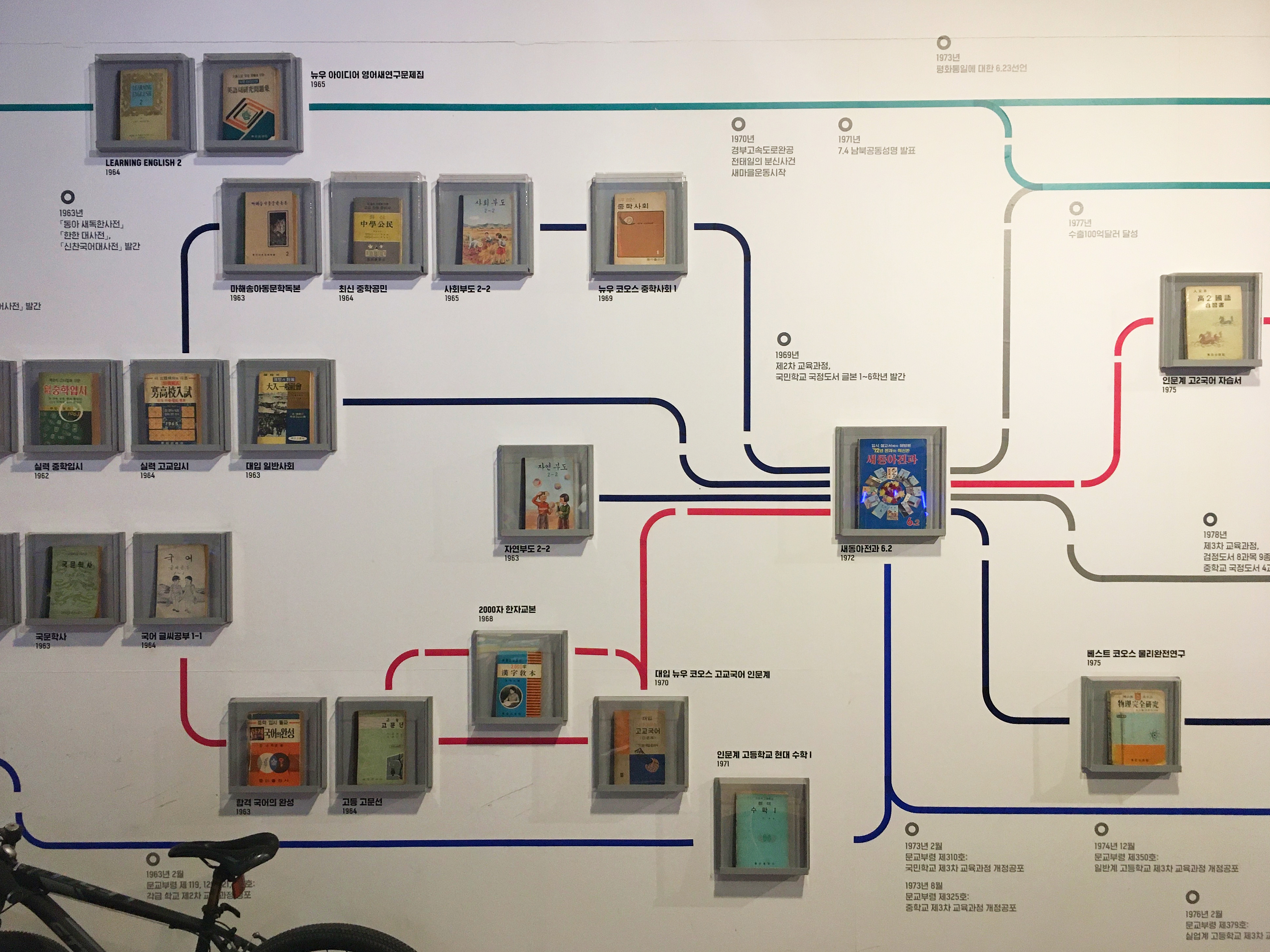 F1963 공간 본연의 매력을 최대한 살리면서 미술관에 온 것처럼 책을 여유롭게 감상하고 즐길 수 있는 공간 디자인이 특징이에요. 서점 가운데에는 원고지 형상의 디지털 작품이 있고, 벽면에는 1945년 이후 한국 출판 역사를 인쇄 기기와 활자, 베스트셀러 등으로 표현한 작품이 있어요.
