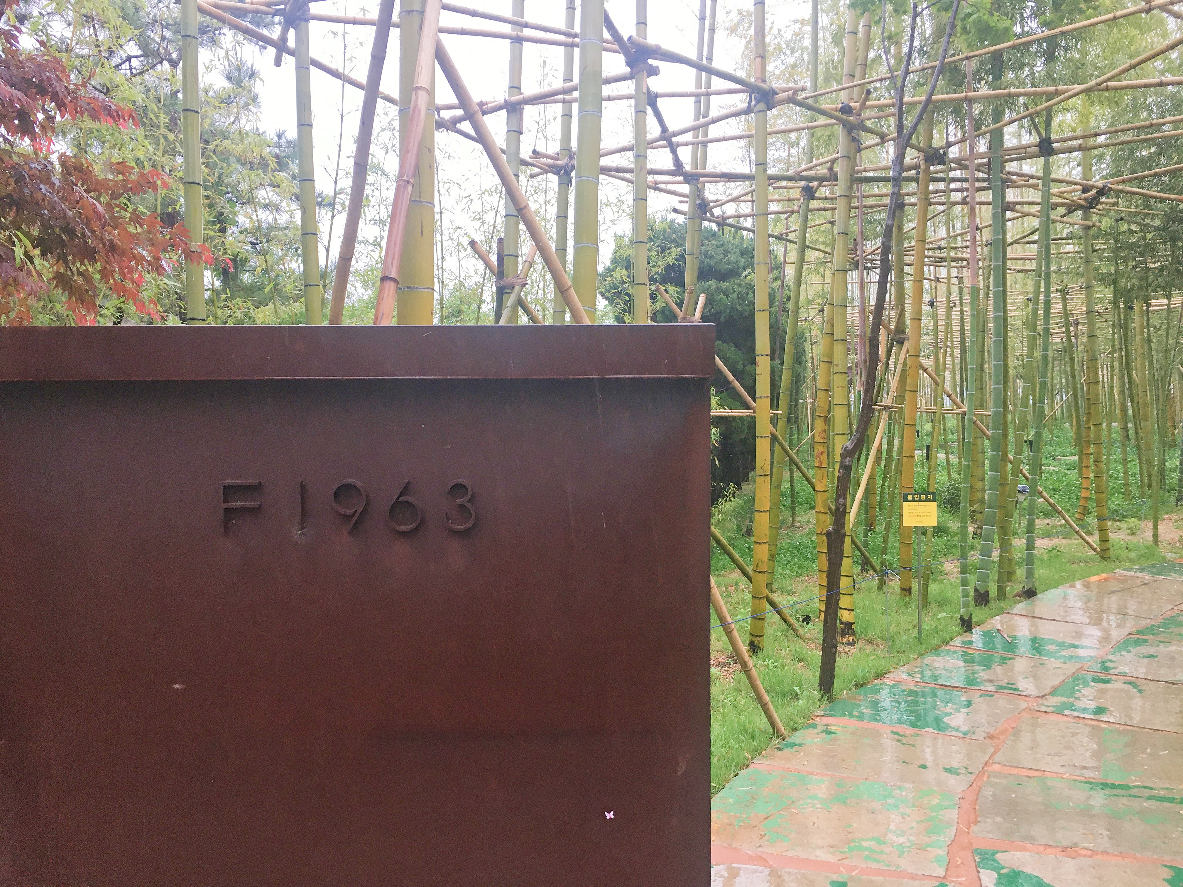 F1963 정문 쪽에는 푸른 대나무 숲이 있어요. 와이어 제조설비가 있던 공장 부지에 가늘면서 유연하고 강인한 와이어의 속성을 닮은 대나무로 꾸민 맹족죽 숲길 ‘소리길’이에요.