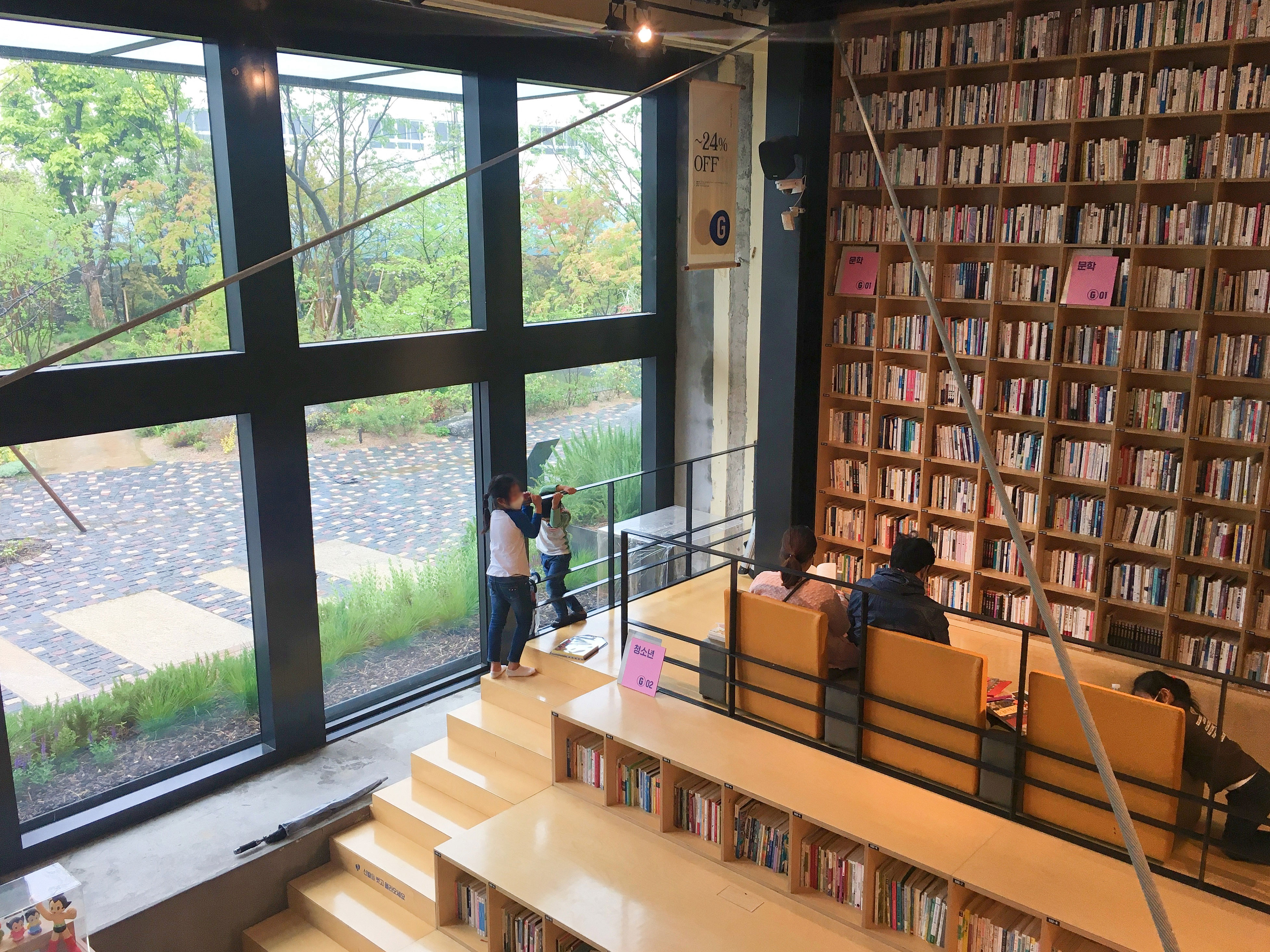 ‘예스24 F1963점’에는 어린이들의 독서를 위한 키즈존을 따로 구성했는데, 아이가 책을 읽고 고를 수 있도록 유아동 전집 상담 서비스를 함께 마련해 연령대에 맞는 전집을 추천받을 수 있어요. 서점 내부에는 카페 테라로사도 운영 중이랍니다.