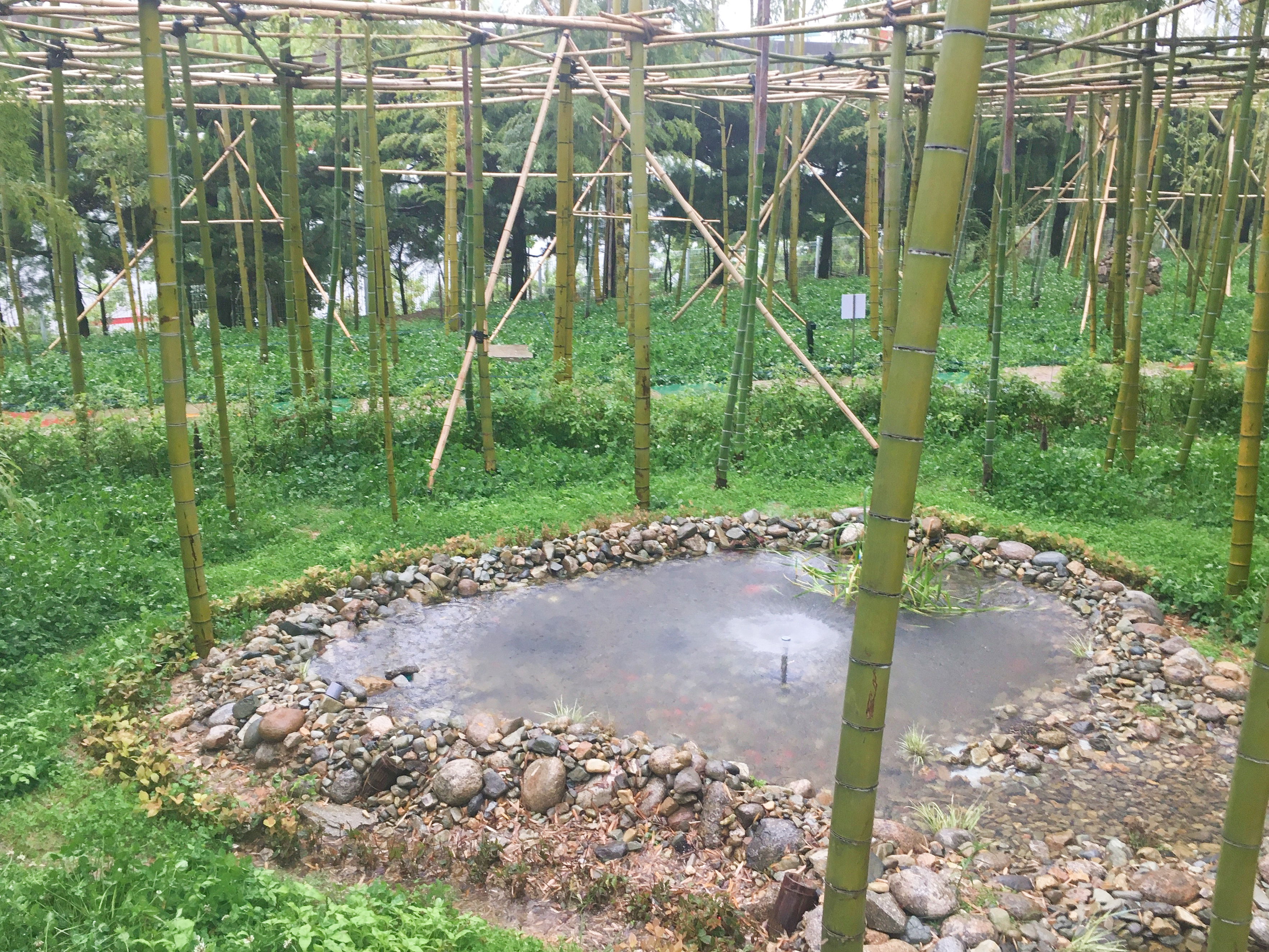 공장 바닥의 콘크리트를 잘라 조성한 대숲길을 걸으며 댓잎에 빗방울이 부딪히는 소리를 한참 동안 들었답니다. 와이어의 곧고 유연한 속성과 대나무의 이미지가 이질적이면서도 무척 닮아있다는 생각이 들었어요.