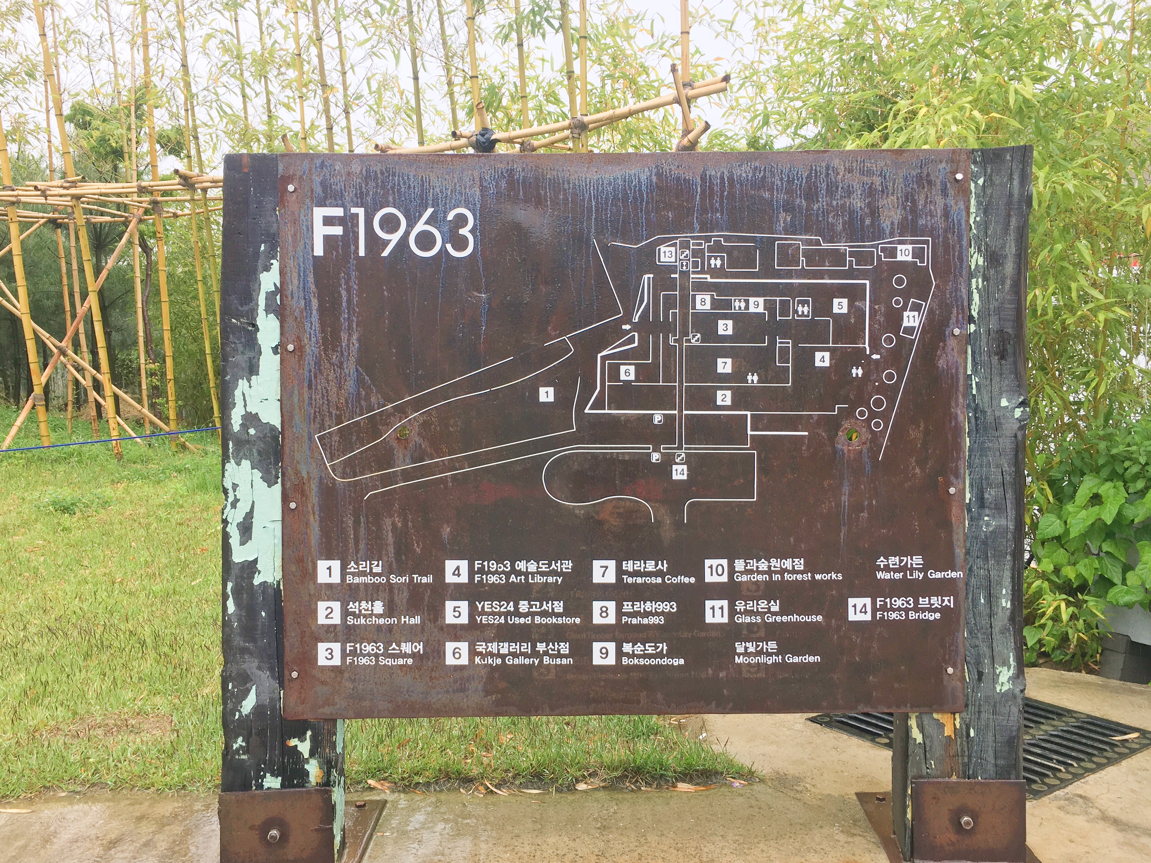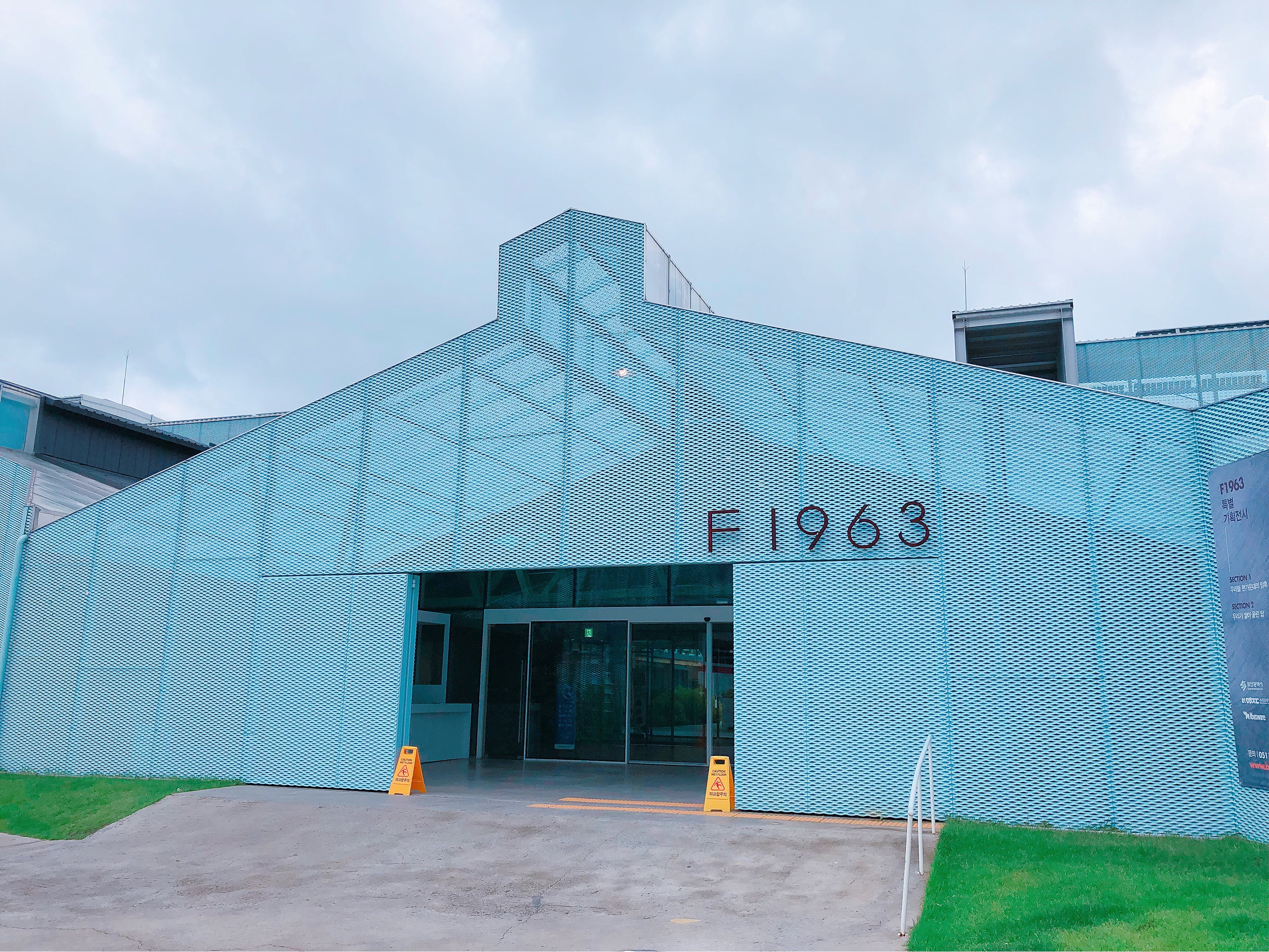 2008년 6월 생산시설을 양산으로 이전한 뒤 사실상 방치돼 있다가 공장 형태나 골조 등을 살려 재단장 후 2016년 9월 부산비엔날레 전시장으로 변신했고, 이후 2017년 카페, 서점, 전시·공연장, 도서관 등을 갖춘 복합문화공간으로 자리매김했어요. ‘F1963’에서 F는 공장을 뜻하는 영어 단어 Factory, 1963은 공장을 지은 해에서 따왔다고 합니다.