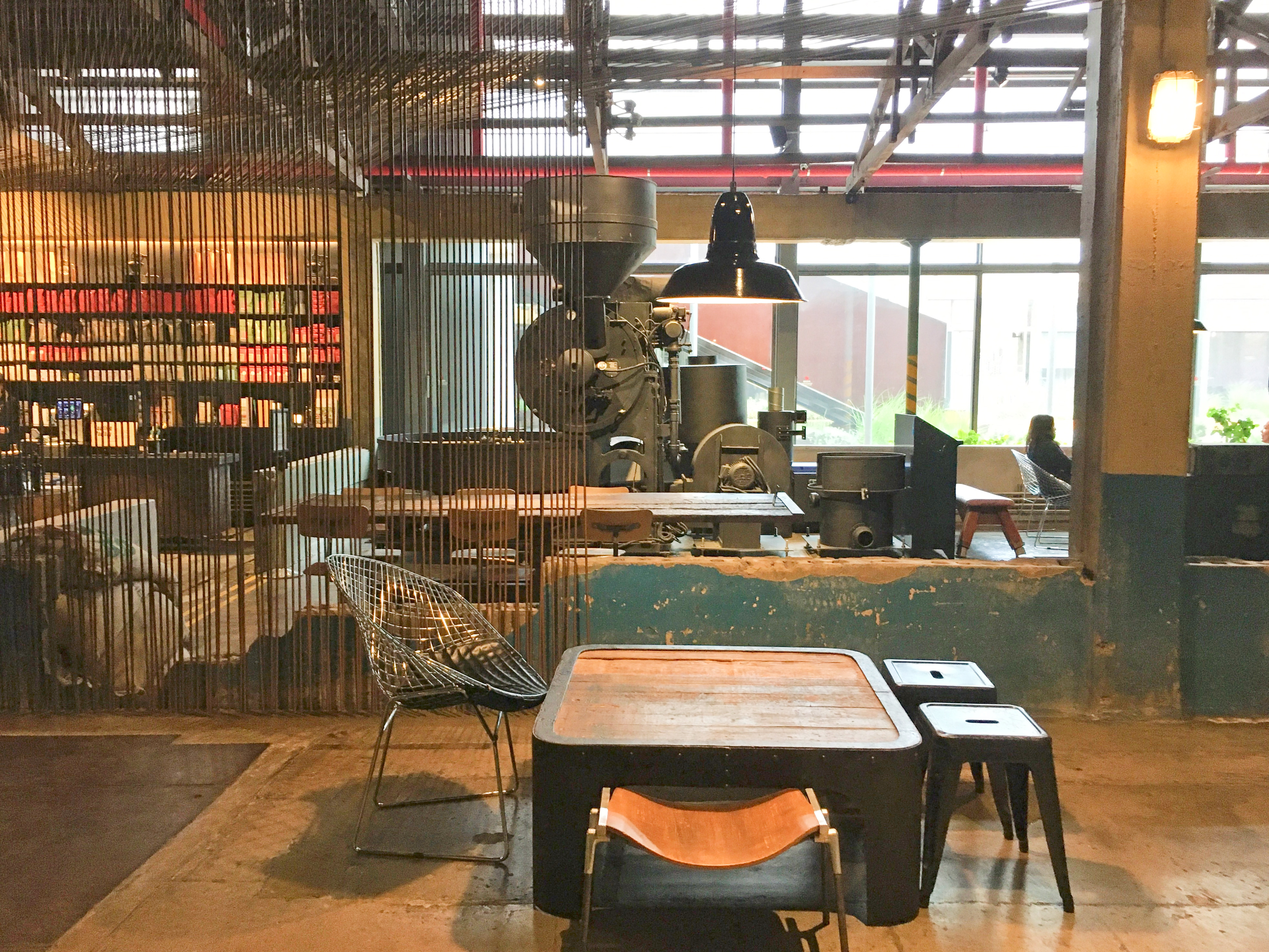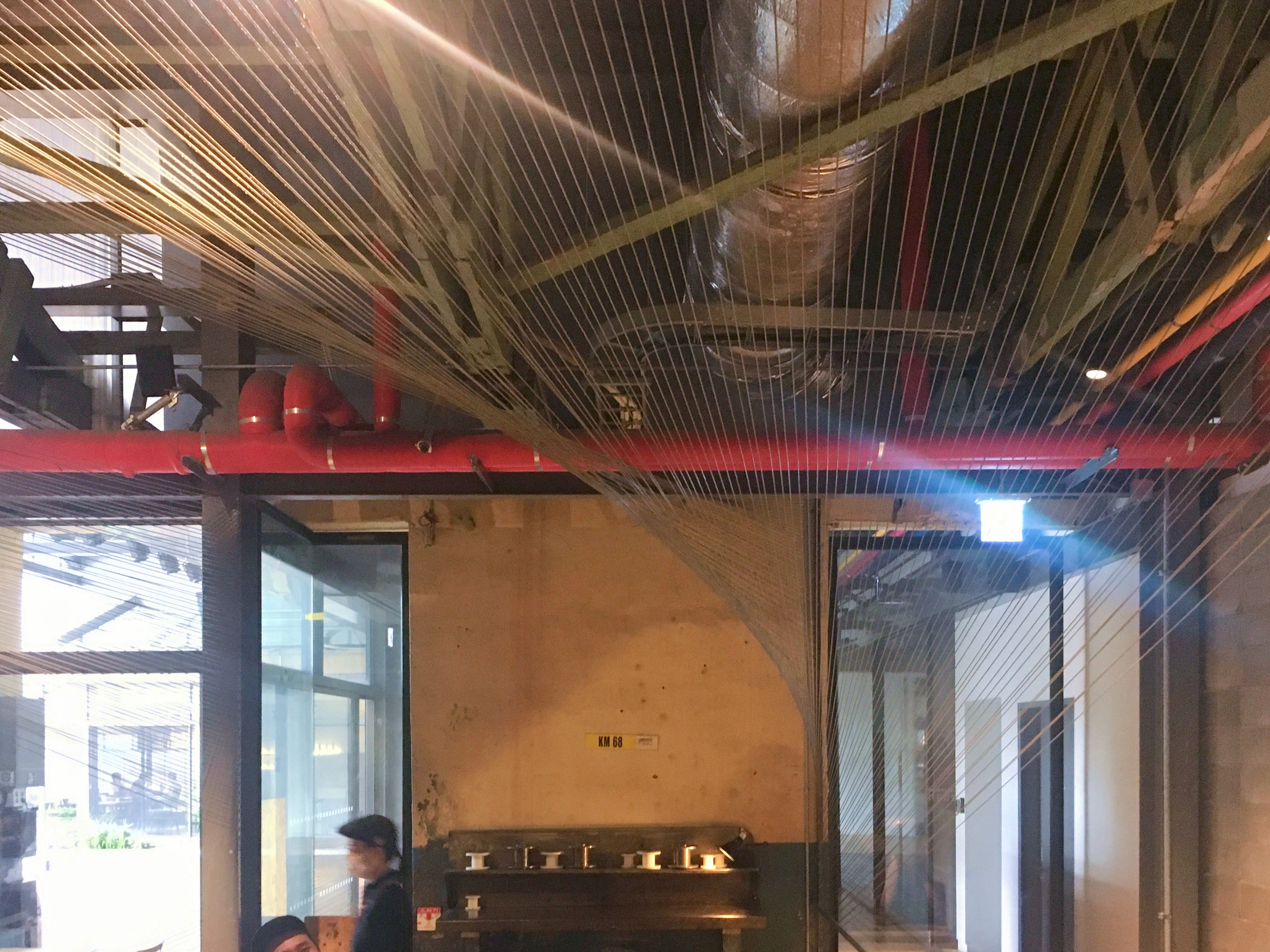 와이어 공장답게 천장을 가로지르는 무수히 많은 철제 빔이 있고, 그 빔들이 겹치고 얽혀 장관을 연출해요. 실제로 와이어 공장에 들어온 듯한 고색창연한 느낌이 든답니다.