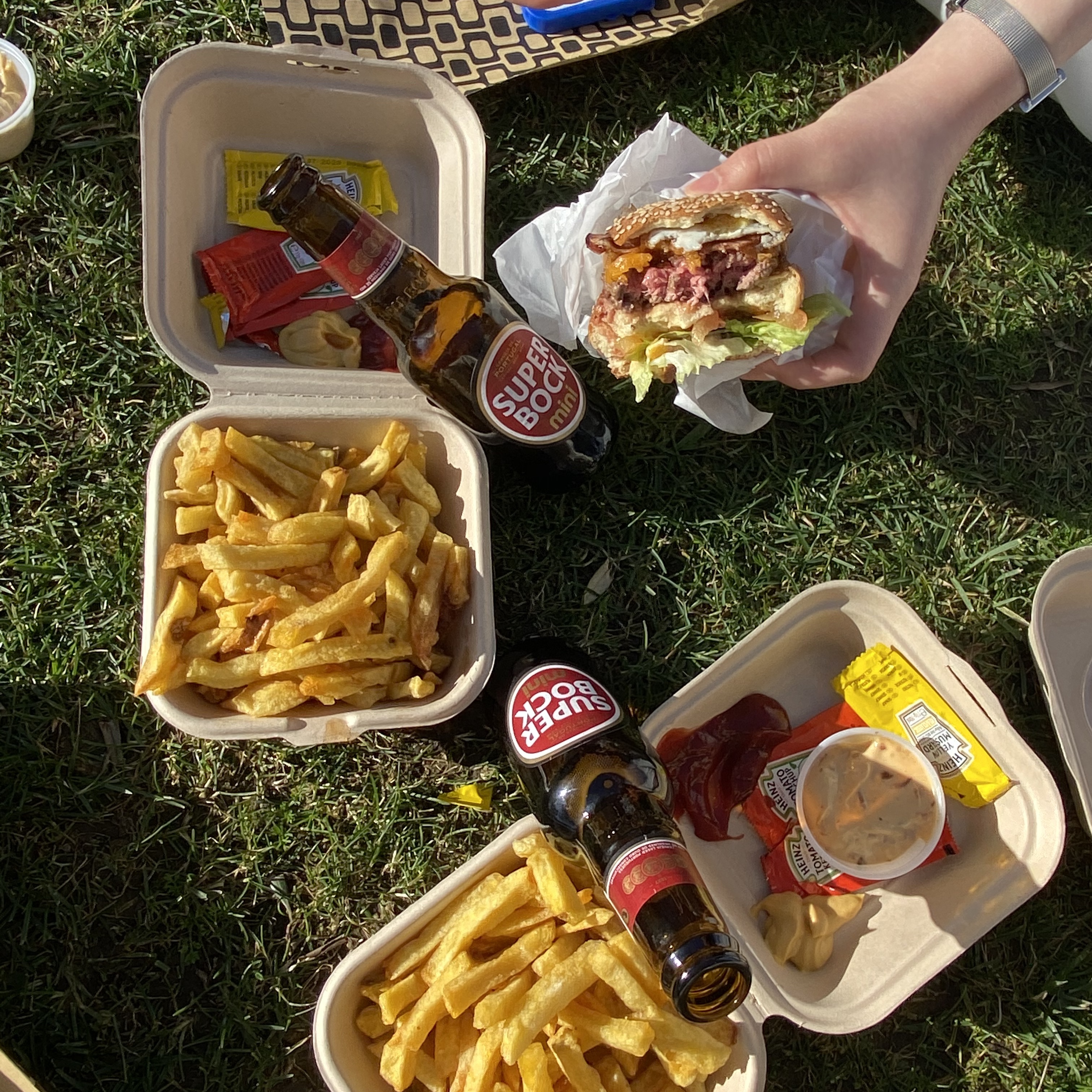 렐루서점 근처에서 들르면 좋을 Base Porto! 잔디밭에 앉아 클레리고스 성당을 뒤로하고 힙하게 와인을 마실 수 있는 곳이에요. 숙소 스탭분의 엄청난 추천으로 기대를 했지만, 마침 방문했던 날은 Base Porto가 쉬는 날이었어요. 그래도 이 잔디밭과 평온한 분위기를 그냥 넘어가기엔 아쉬워 근처에 있는 햄버거 집에서 햄버거와 맥주를 테이크아웃해 문 닫은 Base Porto에서 햄버거를 먹었어요. 정말 기대도 않고 근처에서 산 수제버거가 생각 이외로 너무 맛이 좋았던 것도, 날이 좋은 날 햇빛 아래, 잔디밭 위에서 자유롭게 맥주를 한잔하는 것도 너무나도 완벽했답니다.