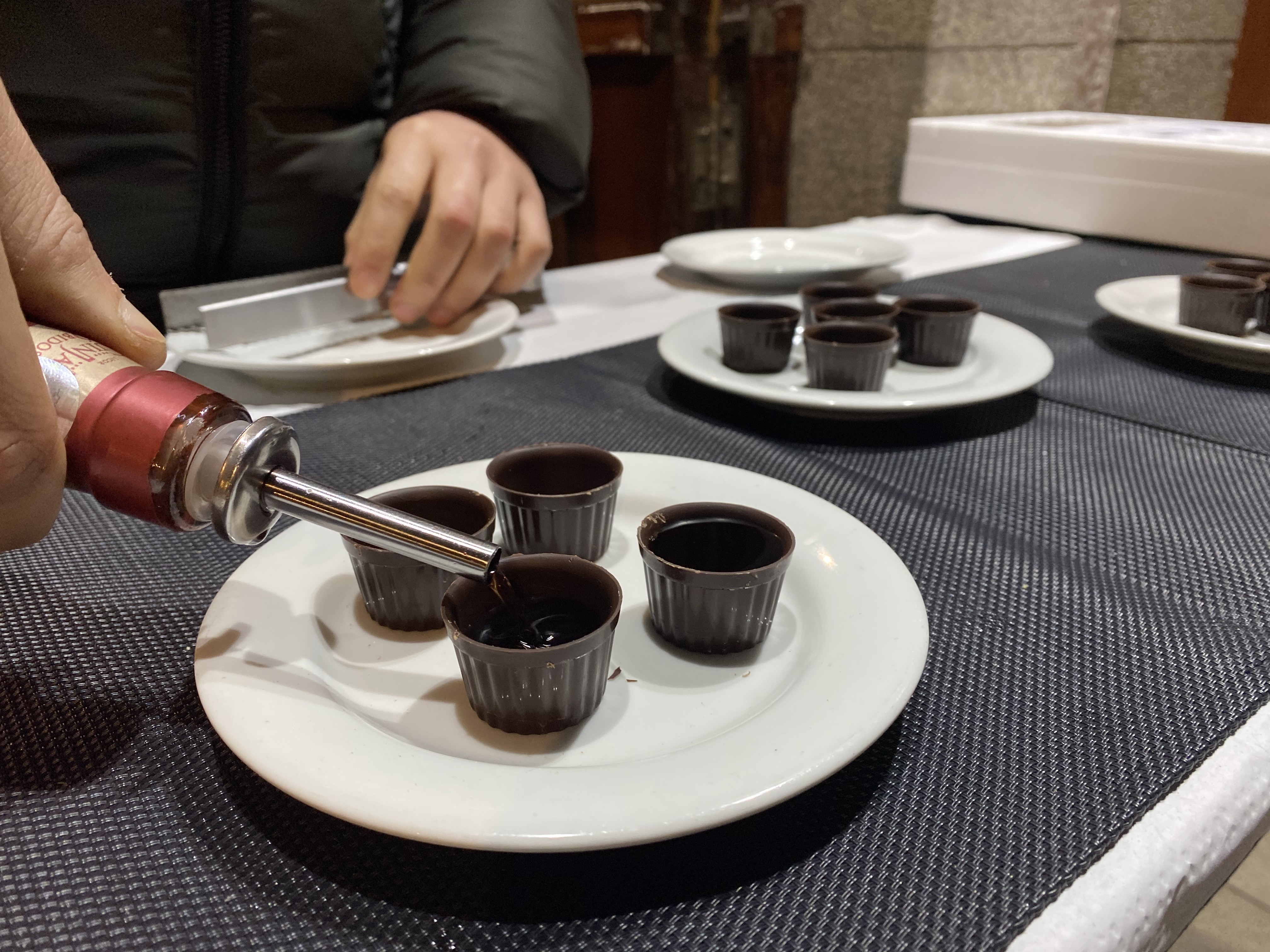 와인 외에도 추천하는 술은 ‘진진야’ 인데요. 진진야는 식전에 마시는 체리주로 호시우 광장이나 도우강 주변의 상점에서도 흔히 볼 수 있어요. 사진처럼 조그마한 잔에 체리주를 따라주는데, 한 잔에 1-2유로 정도로 무척 저렴해요. 특이한 점은 바로 저 컵이 초콜릿이라는 것! 초콜릿 속에 체리주 진진야를 따라주고 한 잔을 원샷 하면 한 잔 더 따라주시더라구요. 그때 초콜릿 컵을 입에 함께 넣고 같이 음미해 주세요. 분명 도수가 엄청 높은데도 쓴맛 없이 달콤함이 입안을 감싸줘 식전에 입맛을 돋우는 데에는 더할 나위 없이 좋더라구요.