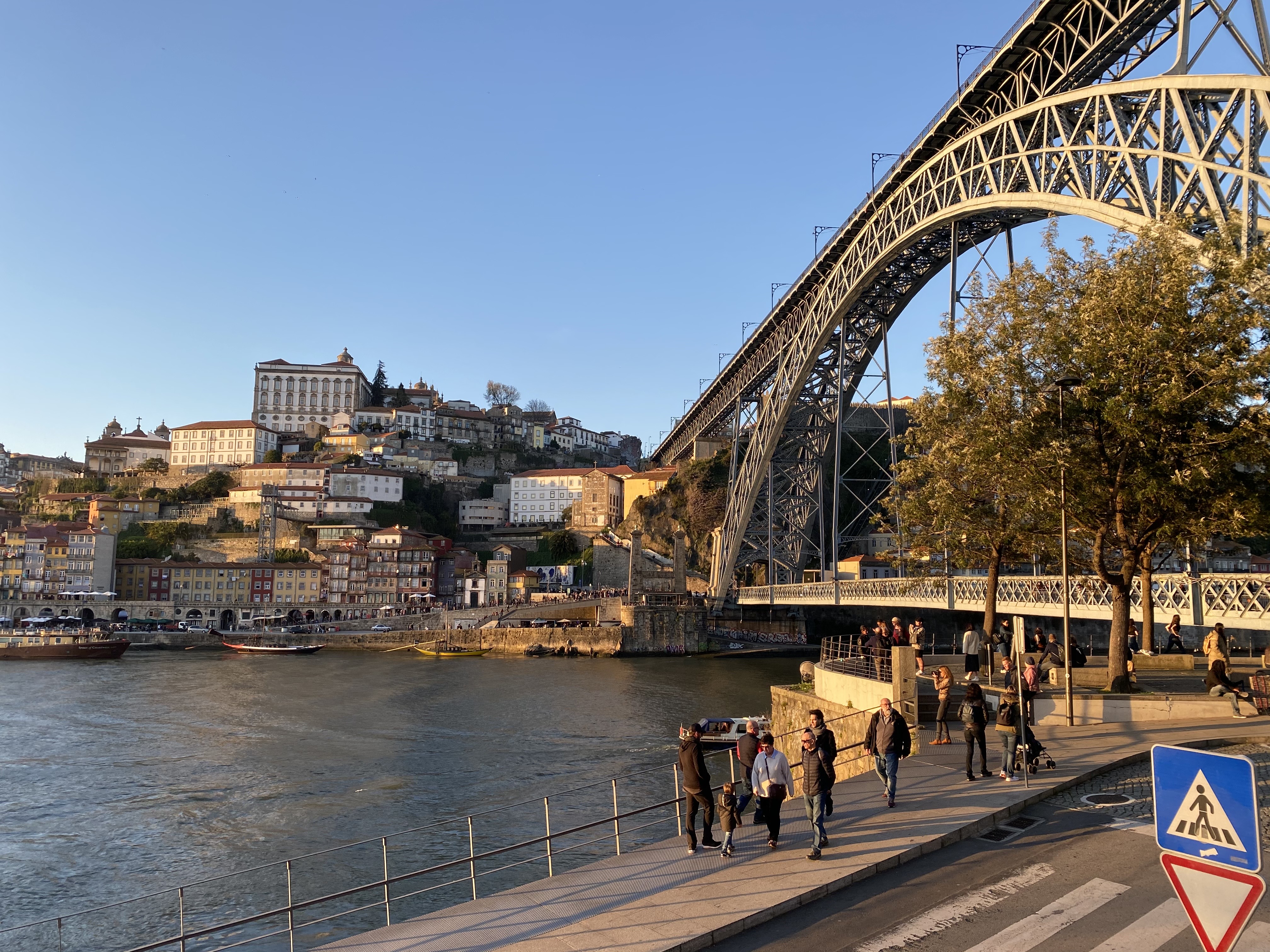 우선 숙소 체크인을 하기 위해 이동을 했어요. 마침 숙소 근처에 도착하니 석양이 지기 시작하더라구요. 포르투는 시내 자체가 크지 않기 때문에 왠만하면 모두 도보로 걸어서 이동할 수 있을 만큼 아기자기해요. 숙소는 도우강이 보이는 곳으로 정했는데요. 도우강 근처라 숙소도, 음식점도 가격대가 나가는 편이지만 도우강을 건너 빌라 데 노바 가이아 지구에 숙소를 잡으면 똑같은 뷰에 훨씬 더 저렴한 가격에 숙소를 구할 수 있으니 참고하세요! 도우강은 폭이 넓지 않아 걸어서 5분 정도면 건널 수 있기 때문에 가이아 지구에 숙소를 잡는 것도 조용하고 좋을 것 같아요.