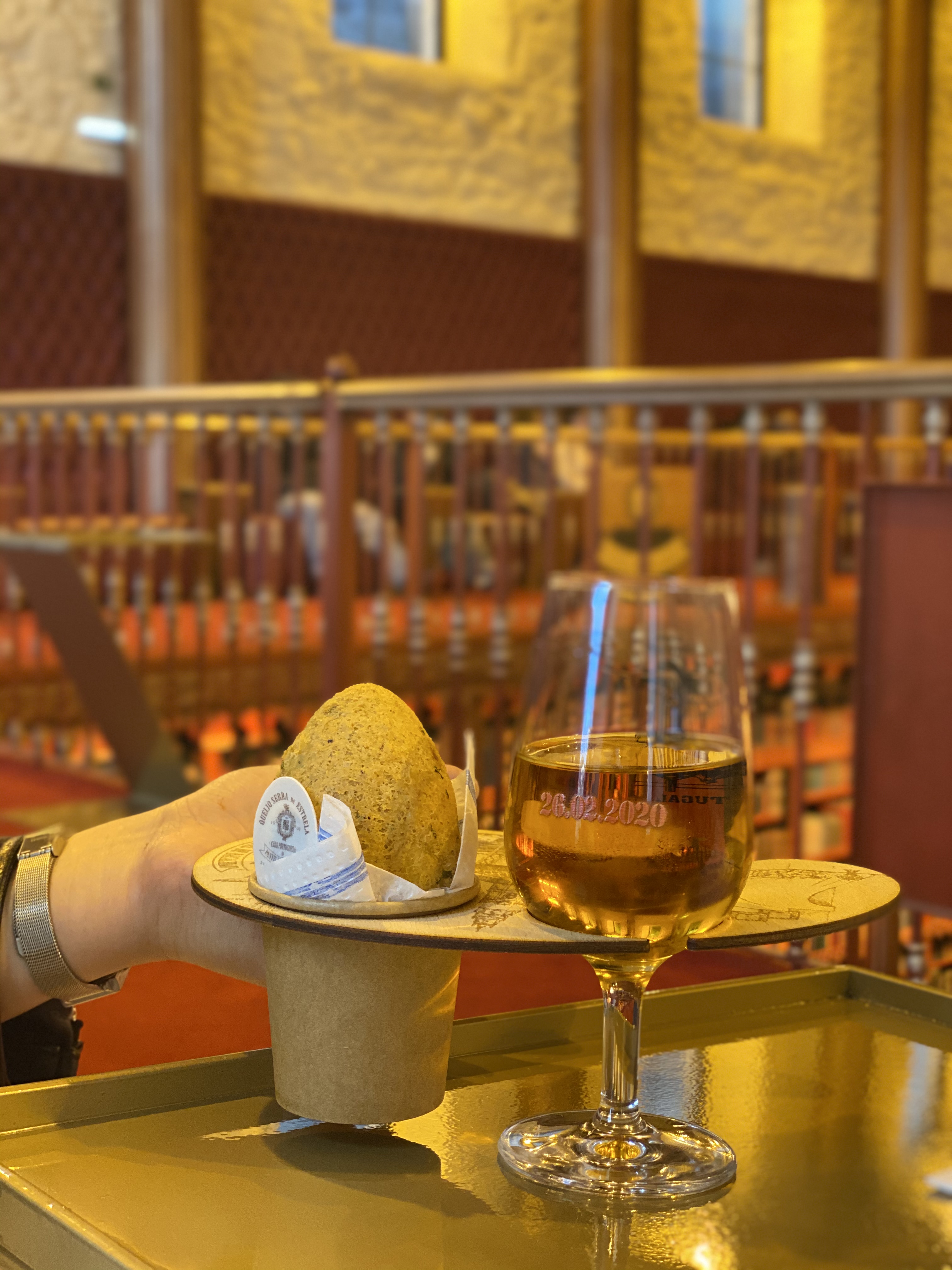 다음 소개해드릴 음식은 조금은 특별한 고로케에요. 바칼라우라고 생선 대구살과 치즈로 만든 고로케인데요. 제가 방문한 바칼라오 집은 강 건너의 와이너리 옆에 위치해 있었는데, 이렇게 <해리포터> 서점 같은 분위기였어요. 포트와인과 세트로 구매할 수 있게 패키지가 있는데 특이한 점은 매일 유리로 된 와인 잔을 만들어내고, 마신 와인잔까지 집에 기념품으로 가져갈 수 있게 주신다고 하더라구요