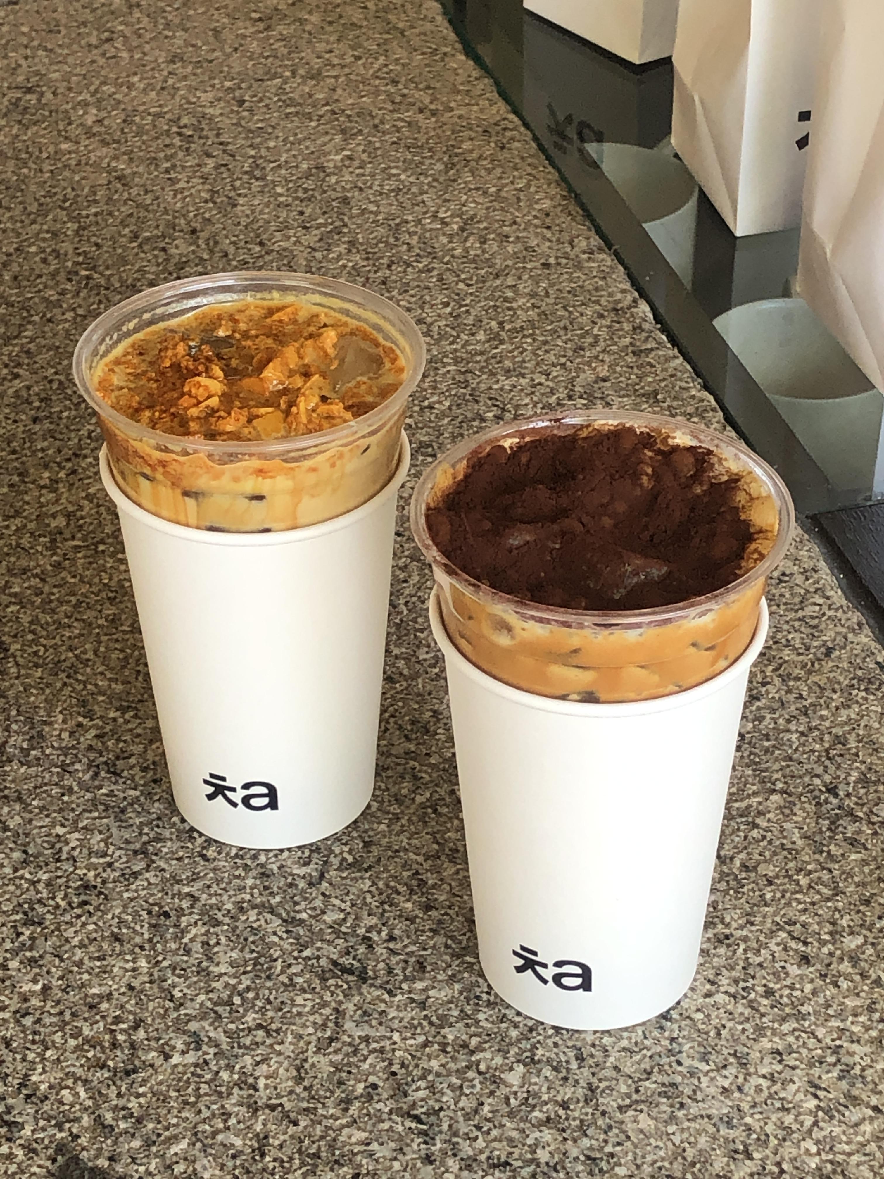 카페차(ㅊa)는 커피 위에 잘게 부순 달고나 조각들을 잔뜩 올려주는 것으로 유명해졌어요. 비쥬얼만 봐도 추억을 상기시키는 매력에 얼른 찾아가서 맛을 봤어요. 우유에 닿아 아스러지면서 바삭하고, 달콤함을 남기는 달고나 조각들은 확실히 평소에 마시던 라떼들과는 또 다른 매력이었는데요. 매장에서 직접 만드는 달고나는 스콘 위에도 올라가고, 음료 위에도 잔뜩 올라가요. 다음에 카페차(차a)를 방문하신다면 꼭 달고나라떼와 스콘을 시켜보세요!