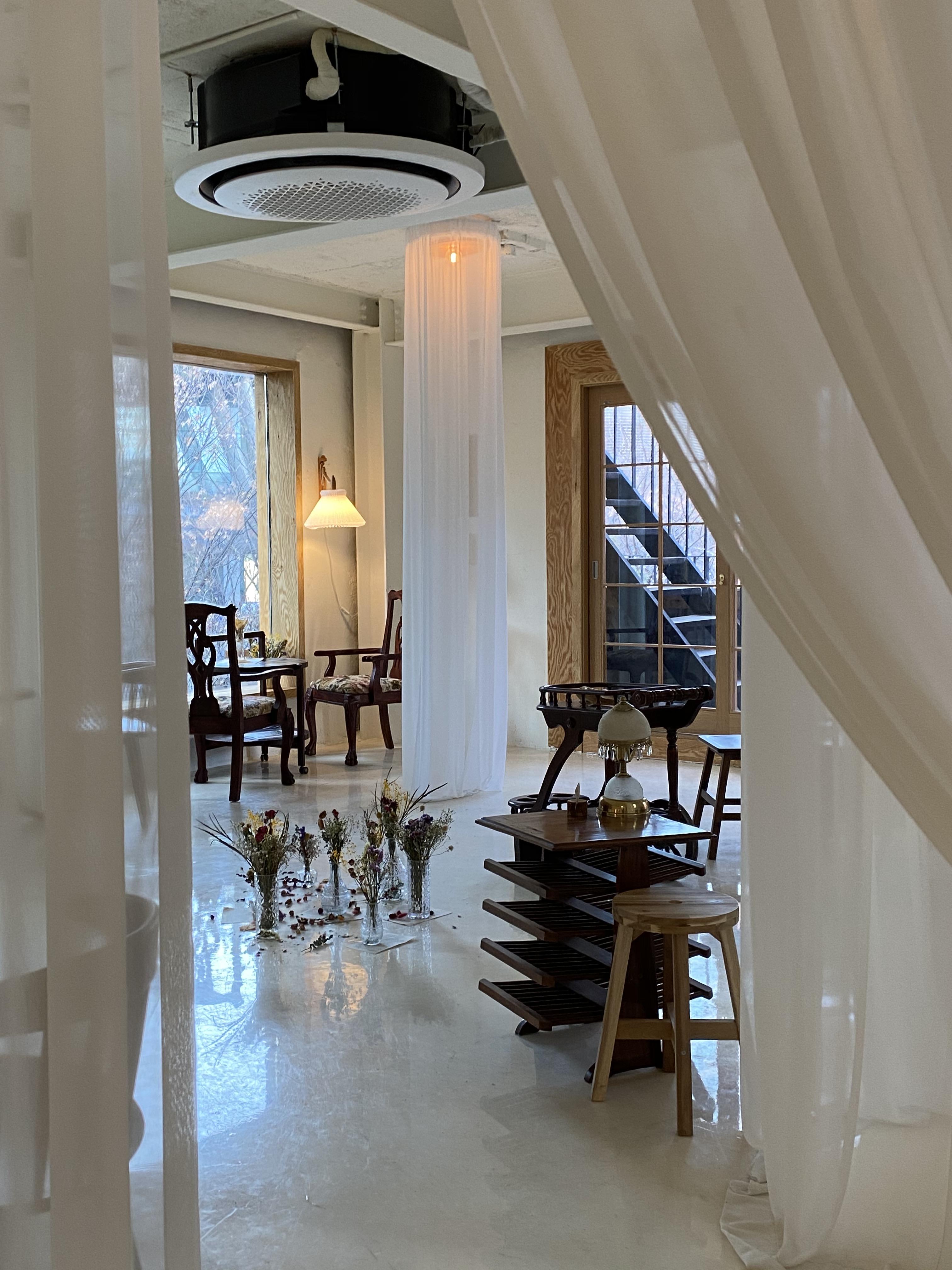 성수동의 카페들은 사이즈가 작고 아담하지만 카페마다 특색이 달라 매력적이에요. 특히 플디(플레이트디)는 코지한 느낌의 흰 천을 다양하게 활용하여 작은 공간 곳곳에 사장님의 따뜻한 감성이 녹아 있는데요. 깨끗한 배경 덕분에 인증샷을 찍기에도 셀피를 찍기에도 예쁜 공간이에요