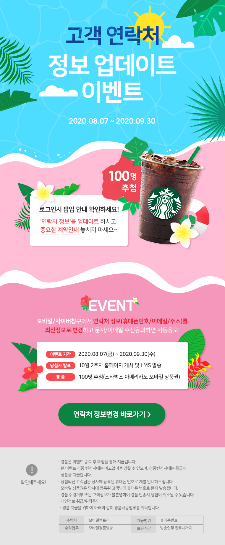 최신정보로 변경하고 문자/이메일 수신동의하면 자동응모!