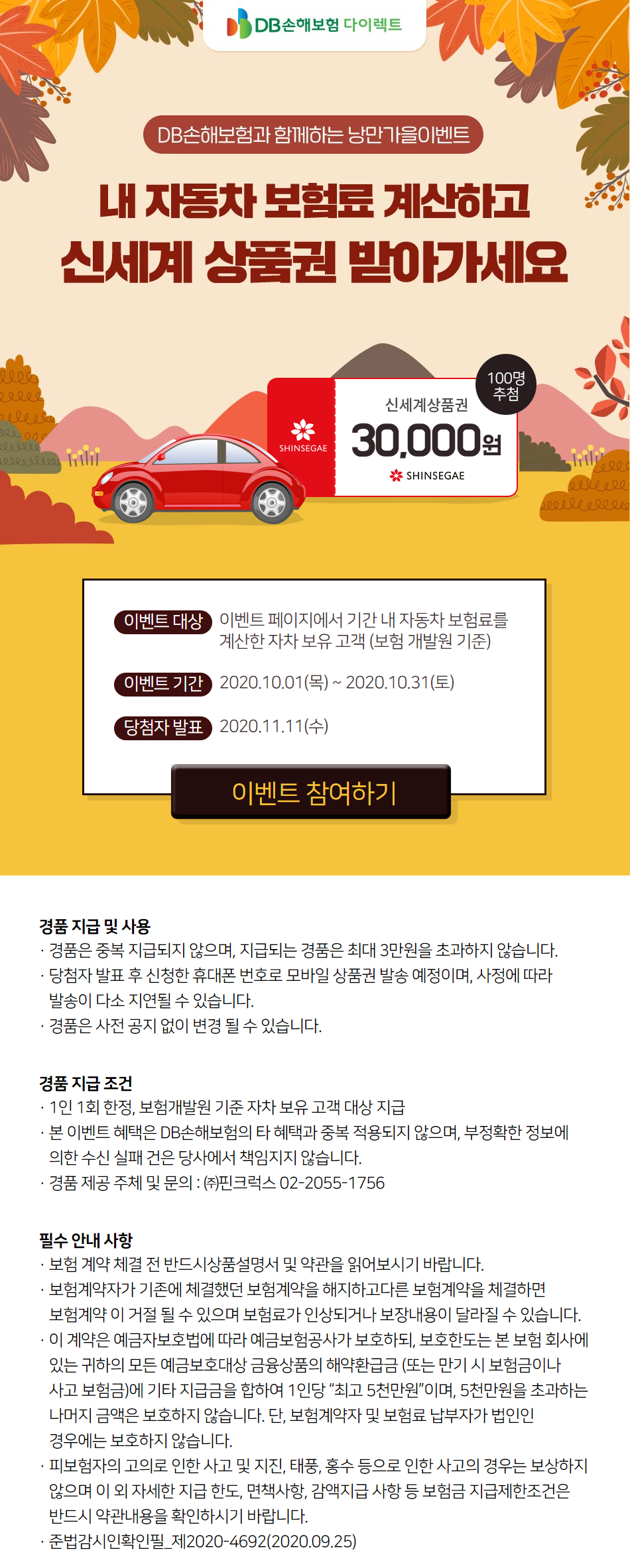 이벤트 페이지에서 기간 내 자동차 보험료를 계산한 자차 보유 고객