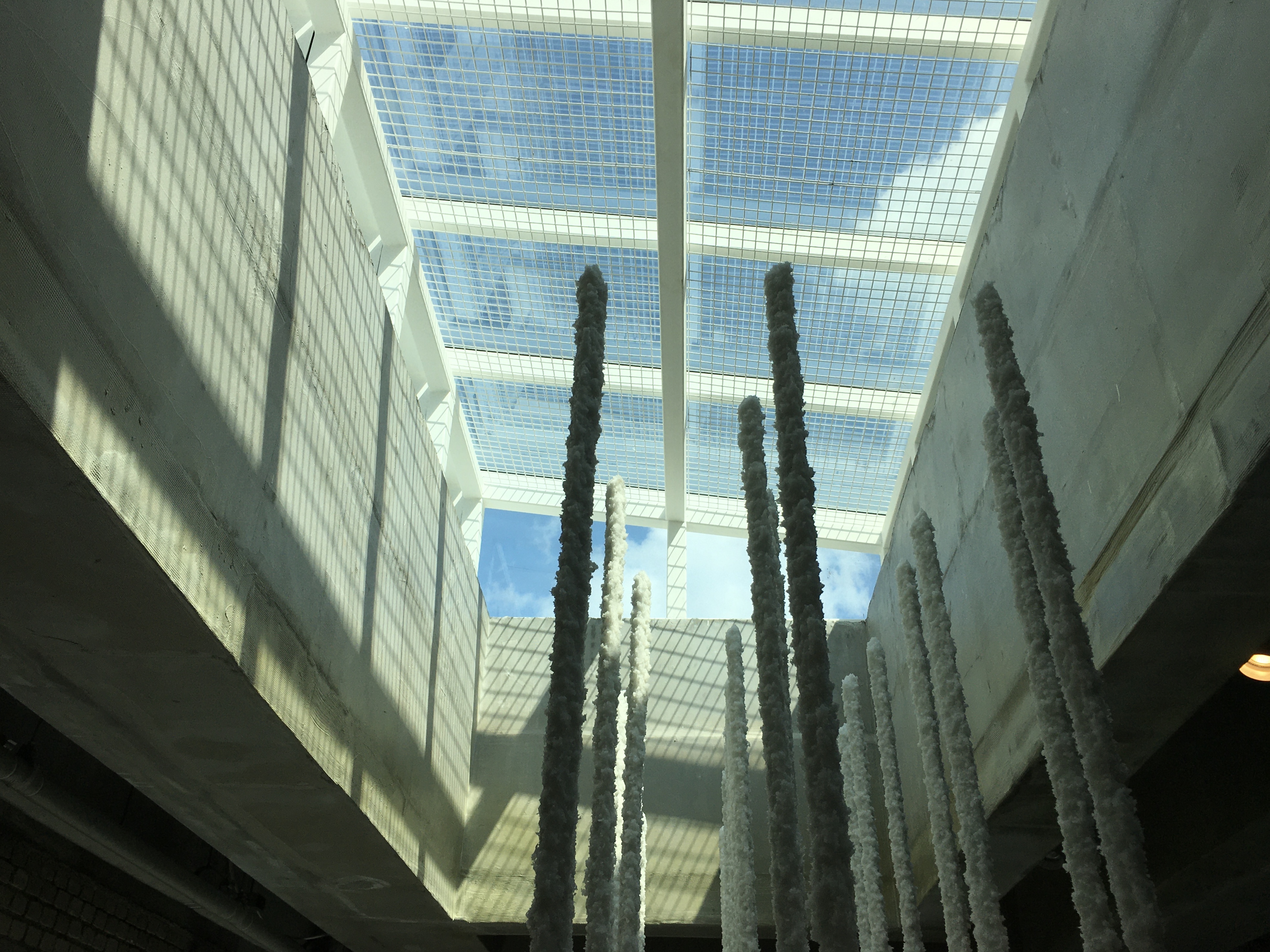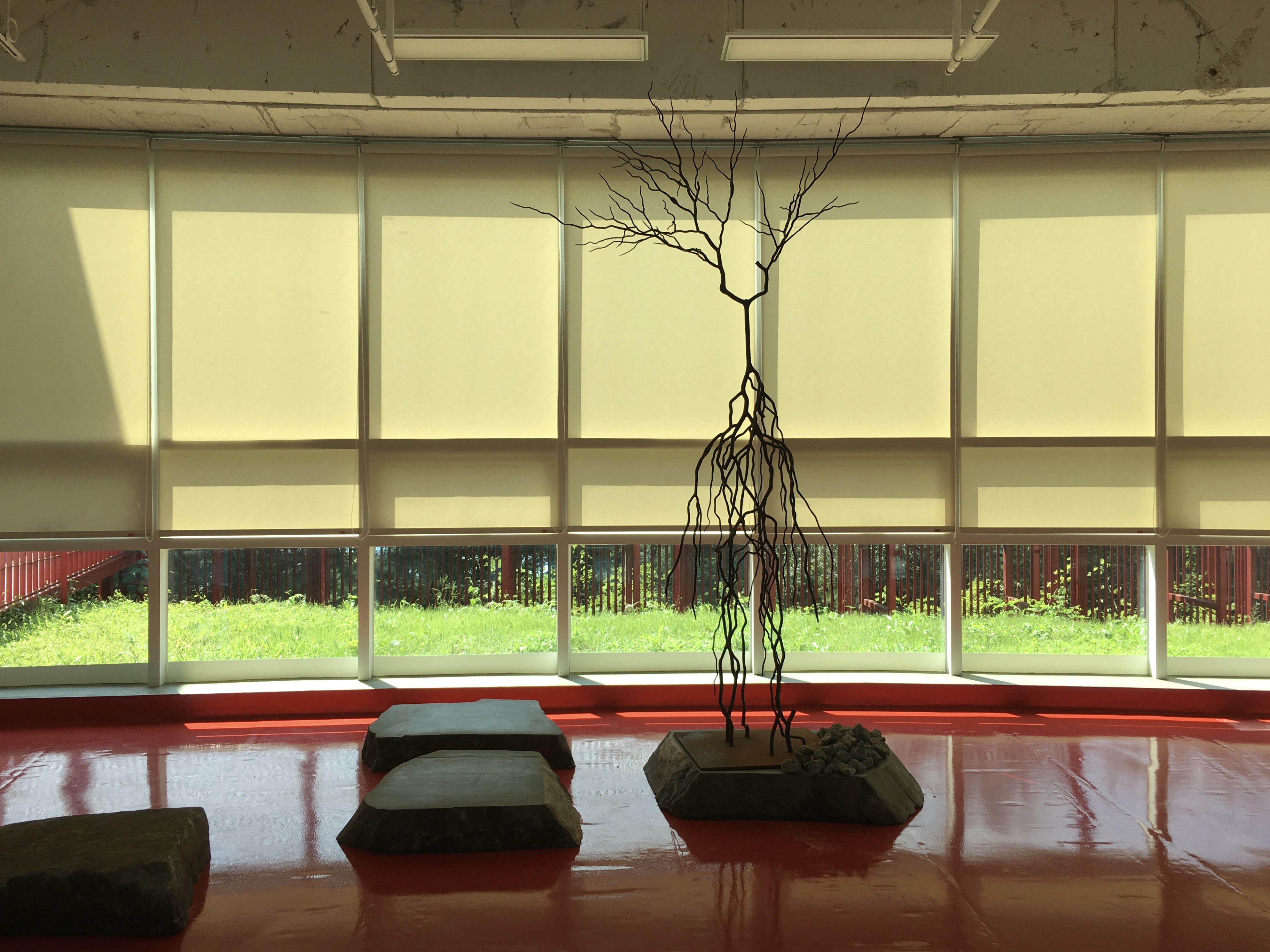 술샘박물관의 천장 스틸은 공사로 해체했지만, 버리지 않고 실버 토네이도가 되어 영월의 바람과 어우러졌습니다. 건물 바닥에서 철거한 온돌 파이프는 은색 정어리 떼를 표현한 ‘실버 피쉬’가 되었답니다.