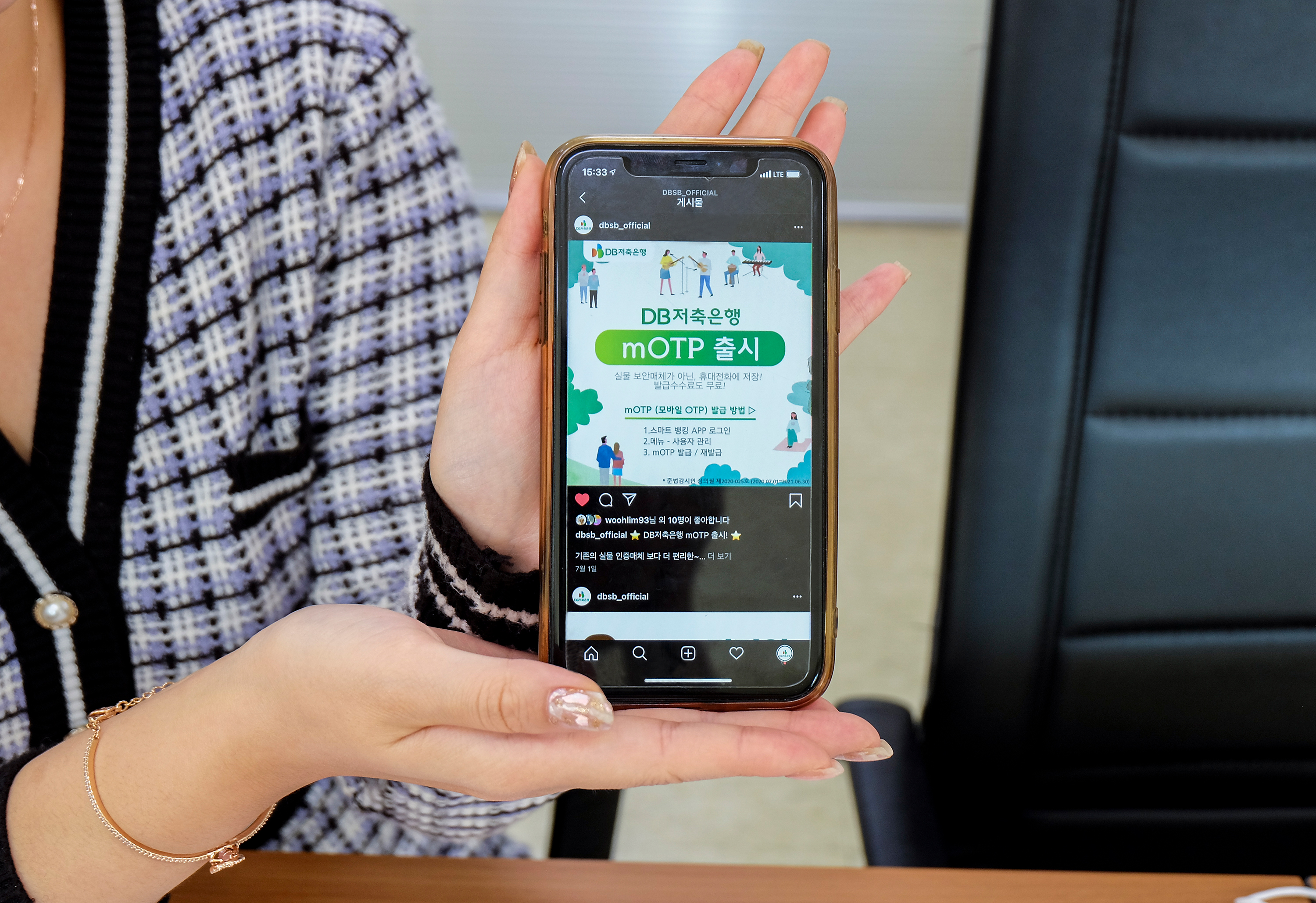 창구 직원들과 함께 방문 고객을 대상으로 스마트뱅킹 서비스 이용 방법을 안내하는 것 역시 마케팅팀의 역할이다. DB저축은행은 2018년 구성된 핀테크 TFT를 통해 2000년대 초반부터 서비스한 인터넷뱅킹 시스템 업그레이드와 함께 스마트뱅킹 시스템을 개발했다. 스마트뱅킹 시스템의 경우 큰 활자체와 간결한 화면 구성으로 장년층과 노년층의 편의성을 높였다. 올해 6월부터는 모바일 OTP(mOTP)를 서비스해 스마트OTP, 실물OTP 등 기존 보안카드를 대체할 수 있도록 했다.