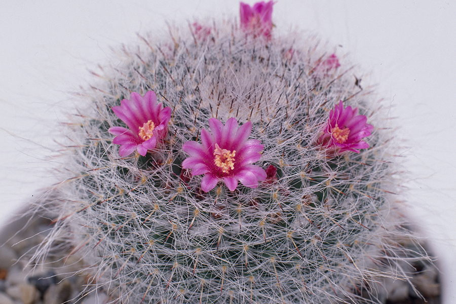 관상용으로 인기가 좋은 소정 선인장은 영어 이름인 silver ball cactus처럼 새하얀 솜털이 가득하고 마치 하얀 눈이 내린 듯해요. 봄에 꽃이 피는 다화성이며, 성장하면서 단구의 형태가 점점 원통으로 바뀌며 직경 10cm, 높이 20cm까지 자라죠. 소정 선인장을 화분으로 옮겨 심을 경우, 먼저 뿌리를 정리하고 식물의 몸체보다 큰 화분에 적당한 토양을 채운 뒤, 절단면을 건조시킨 다음 심으면 돼요. 이식은 봄과 가을이 적당한 시기이며 여름엔 직사광선을 피해 반양지에서 키우는 것이 좋고, 장마철에는 물을 주지 않아도 되는 것이 포인트입니다.