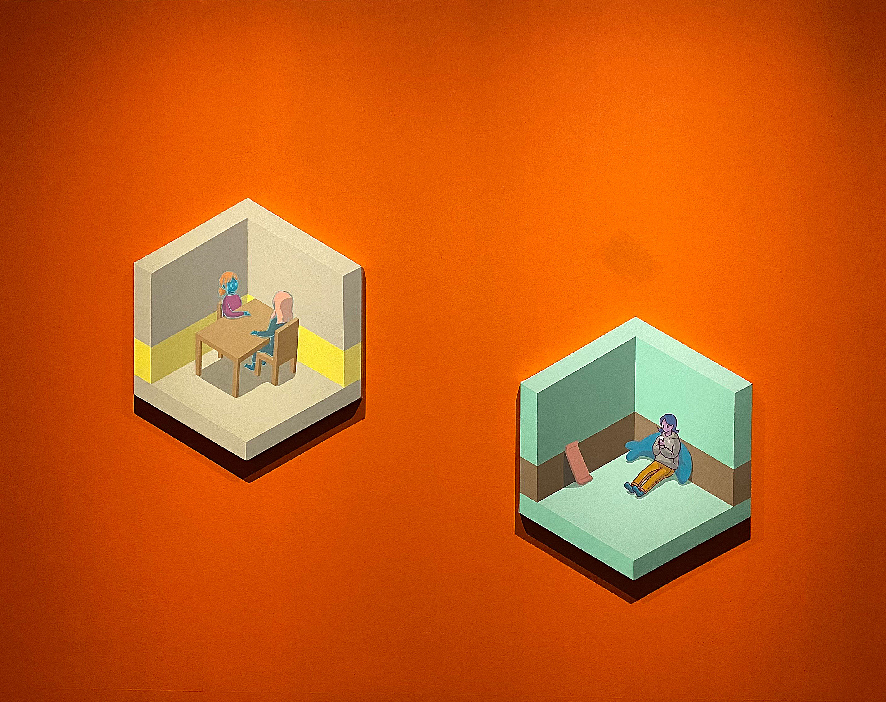 어떤 사람들은 자신의 방에서 여유와 편안함을 즐기기도 하고, 어떤 사람들은 외로움과 불안함을 느끼기도 하죠. 작가는 사물과 분위기 등을 통해 감정이 담긴 공간들을 담았는데요. 여성들의 한없이 불안하고 두렵고 외로운 삶을 알록달록한 색감과 율동적인 캔버스로 그려냅니다.