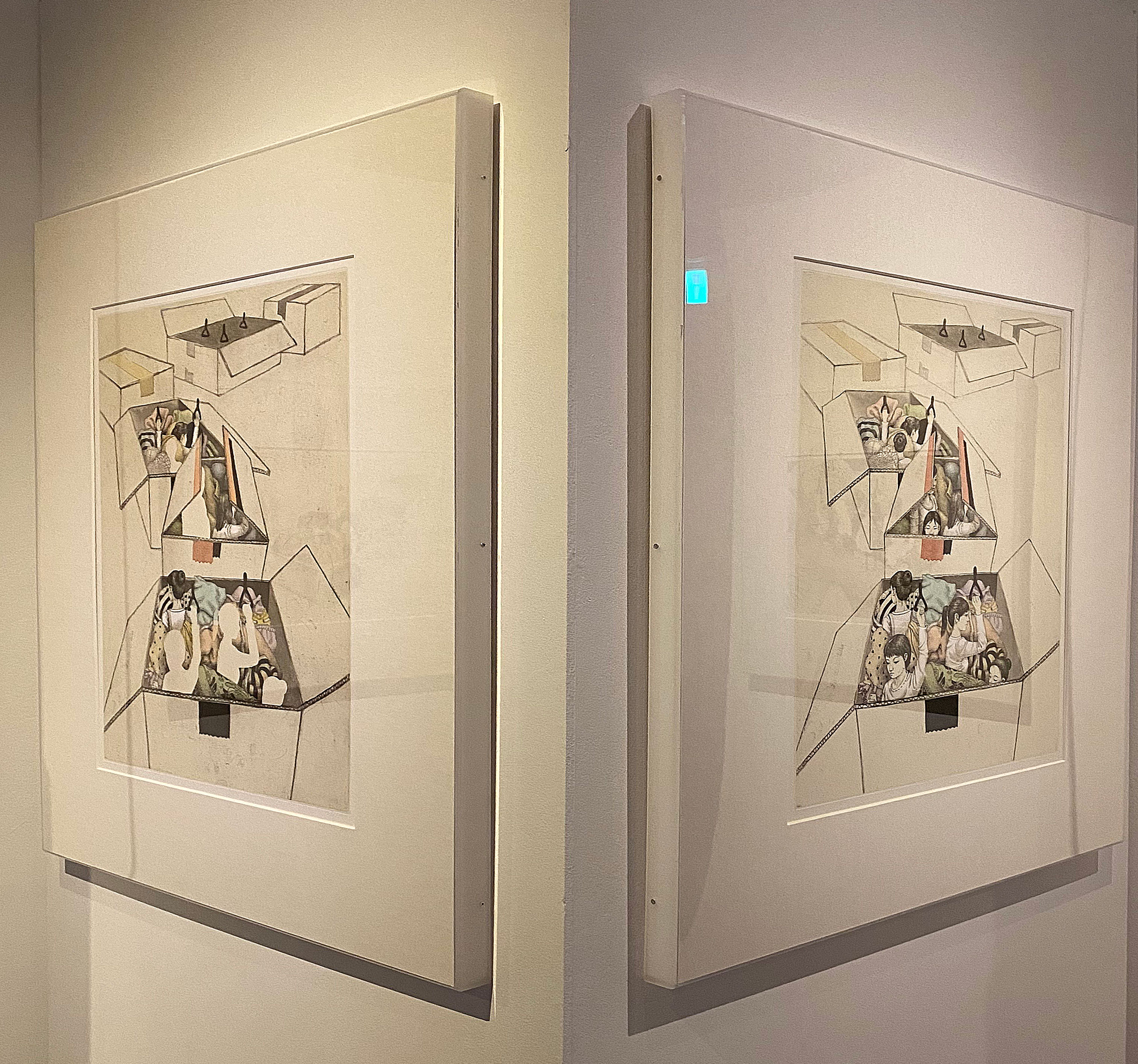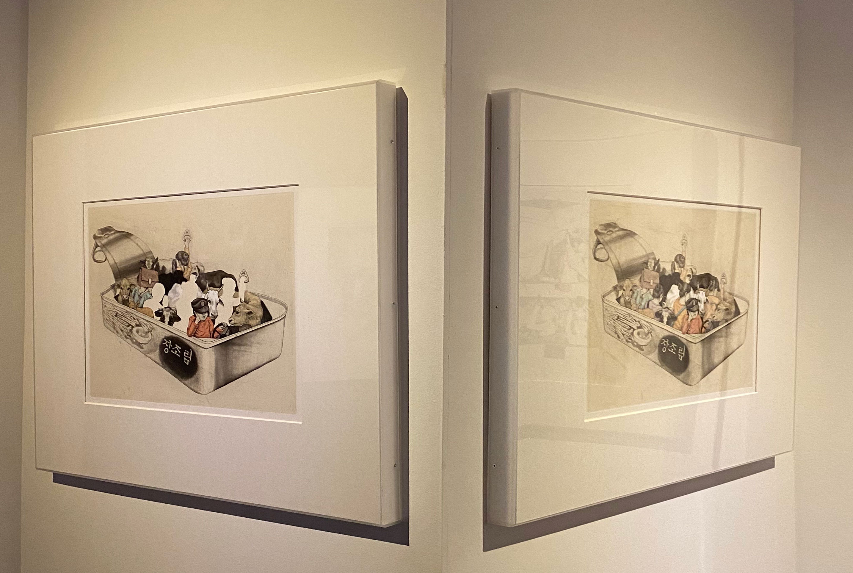 김서울 작가는 코로나19가 덮친 우리의 일상과 가장 가까운 작품을 그려내지 않았나 싶어요. ‘도시의 과도한 밀집 생활과 수많은 통제 시스템에 의한 사람의 사물화, 그로 비롯된 일상 속의 아이러니’를 작가 특유의 유머와 세밀함으로 연출했죠. 물품들과 함께 박스에 들어가 파묻힌 현대인들, 서브웨이 샌드위치 속에 콕콕 박혀 있는 도시인들이 바로 그 작품입니다. 여기서 주목해야 할 포인트는 그림의 첫 제작 시기인 2017년과 코로나 이후인 2020년의 차이를 ‘부재하여지는 사람’으로 시리즈물을 연결했다는 점이 독특했어요. 작가는 작품 속에서 ‘도시인’을 ‘아무’이기도 하며 ‘모두’이기도 한 존재, ‘나’이기도 ‘너’이기도 한 존재로 나타냈다고 합니다.