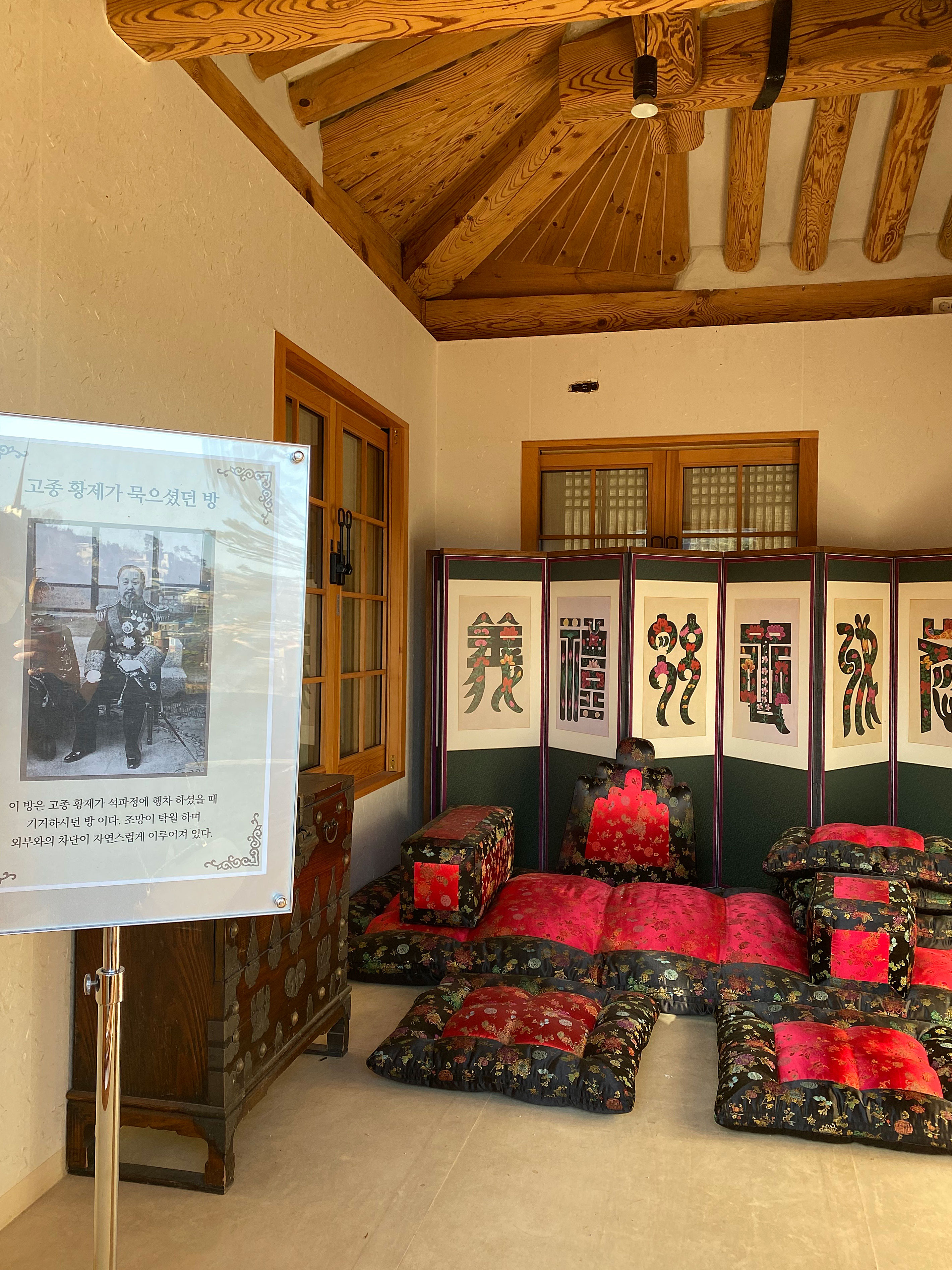 흥선대원군은 김흥근에게 석파정을 팔라고 했으나 거절당했어요. 그럼에도 불구하고 너무 갖고 싶었던 나머지 “하루만 놀이에 빌려달라”며 고종을 데려가 기어이 하루 기거하게 만들었어요. 조선의 관례에 따르면, 임금이 하루라도 기거한 장소는 일종의 불가침 장소가 되기 때문에 신하가 소유할 수 없다는 점을 노렸던 것이죠. 이 일을 계기로 김흥근은 석파정을 흥선대원군에게 넘기게 됩니다. 바로 이때 고종 황제가 묵으셨던 방이 우측 사진 속 방이에요.