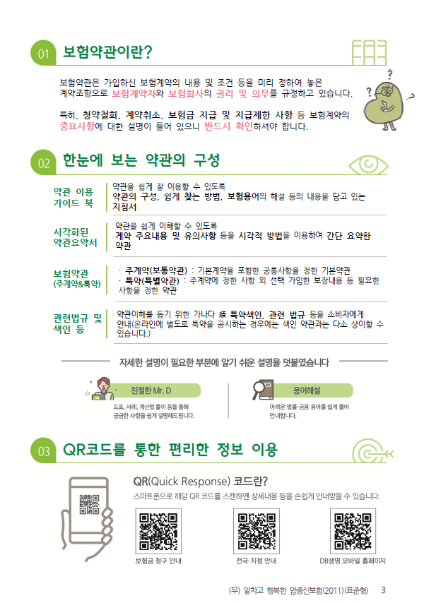 개선 과제 중 ‘기존에 없던 보험약관 개발’은 큰 화제가 되기도 했다. 2015년 소비자중심경영 선포 이후 DB생명은 소비자 효용 증대에 가장 핵심이라고 할 수 있는 보험약관 개선을 최우선 혁신과제로 선정했다. 소비자패널도 기존의 약관을 꼼꼼히 검토한 후 용어해설과 사례 강화, 그래프와 그림 활용, 디자인과 목차 개선과 같은 기본적인 내용은 물론 QR코드 활용, 간편설명서 제작, 3단 해설박스 도입 등 새롭고 다양한 제안을 내놓았다.