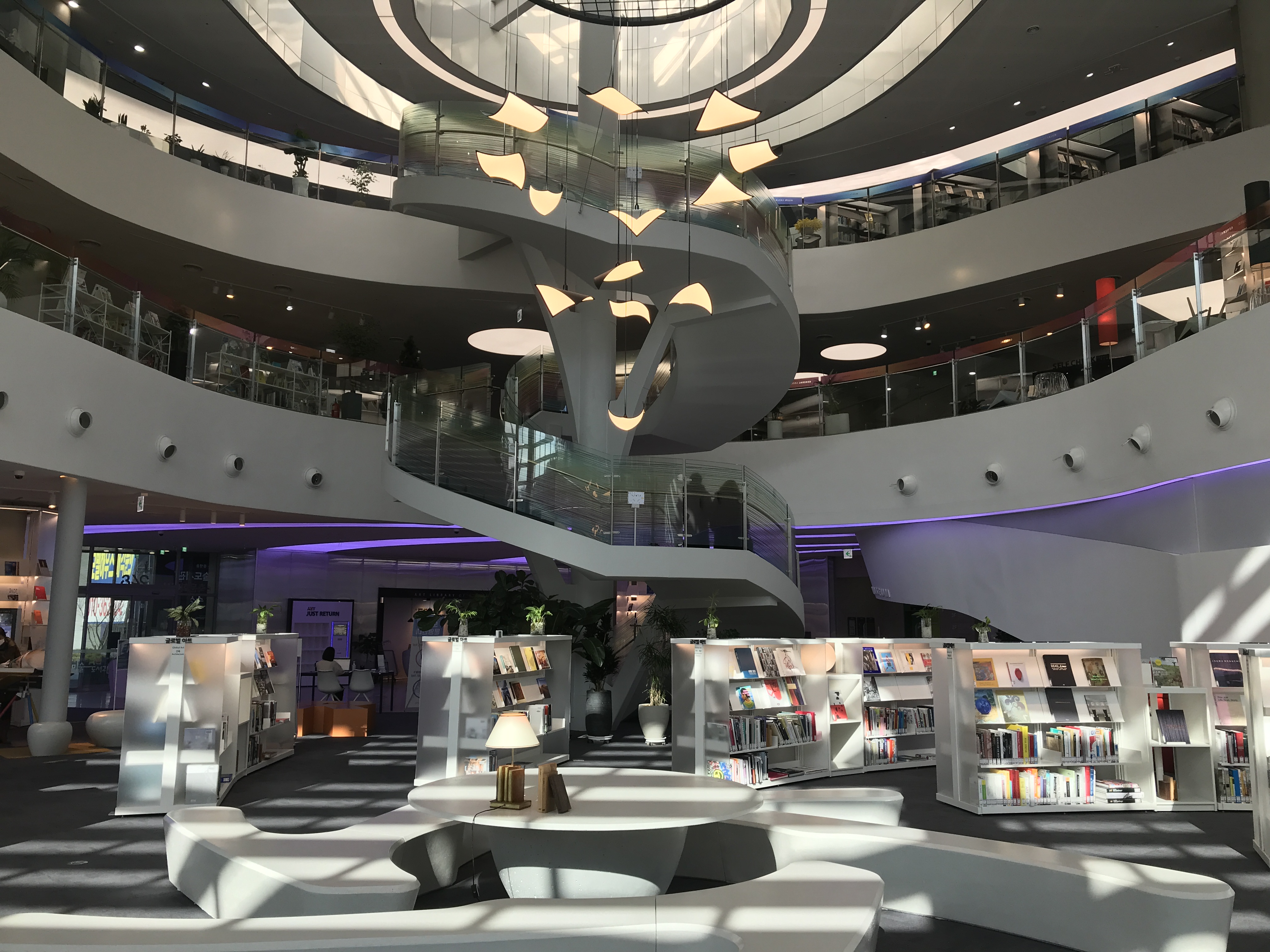 층마다 최대한 많은 곡선을 사용해 미술도서관이라는 콘셉트에 맞는 자유롭고 창의적인 분위기를 냈어요. 자료열람 공간과 전시 공간, 커뮤니티 공간 등을 폐쇄된 공간으로 구분하지 않아 각 공간 내에서 활동을 공유할 수 있도록 디자인했습니다.