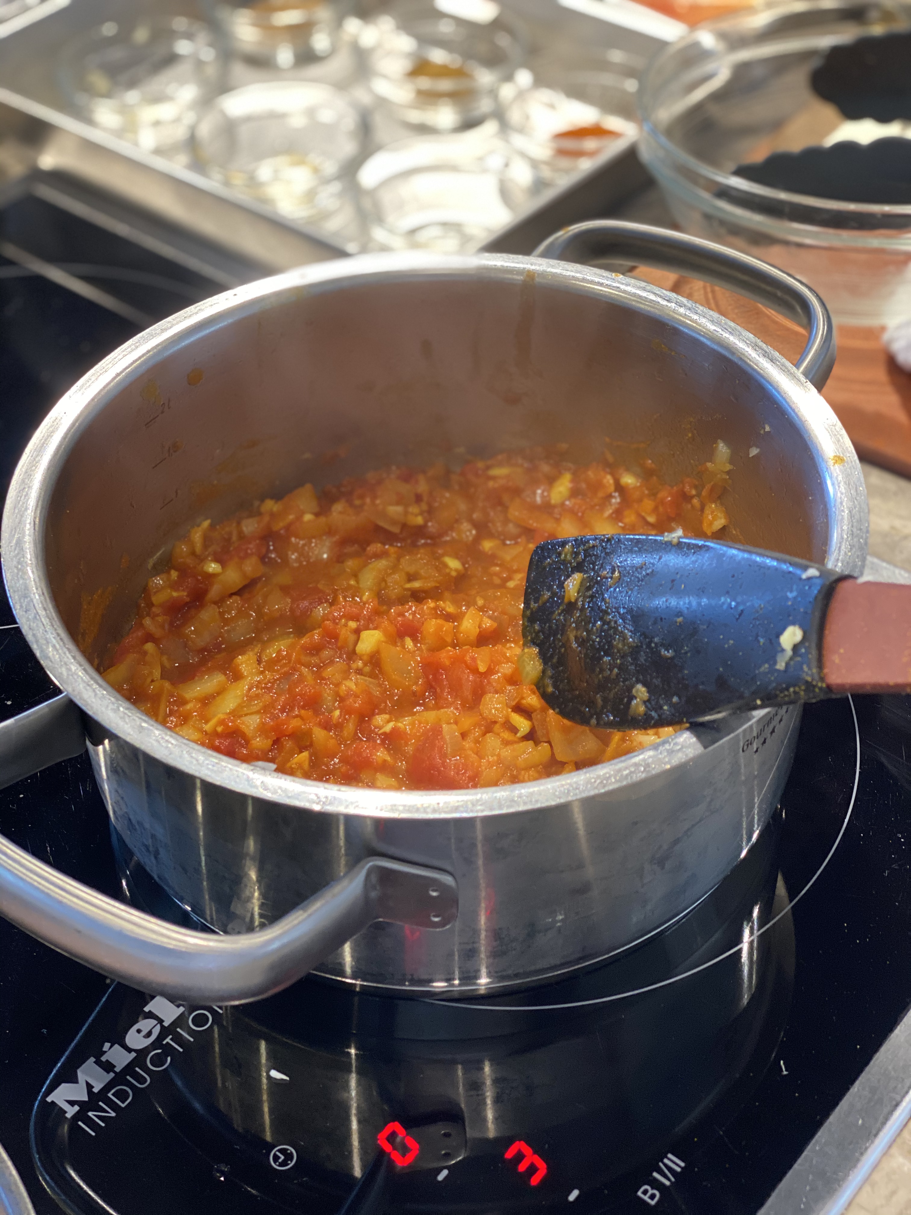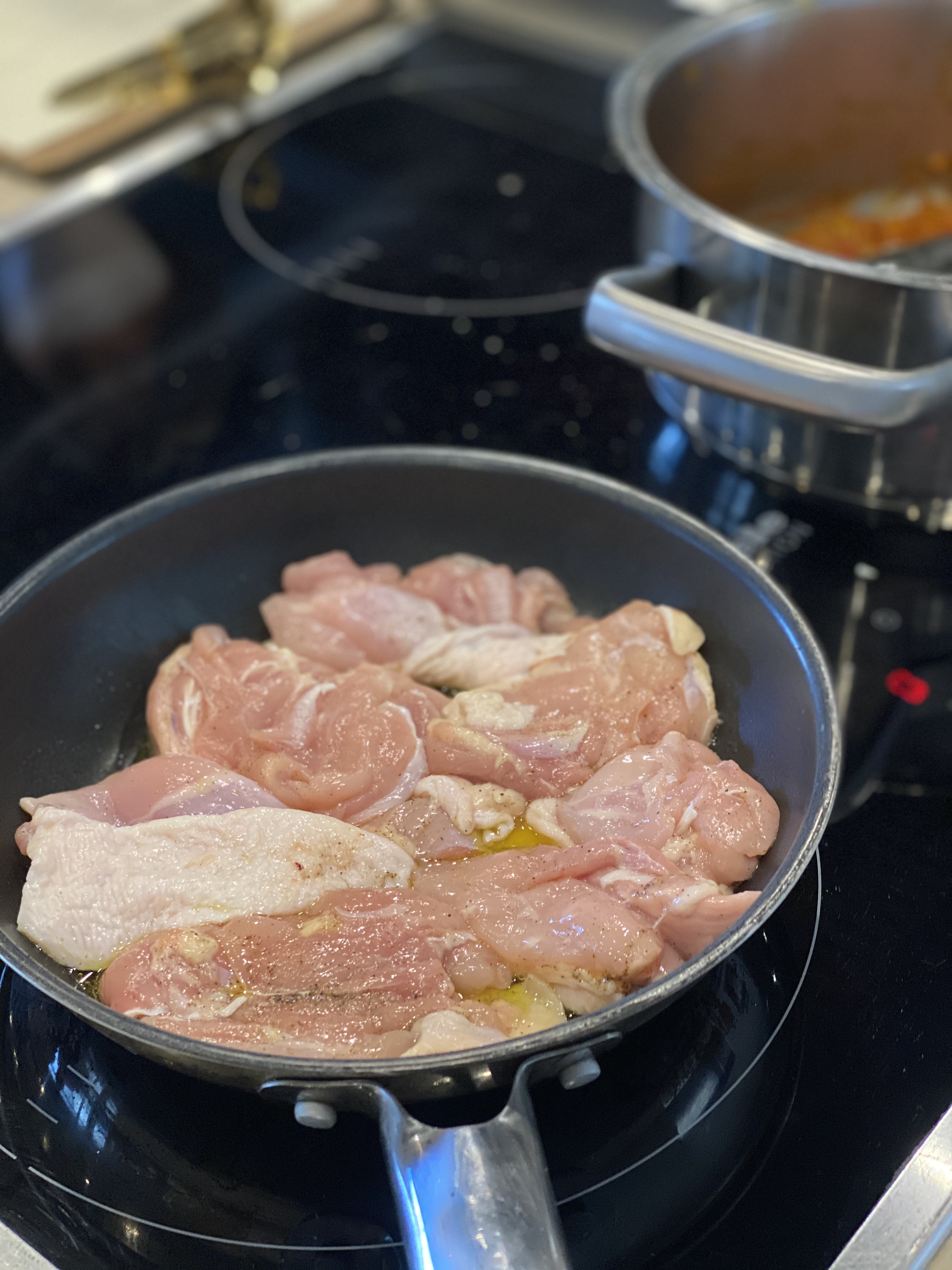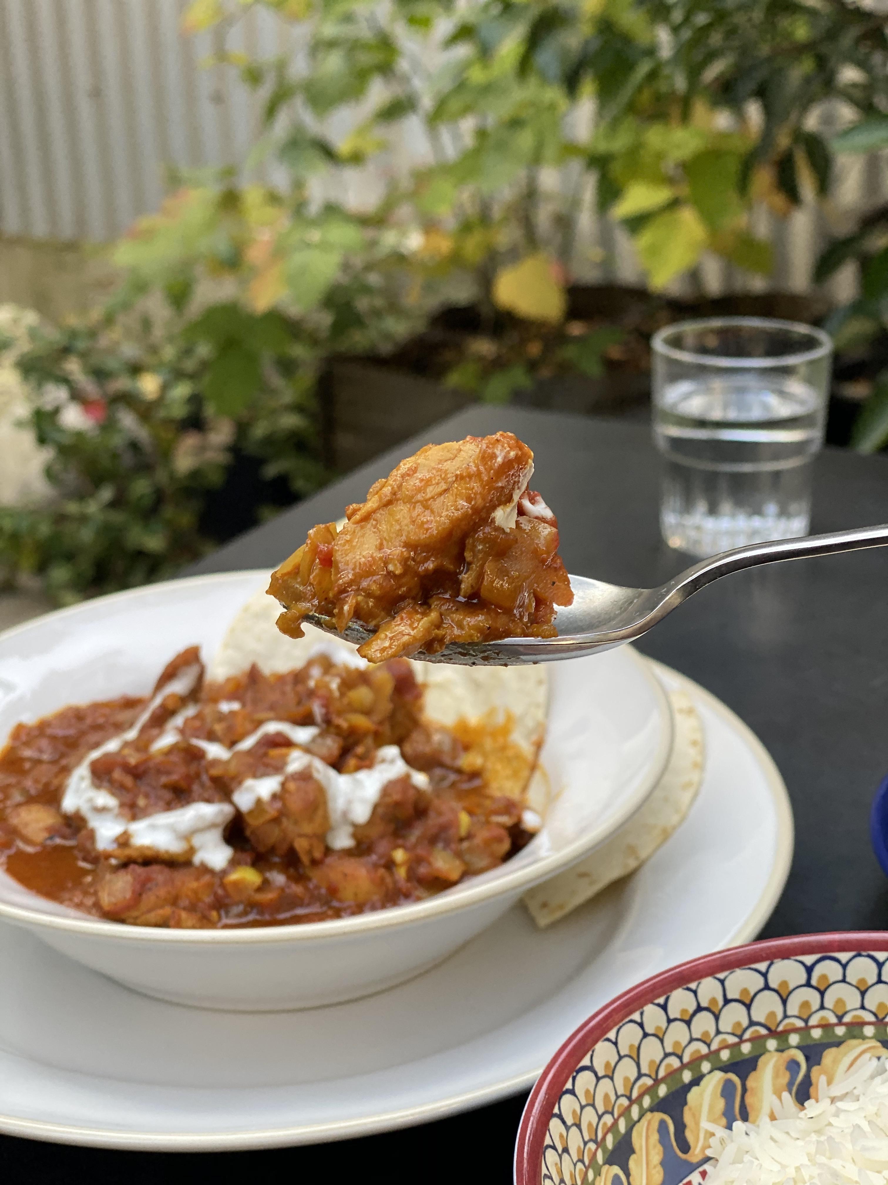레시피에 따라 양파와 마늘을 손질하고, 닭고기를 등분해 밑간을 해놓으면 벌써 준비가 끝났어요. 냄비에 오일을 두른 뒤 양파, 마늘을 잘 볶다가 향신료를 순서에 맞게 사용해 베이스가 될 커리를 만들어주면 됩니다. 홀토마토를 사용해 맛을 다채롭게 할 수도 있더라구요. 밑간한 닭고기는 따로 초벌 해주고, 완성된 커리 베이스에 넣고 잘 졸여주면 요리는 금세 끝난답니다.