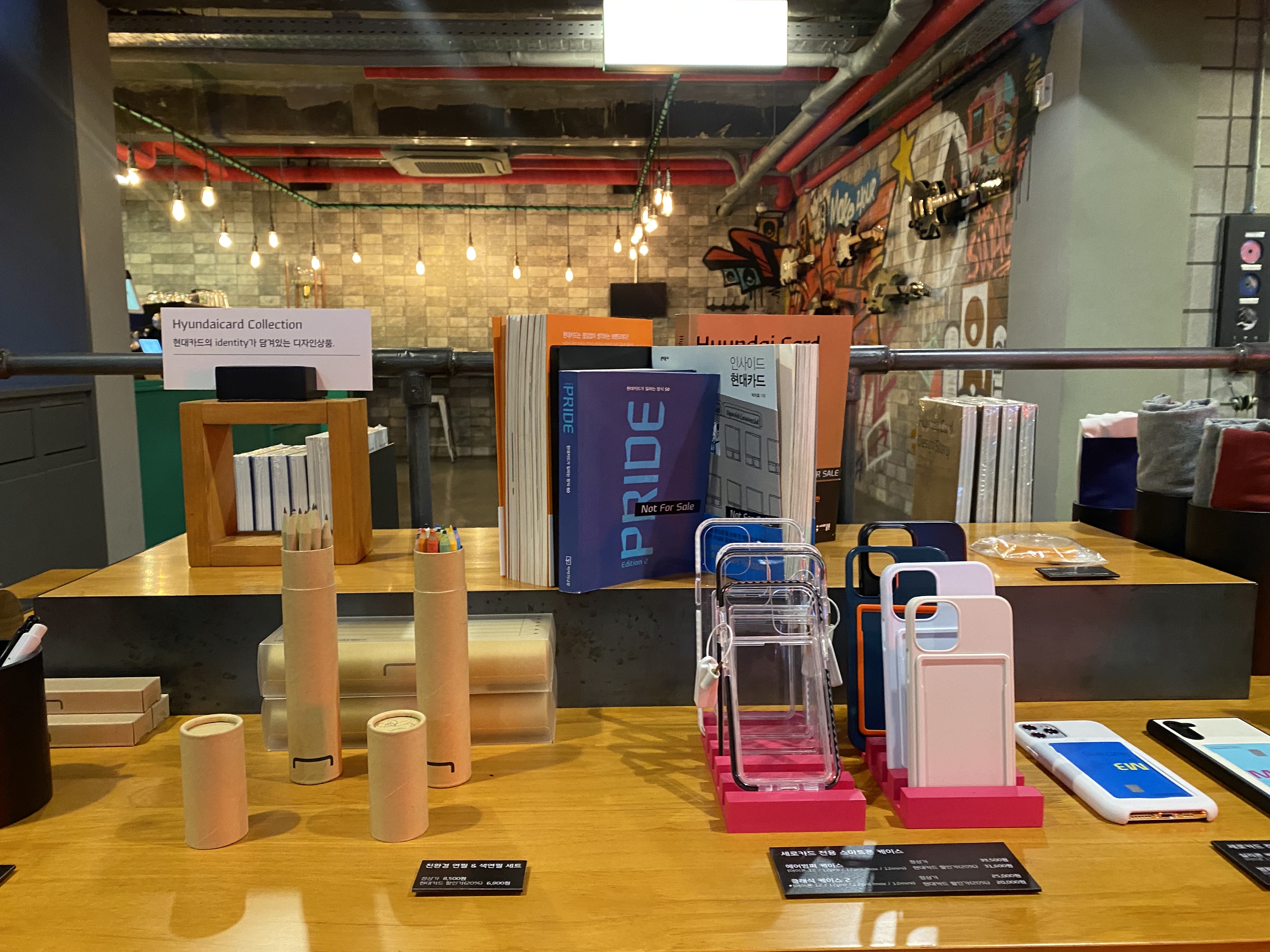 2층 매장 한 켠에는 현대카드 굿즈를 살 수 있는 공간, 그리고 작은 카페도 함께 운영중이에요.
