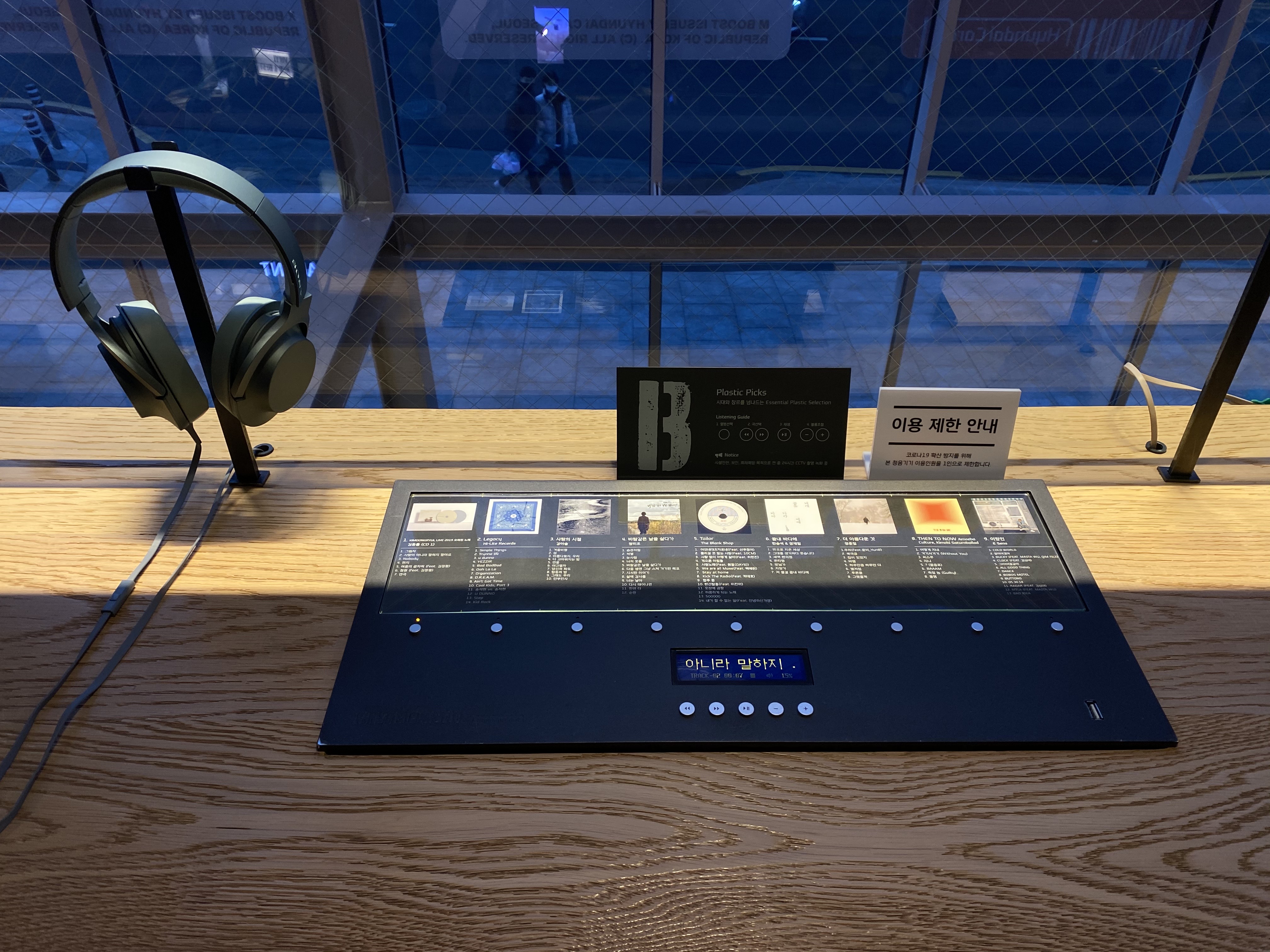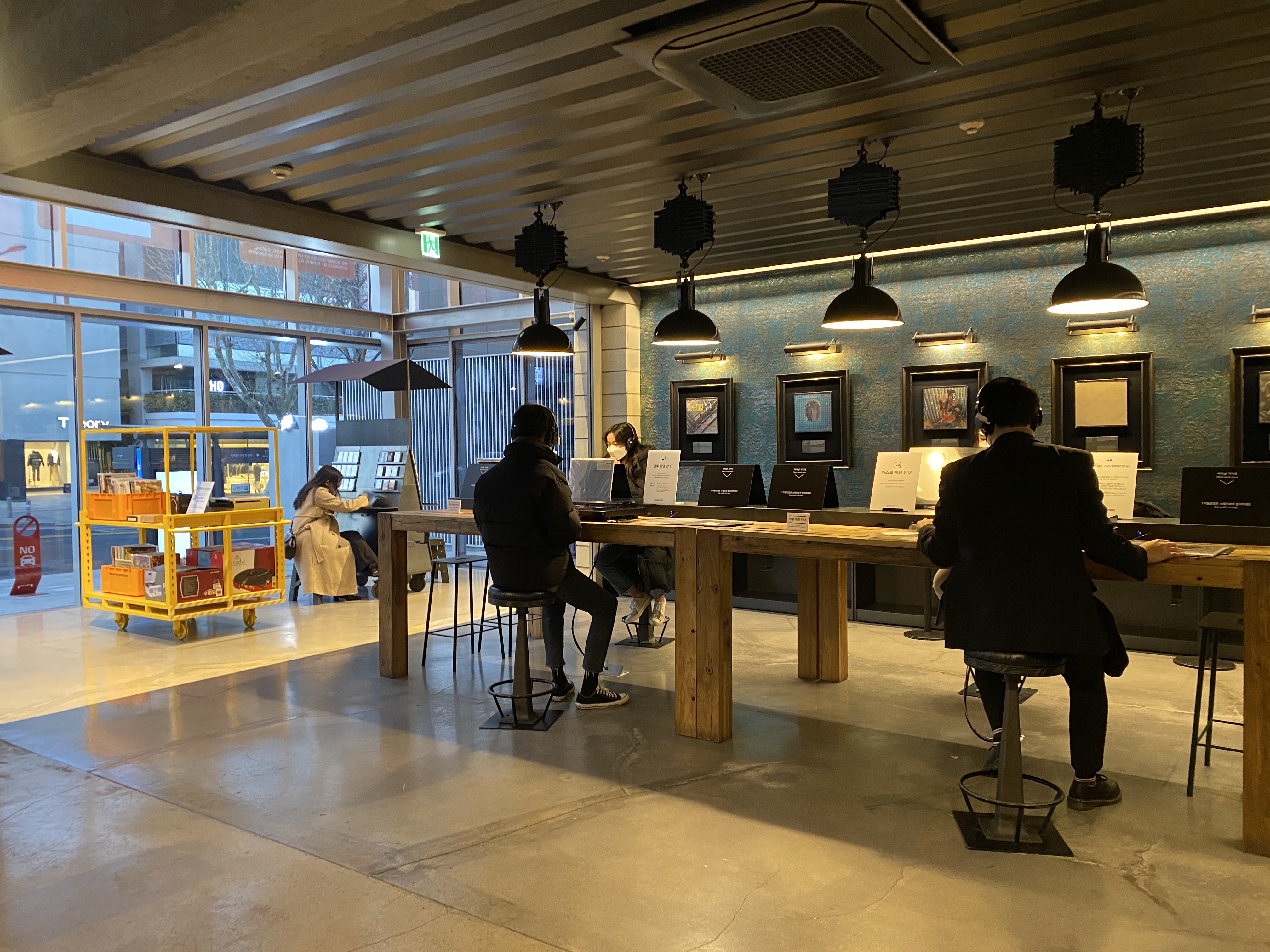 거리두기로 인해 비워둬야 하는 턴테이블이 있고 한 명씩 앉을 수 있다는 단점이 있지만, 조금만 기다리면 자리에 앉아 청음을 자유롭게 할 수 있어요. 평일에는 시간제한이 따로 없지만, 주말에는 1회 이용 시 30분 시간제한이 있어서 여유롭게 듣고 싶다면 평일 방문을 추천합니다.