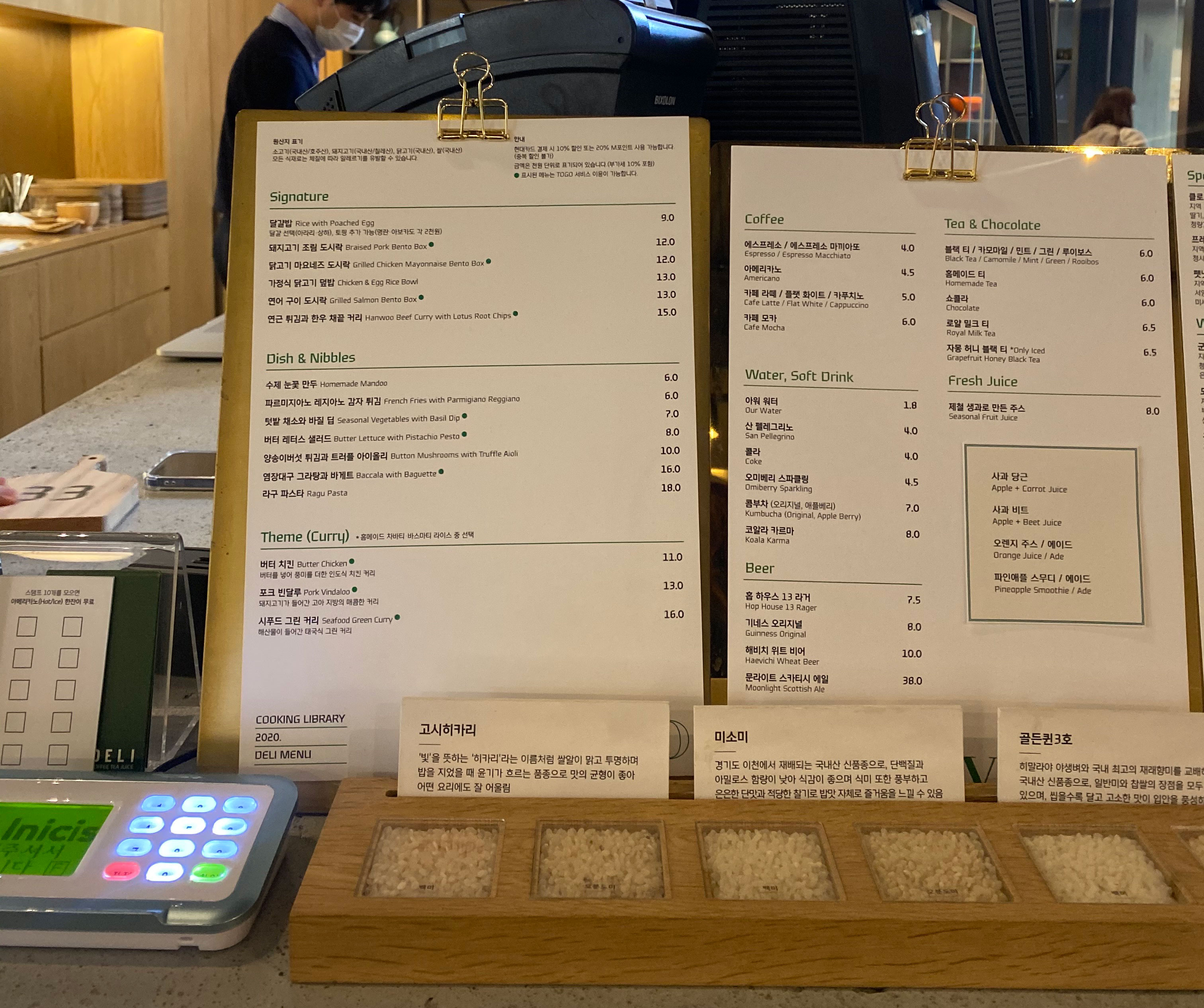 만든 음식은 3층 테라스에서 먹어도 되고 1층 델리에서 먹어도 괜찮아요. 보통 현대카드 라이브러리들은 현대카드 회원 전용 서비스라 주말에는 현대카드 이용자만 이용이 가능한데요. 1층 델리는 비회원도 즐길 수 있는 음식점이라 한 번쯤 공간을 누려보시는 것도 좋을 것 같아요.