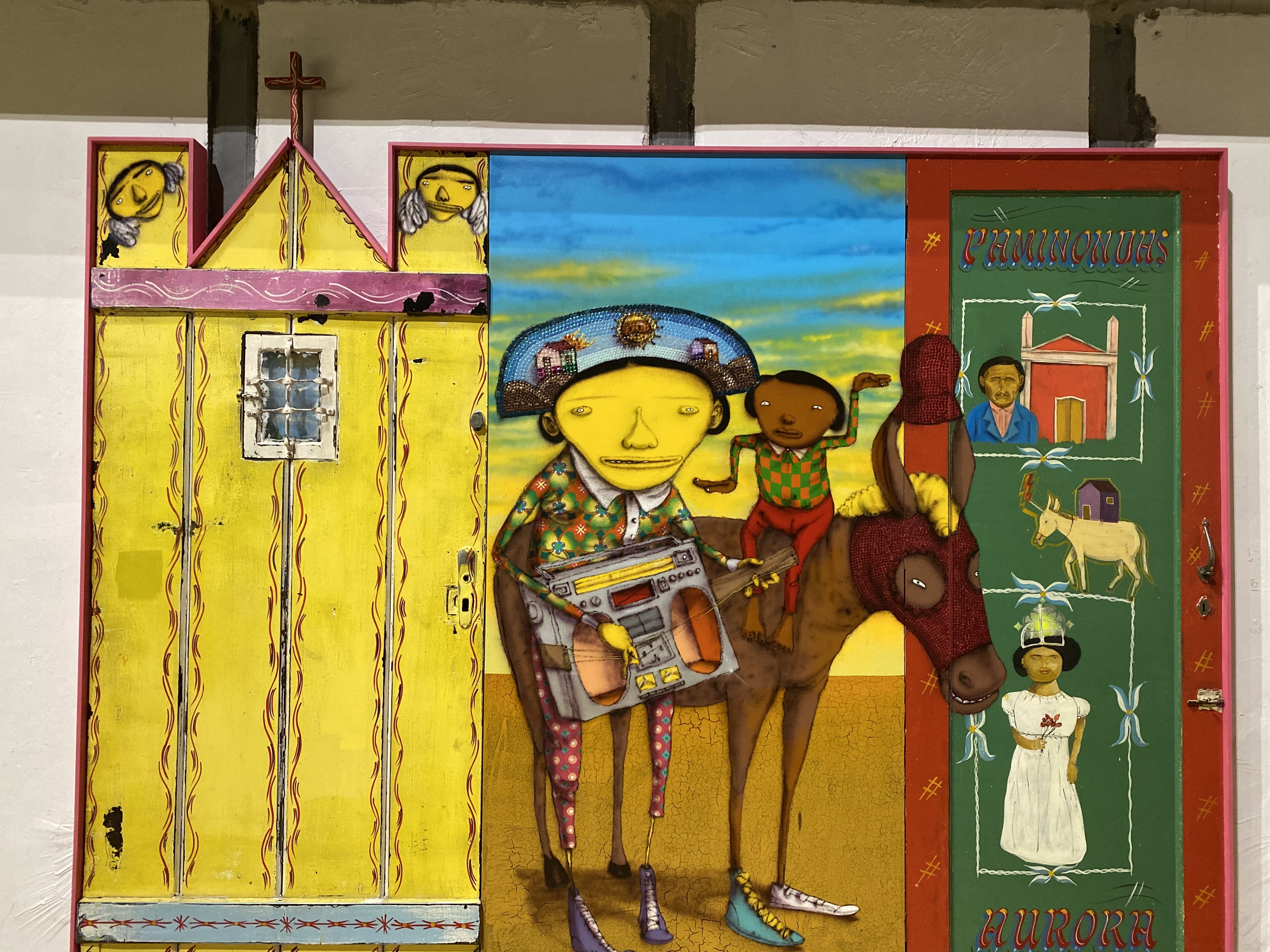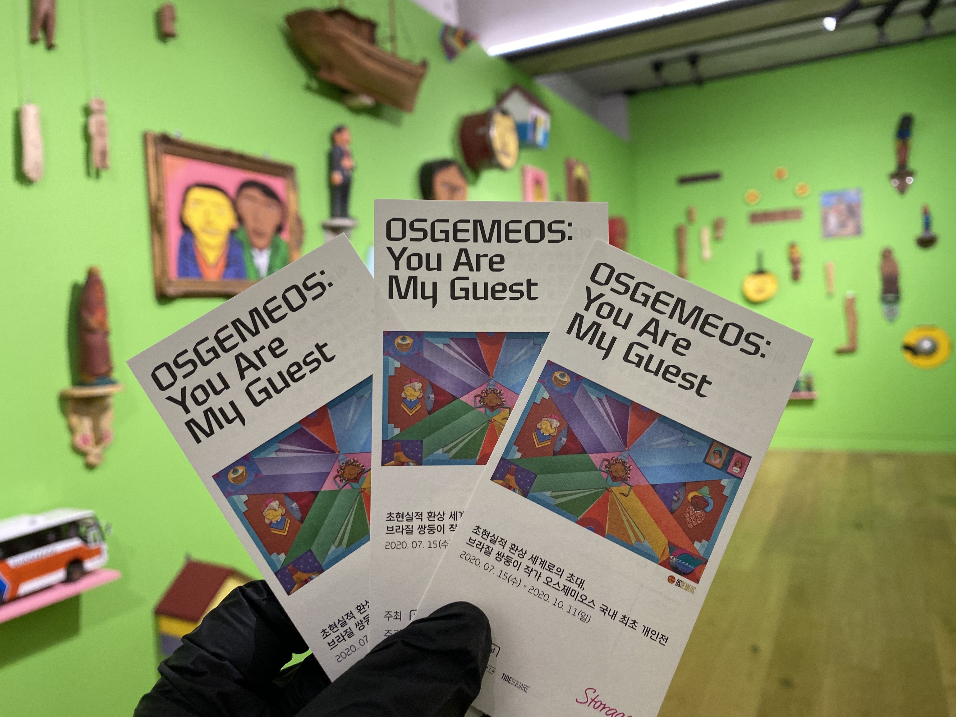 오스제미오스의 작품은 항상 가늘고 긴 팔다리, 과장된 신체 비율, 노란 얼굴의 인물이 등장합니다. 이는 작가들의 페르소나이면서 특정 인종이나 민족을 넘어선 보편적 인간을 의미한다고 해요. 브라질 특유의 위트와 힙스터의 바이브를 동시에 녹여낸 것이 특징인데요. 이때 역시 코로나19가 한창이라 마스크와 개인 장갑을 필수로 착용하고 사전 예약을 통해 방문했어요.