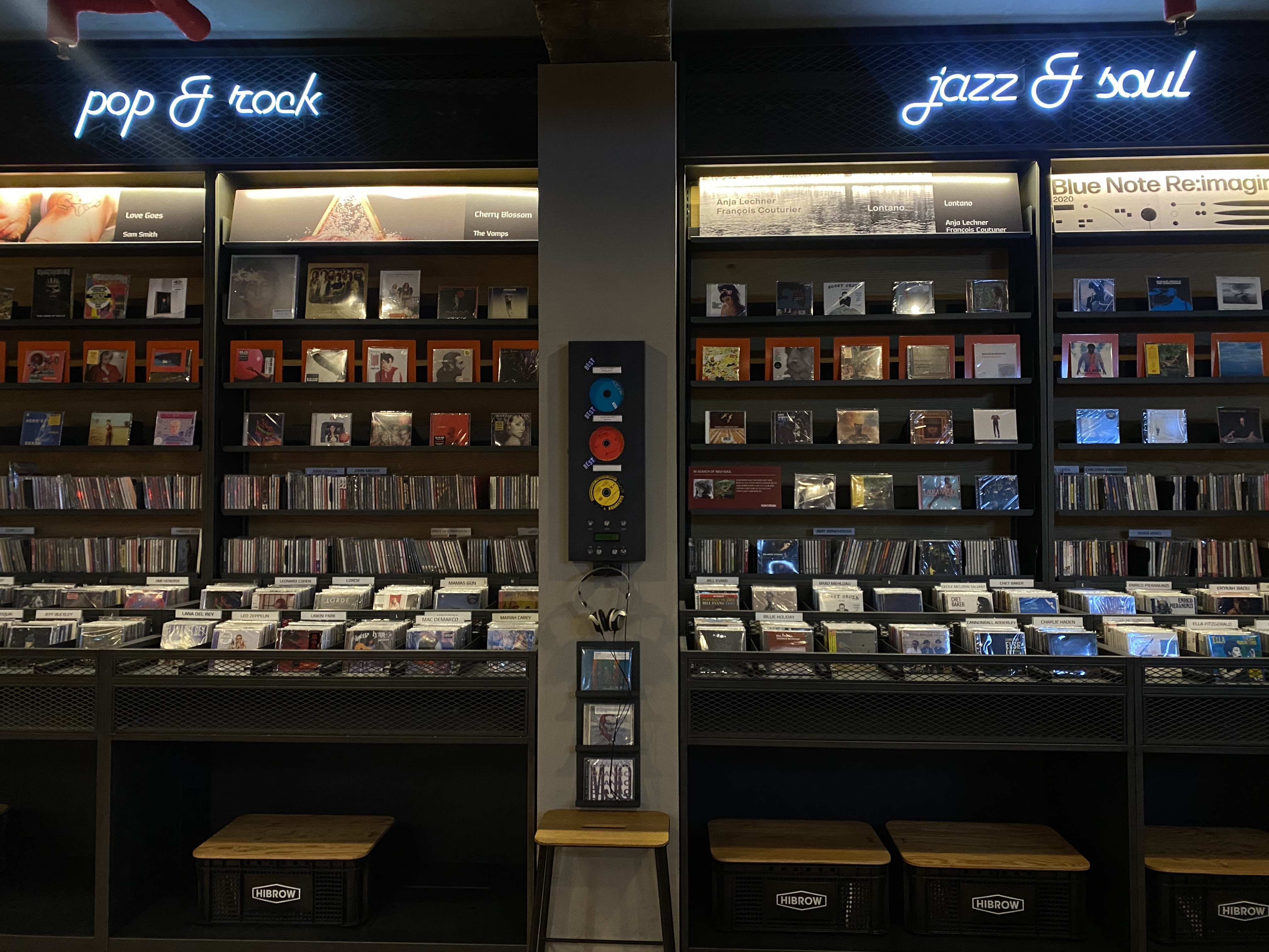 라이브러리와 달리, 바이닐 앤 플라스틱은 현대카드 회원이 아니더라도 자유롭게 입장해 음악을 듣고 음반을 구매할 수 있어요. 라이브러리 웨이팅이 길다면 바이닐 앤 플라스틱을 먼저 구경하는 것도 좋을 것 같아요. 1층에서 음악을 골라 들을 수 있지만, 거리두기로 인해 테이블을 띄엄띄엄 이용하기 때문에 자리가 부족할 수 있어요. 하지만, 1층과 2층 모두 음향 공간이 있기 때문에 웨이팅이 길지는 않은 편이에요.