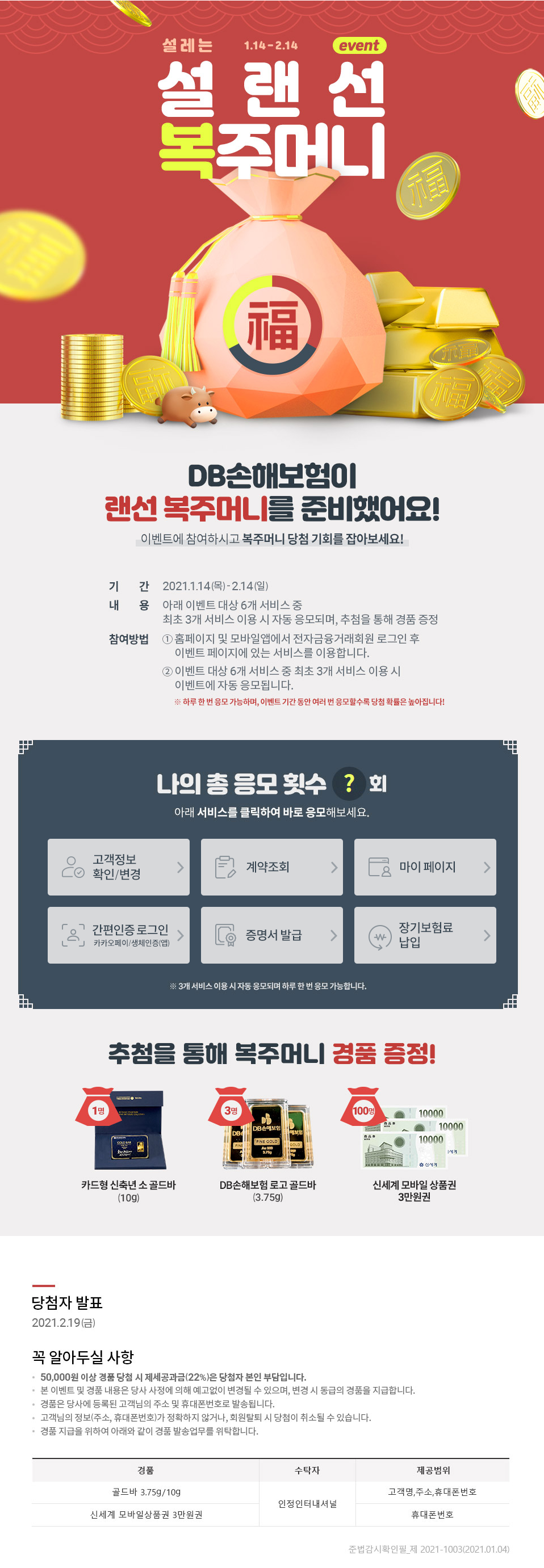 | DB손해보험, 천만고객 달성 기념 이벤트 (0) | 2021.01.18 |