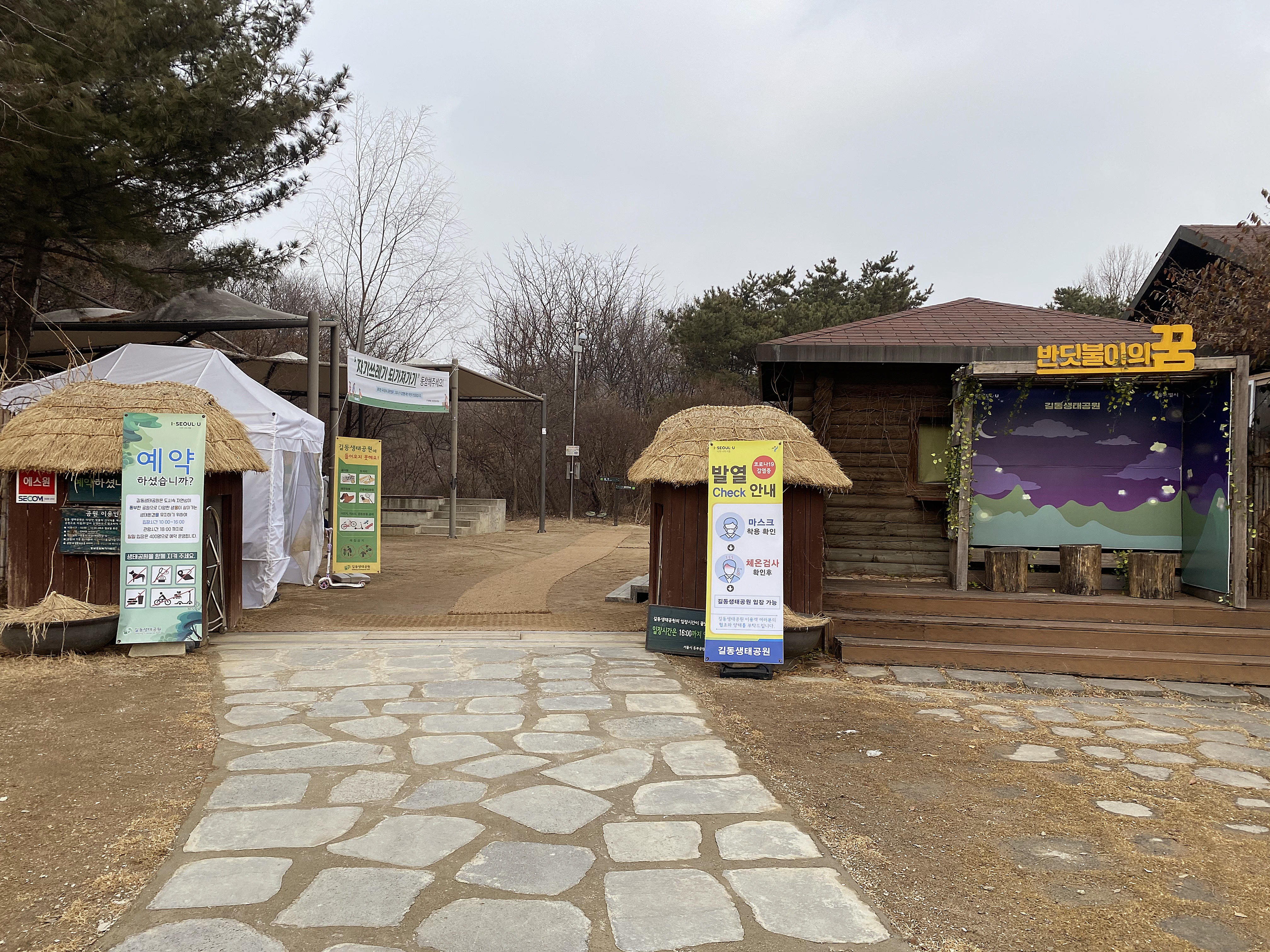 방문하면 예약 완료 화면을 제시하고, 앞에서 발열 체크를 완료한 후 길동생태공원 내부로 들어갈 수 있습니다. 혹시나 예약을 미리 못하셨어도 괜찮습니다. 입장 마감 시간인 4시 전까지는 당일 예약이 가능하니, 현장에서 모바일로 예약을 하고 들어가실 수 있기 때문입니다. 하지만 날씨가 풀리면 방문객이 많아 인원제한 때문에 당일 예약이 불가능 할 수도 있으니 미리미리 시간대를 확인하시는 게 편하실거에요
