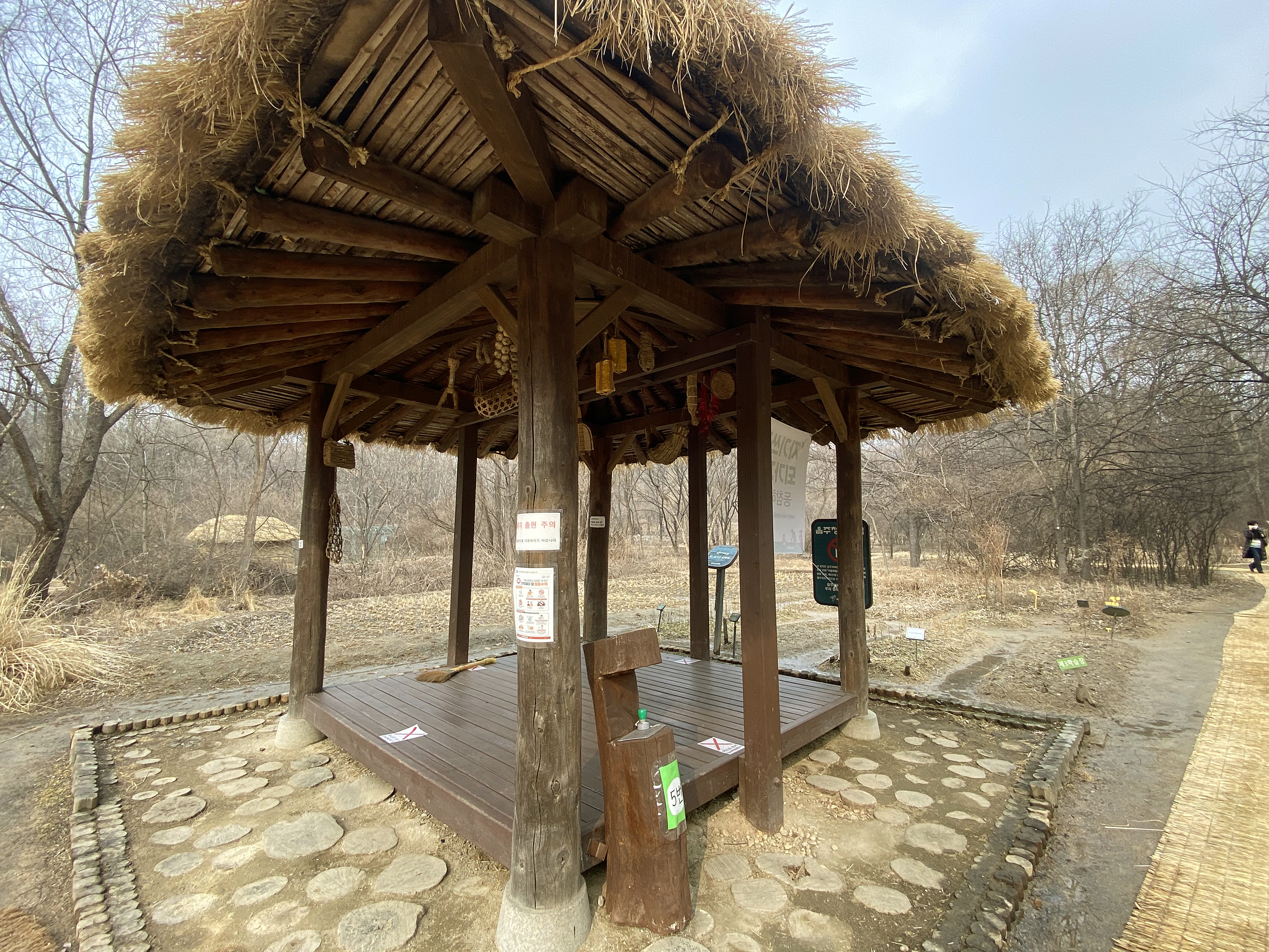 농촌 체험 학습장에는 잠시 쉬었다 갈 수 있는 작은 정자도 있어요. 참, 길동생태공원은 음식물 취식이 금지되기 때문에 따로 간식이나 음식을 마련해 오셔도 식사를 하실만한 장소가 없어요. 생태공원 내에 모든 길가를 돌아보니 따로 쓰레기통을 놓아두지 않았더라고요. 모든 발생 쓰레기들은 집으로 가져가 버려 주셔야 합니다.