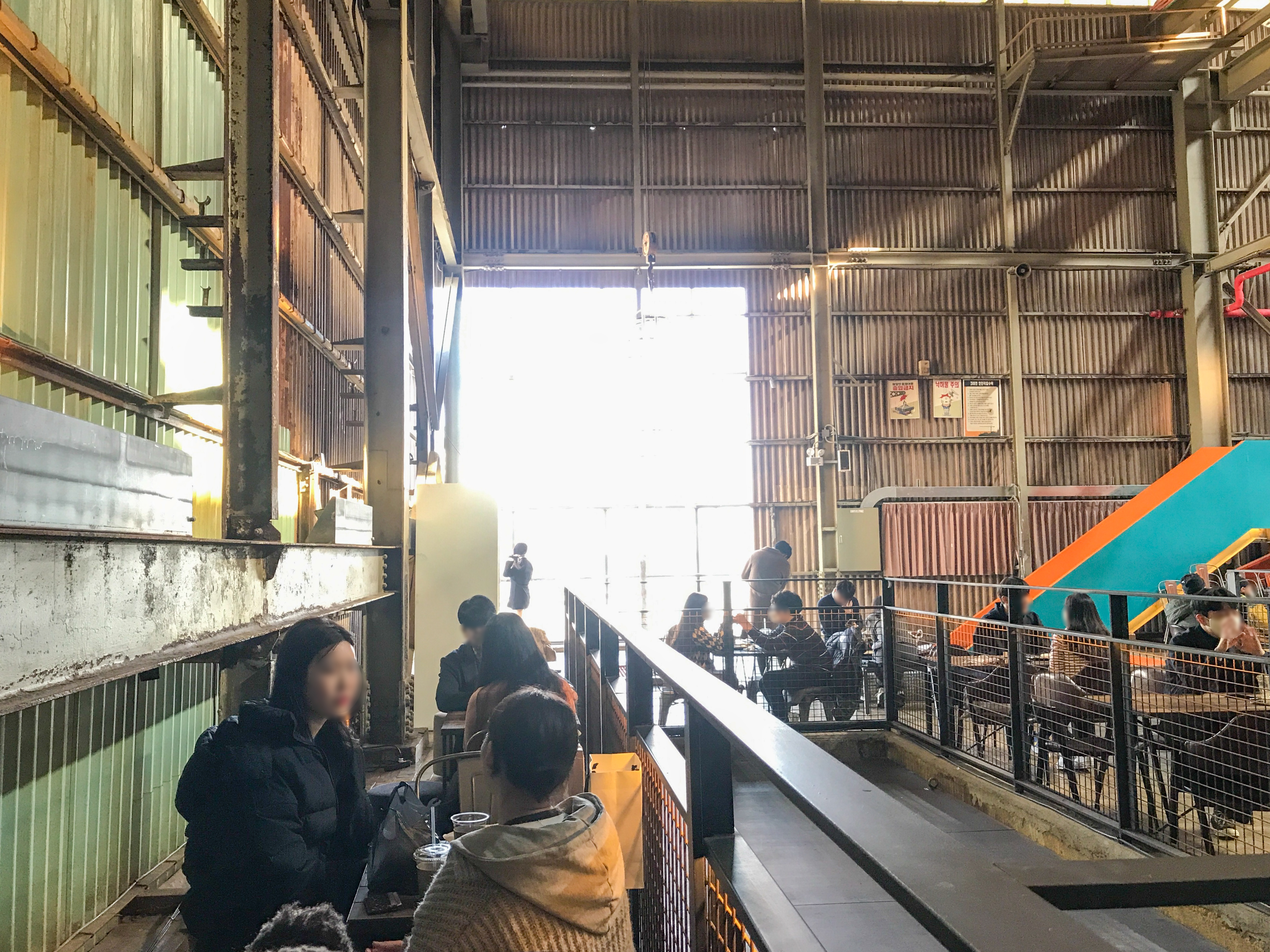 내부로 들어가면 외형과는 또 다릅니다. 완벽하게 독립된 신관은 F&B 공간과 상점으로, 옛 공장은 다양한 이벤트를 수용하는 대공간으로 활용하도록 했어요. 지하와 지상 총 5층 공간을 활용해 전시나 공연을 정기적으로 개최하고, 3층은 커피와 맥주, 피자와 베이커리를 즐길 수 카페 라운지, 4층은 강연과 작은 상영회를 할 수 있는 커뮤니티 홀을 마련했어요.