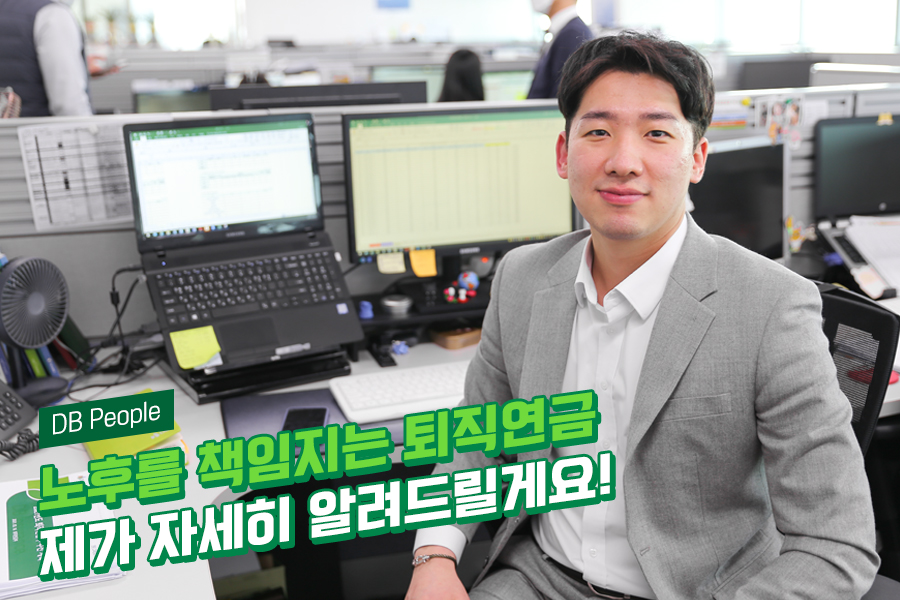 2005년부터 근로자퇴직급여 보장법이 제정된 이후, 2012년 전체개정을 거치면서 현재의 퇴직연금제도가 갖춰졌습니다. 급여소득자들의 노후를 책임져주는 퇴직연금에 관련하여 근로소득자들에게는 안심할 수 있는 창구 역할을, 사업주들에게는 이익을 창출하는 역할을 하는 곳. 바로 DB손해보험 퇴직연금부입니다. 현재보다는 앞으로의 시장이 더욱 기대되는 이곳에서 근무 중인 박지호 대리와 함께 퇴직연금에 대해 자세히 알아보았습니다.