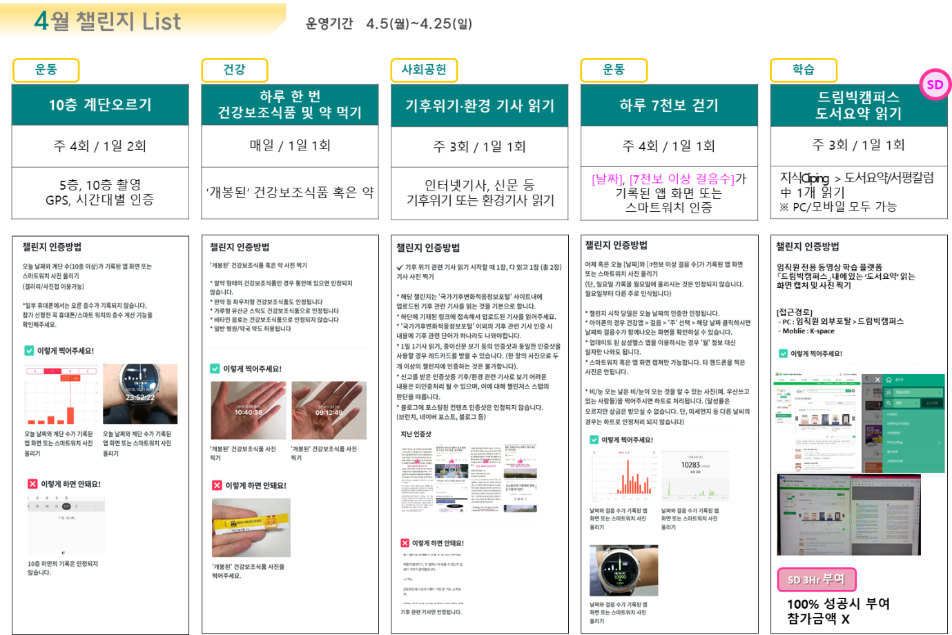 프로그램을 시작하고 처음에는 ‘이것이 인증되는지’, ‘교육시간을 대체할 수 있는지’ 사무적인 문의를 많이 받았지만 취지에 맞게 자율적으로 실천하도록 안내했다. 입소문이 퍼지면서 참가자들이 매달 꾸준히 늘고 있고, 그룹사의 관심도 이어져 주목 받는 벤치마킹 대상이 되었다.