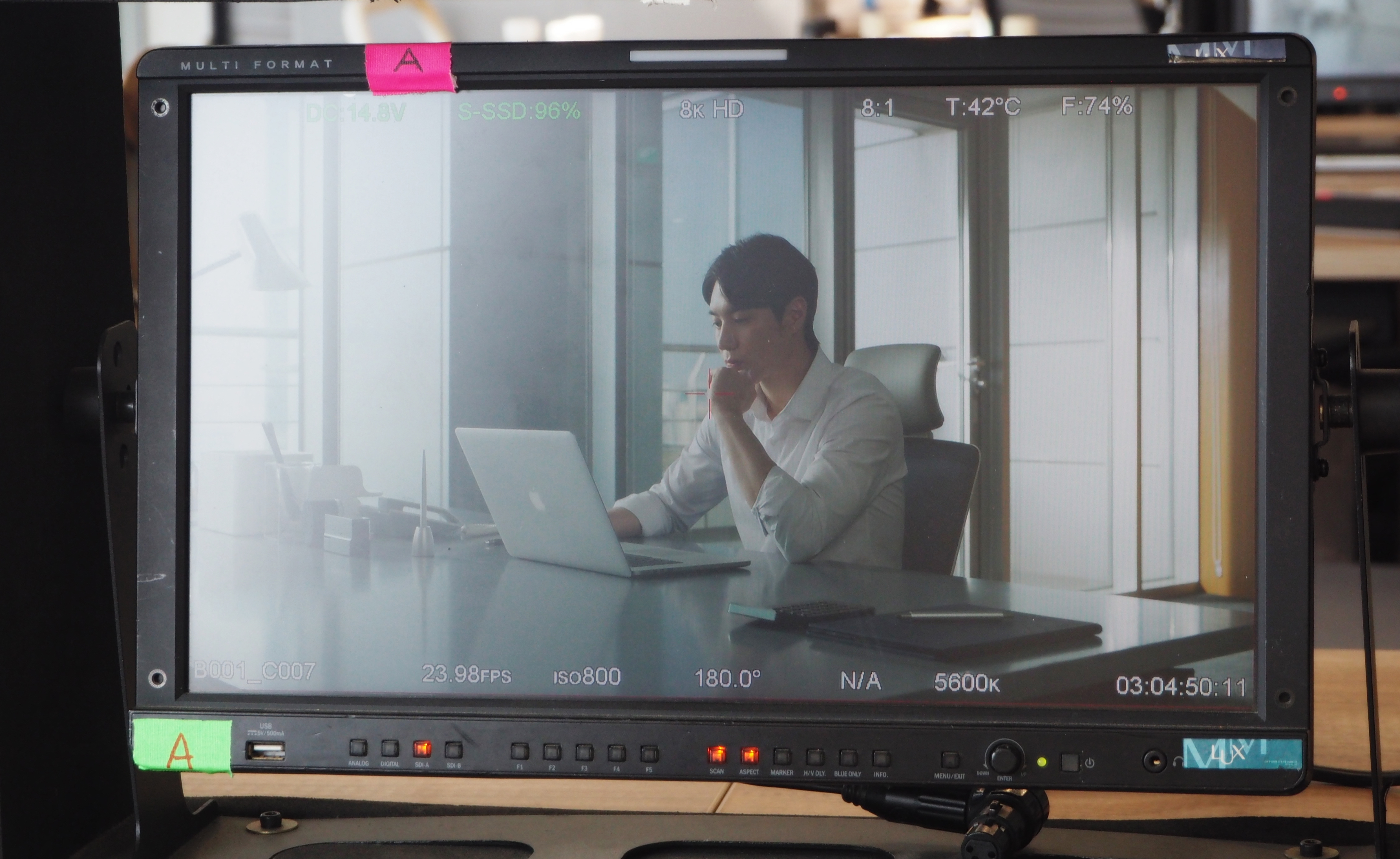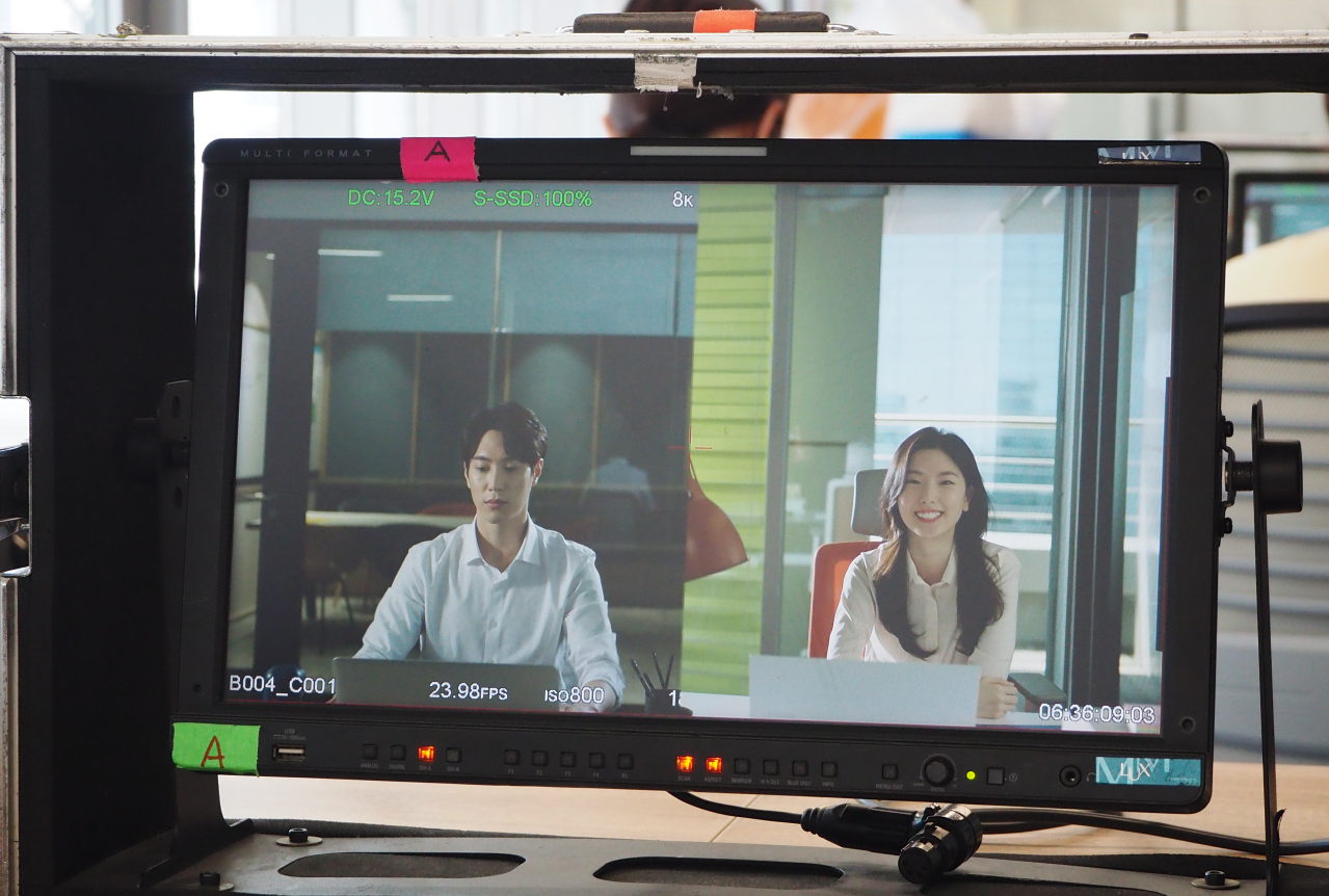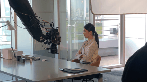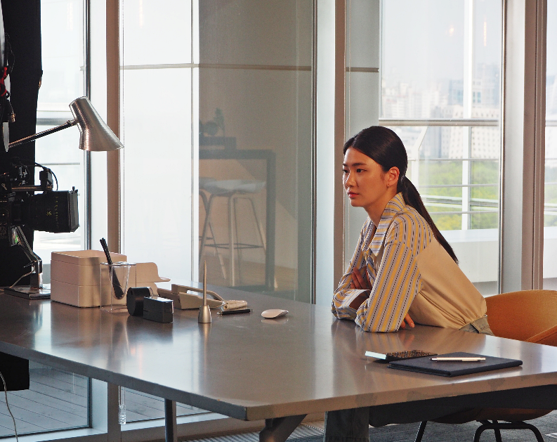 변화를 꿈꾸는 DB그룹이 보여주는 새로운 모습을 4분할 화면을 활용해 표현했다. 각자의 공간에 떨어져 있는 듯하지만, 알고 보면 함께인 DB와 고객의 모습을 한 화면에 담았다. 화면 간 합이 중요한 만큼 일어서는 정도와 손 위치 등을 바꿔가며 여러 모습으로 반복 촬영을 진행했다. 계속되는 앉았다 일어서기에도 배우는 카메라가 돌자 피곤한 기색 하나 없이 활기찬 모습으로 촬영에 임했다.
